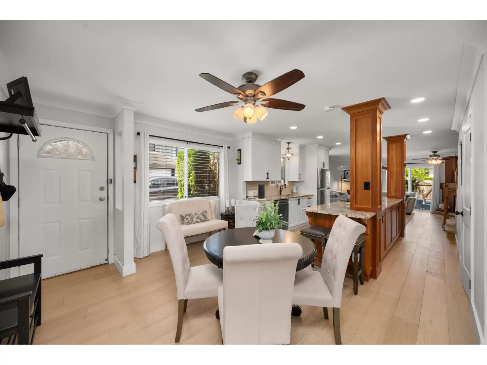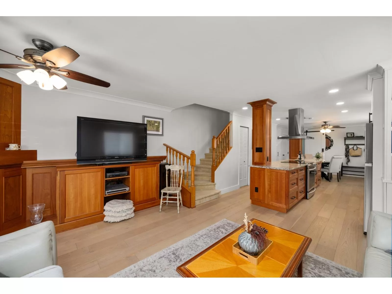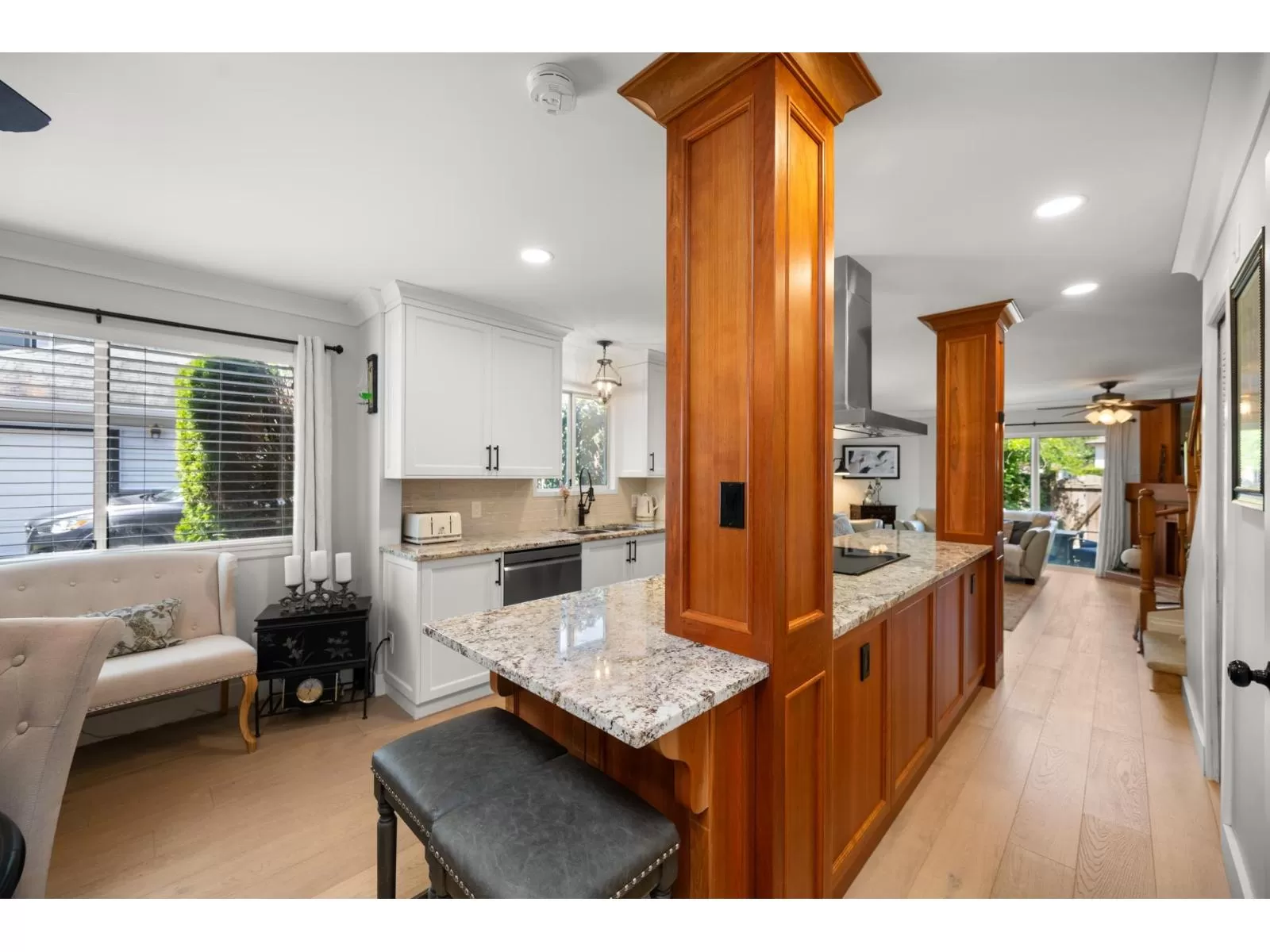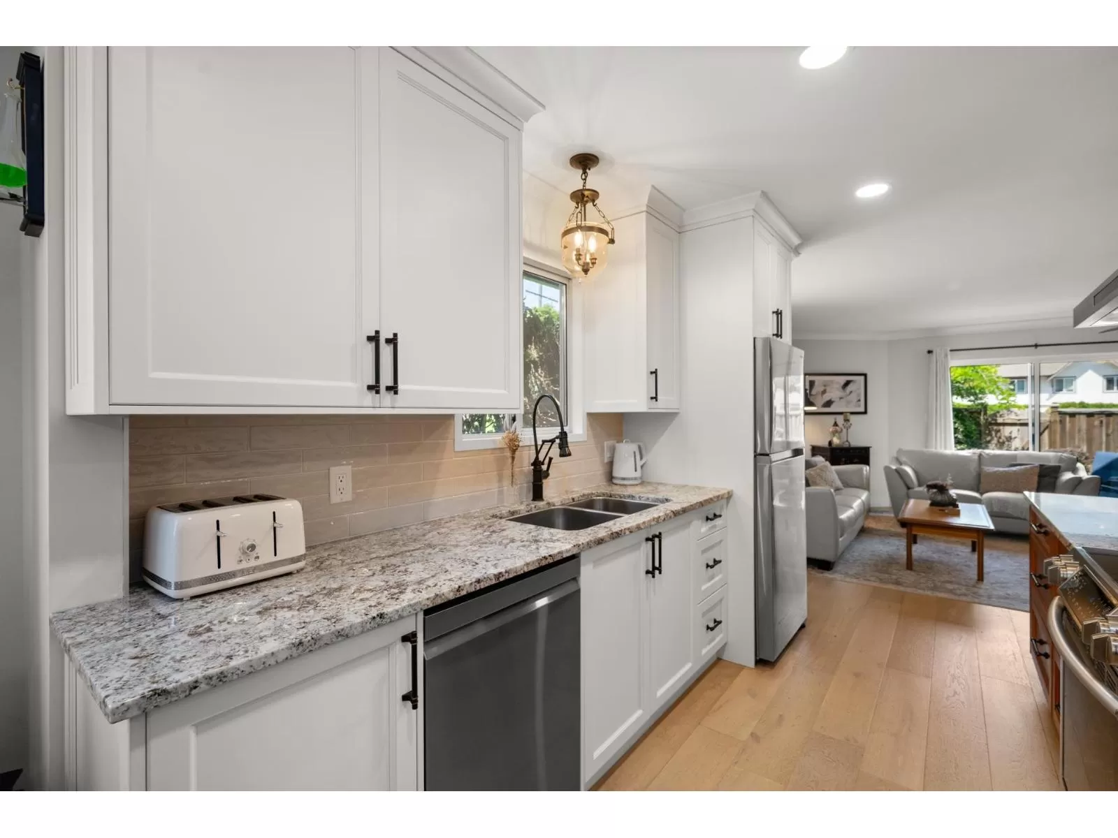 Welcome to Yorkson Manor-a hidden gem in the heart of Walnut Grove! This rarely available end-unit townhome offers 3 beds and 3 baths in a quiet 18-unit complex that fosters a true sense of community. Tastefully updated, this home features engineered hardwood floors, custom built-ins, and a bright, beautifully renovated kitchen with granite counters, SS appliances, chimney hood fan, and open-concept design perfect for entertaining. Enjoy radiant in-floor heating, an on-demand hot water system, and a cozy gas fireplace. The single garage includes a workbench, bike racks, and a fun flex space, easily converted back to parking if desired. Private fenced yard with flourishing gardens. Ample storage, including attic via Jacob's ladder. Close to schools, parks, shops, highway access & more! (id:27476)