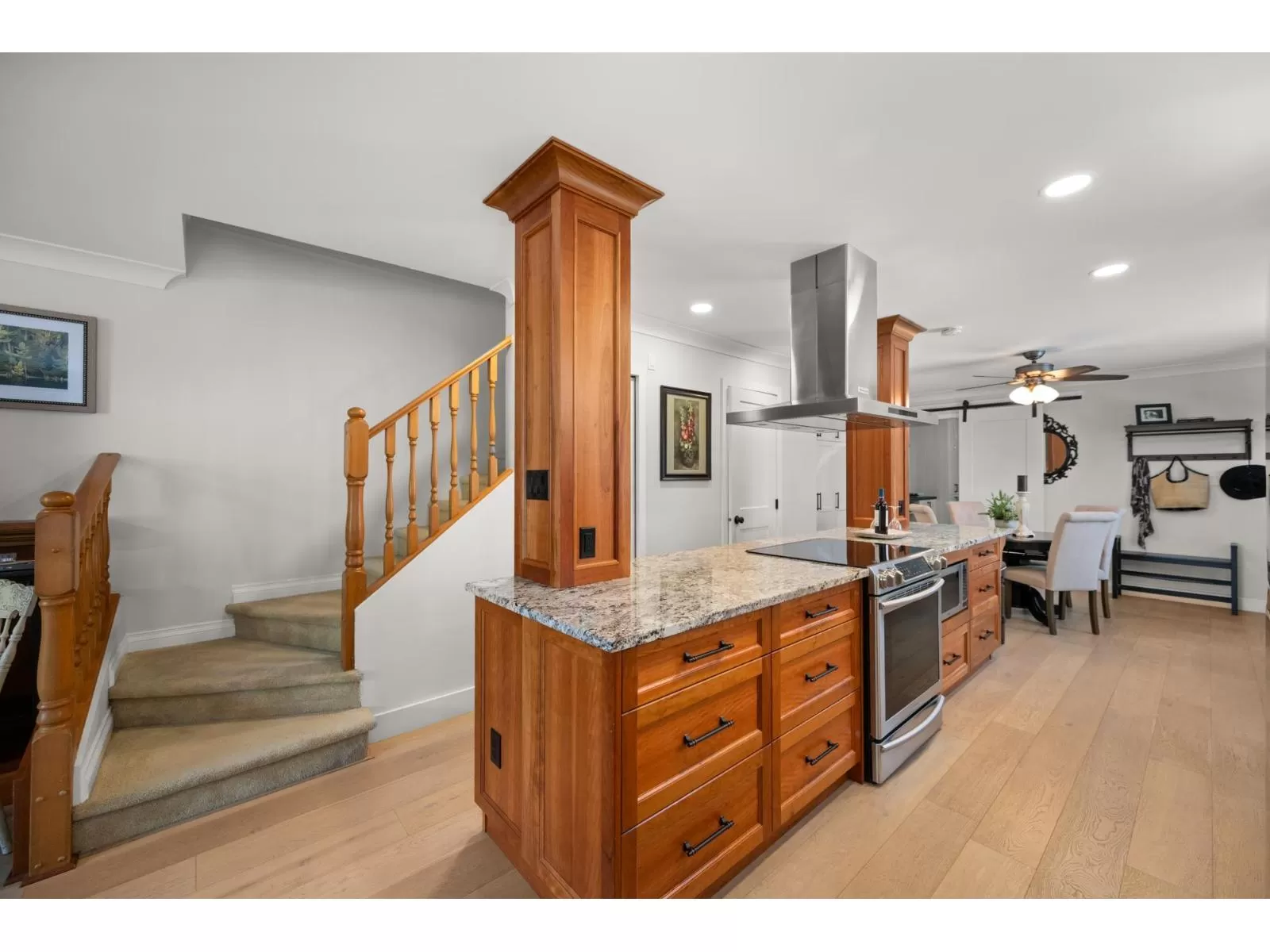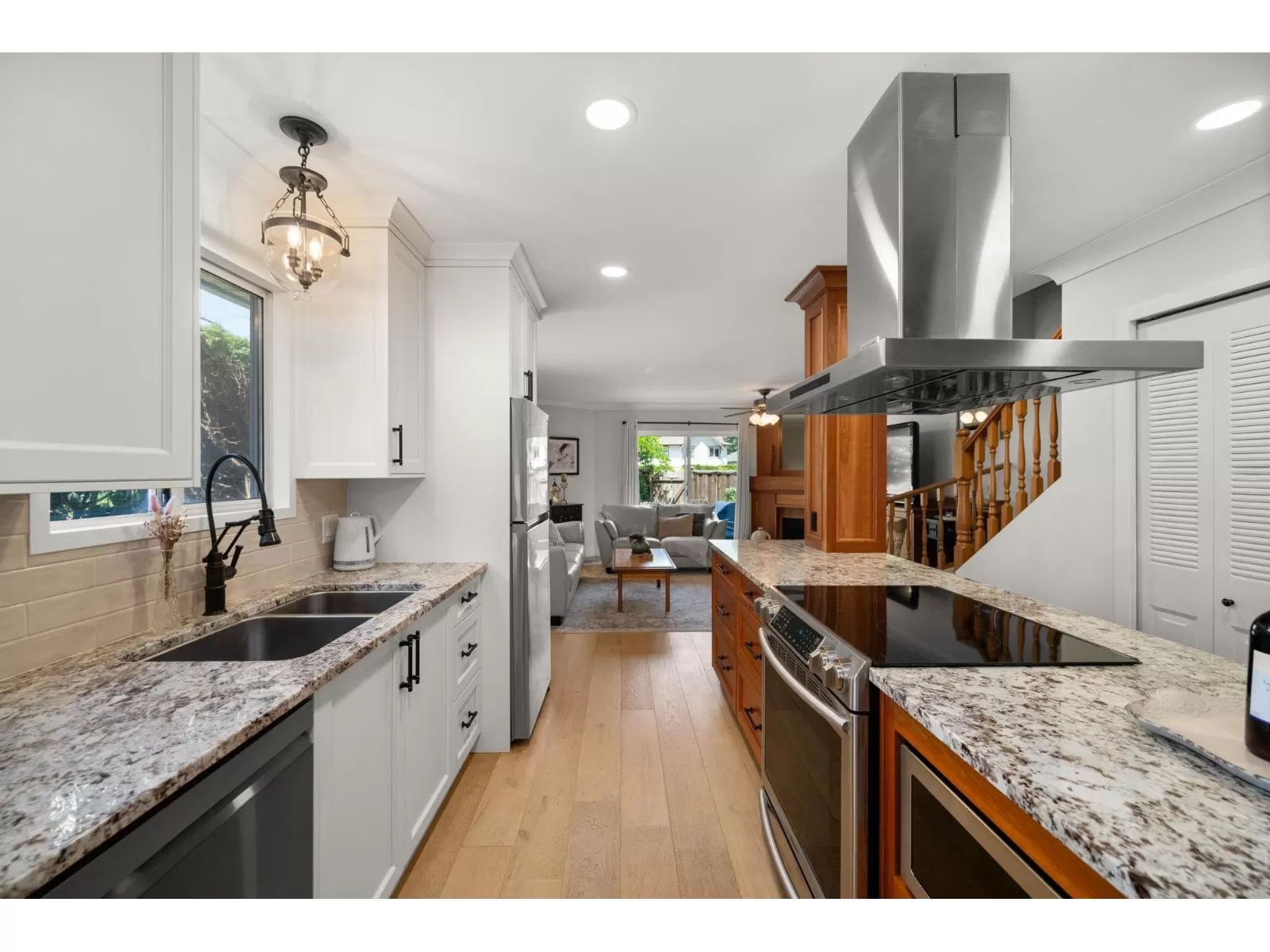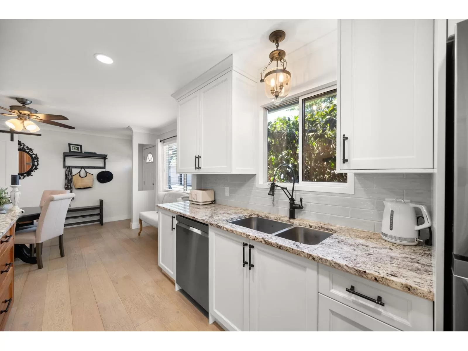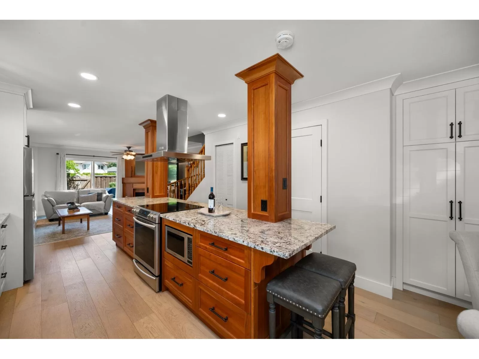 Welcome to Yorkson Manor-a hidden gem in the heart of Walnut Grove! This rarely available end-unit townhome offers 3 beds and 3 baths in a quiet 18-unit complex that fosters a true sense of community. Tastefully updated, this home features engineered hardwood floors, custom built-ins, and a bright, beautifully renovated kitchen with granite counters, SS appliances, chimney hood fan, and open-concept design perfect for entertaining. Enjoy radiant in-floor heating, an on-demand hot water system, and a cozy gas fireplace. The single garage includes a workbench, bike racks, and a fun flex space, easily converted back to parking if desired. Private fenced yard with flourishing gardens. Ample storage, including attic via Jacob's ladder. Close to schools, parks, shops, highway access & more! (id:27476)