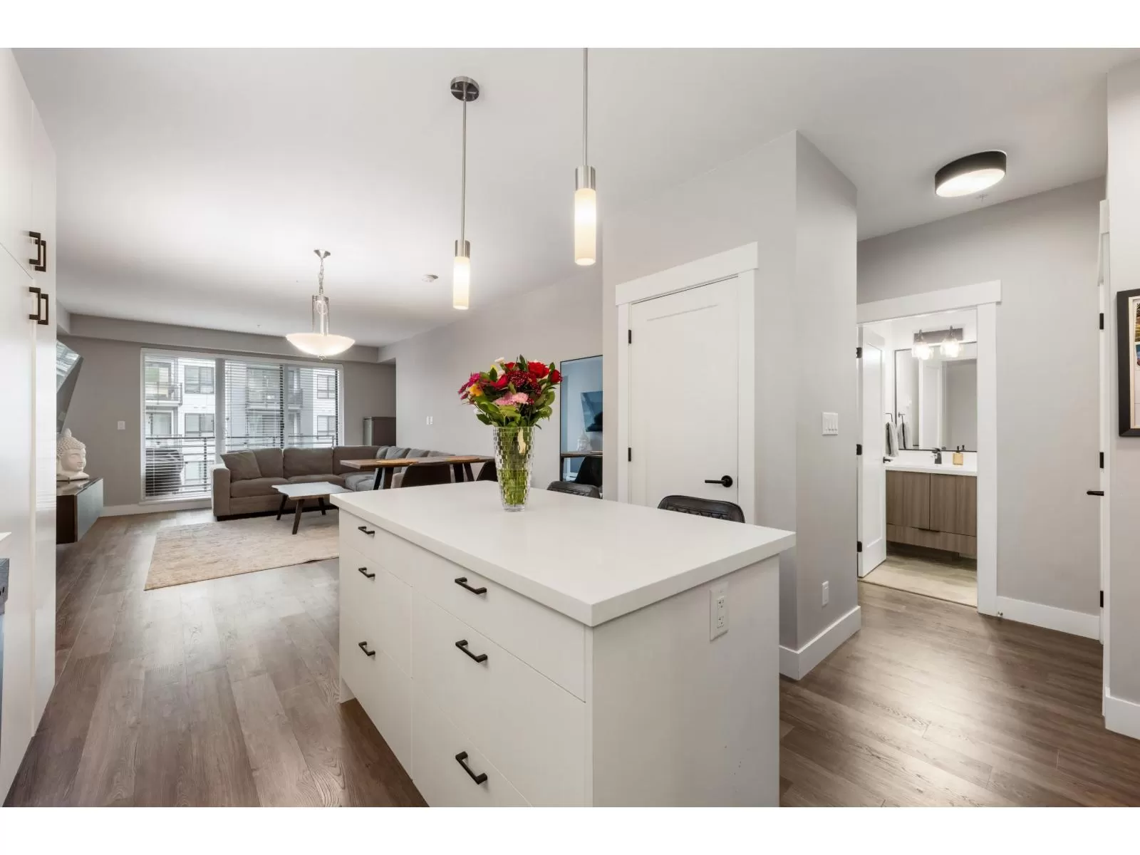 Welcome to Hudson & Singer, a sought-after community in the heart of Willoughby! This bright and spacious 1,019 sq. ft. 2-bedroom, 2-bathroom condo offers an open-concept layout with high-end finishes. The modern kitchen features stainless steel appliances, quartz countertops, and ample storage. The large primary bedroom includes a walk-through closet leading to a spa-like ensuite with a double vanity and glass-enclosed shower. A versatile second bedroom is great for guests, an office, or a growing family. Step outside to your private balcony, ideal for relaxing or entertaining. Enjoy fantastic building amenities, courtyard garden, and kids' play area. Located within walking distance to Willoughby Town Centre, parks, schools, and transit. 2 parking stalls and storage unit included. (id:27476)