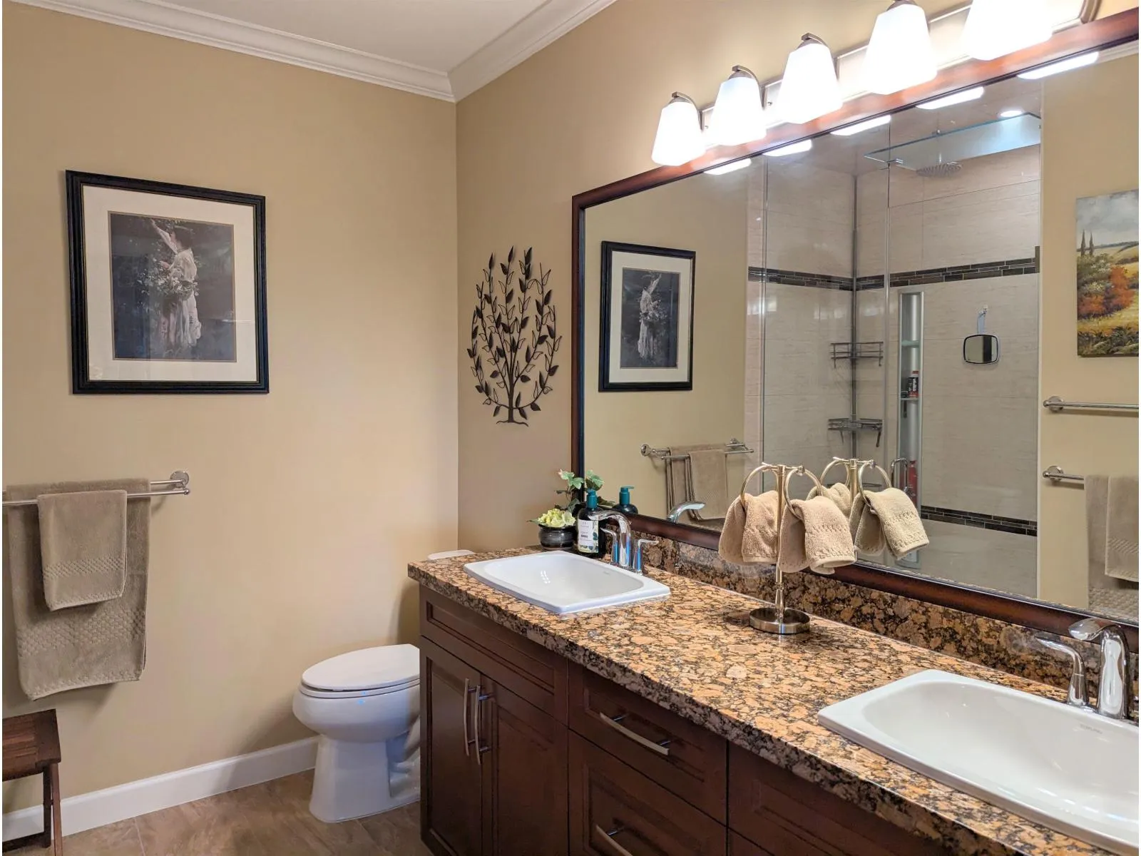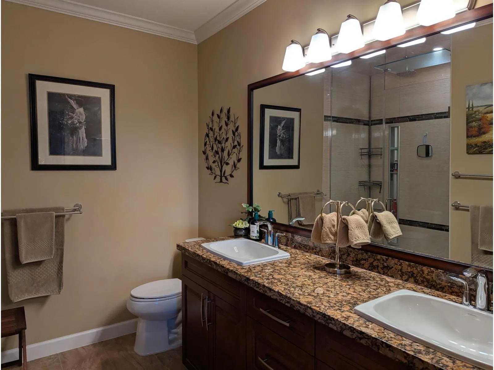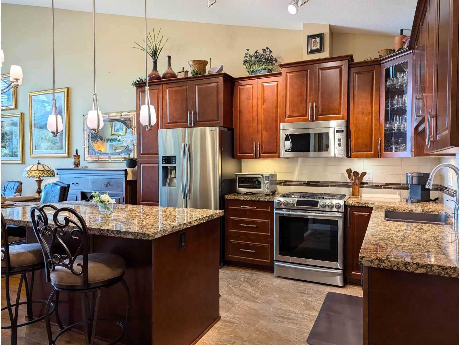 Stop your search; this executive, luxury penthouse is the one! Yorkston Creek Parkside 1 was constructed by Quadra with quality design & materials and this home features many upgrades and thoughtful, value-added extras added by my meticulously clean & detail-oriented original owners. Please request the full list! This corner unit has a wrap around 240 sqft solarium that enjoys greenbelt and sunset views, an impressive vaulted ceiling in the living room, heated bathroom floors and mirrors, ductless heat pumps, solid wood cabinetry and doors, granite counters and high-end stainless steel appliances. ADA (handicap)friendly home, with wider doors and including a parking location near the elevators and one parking stall that is wider for improved accessibility. EV capable; private garage-style storage. Fabulous location near shopping, parks, restaurants, schools, daycare, tennis dome and coming soon - a new indoor pool and rec centre! Strata fee includes gas, hot water, gym. Won't last - book your showing today! (id:27476)