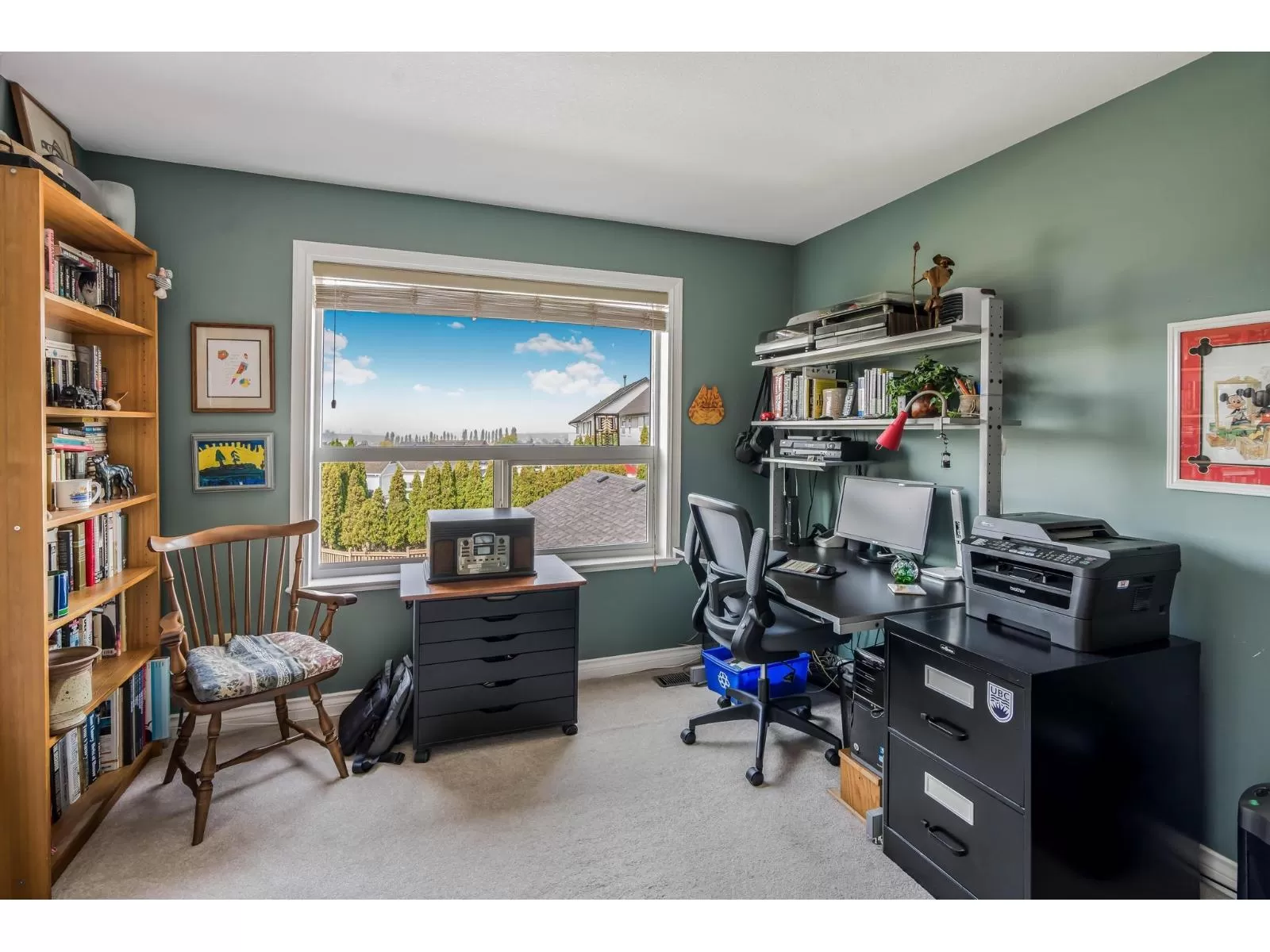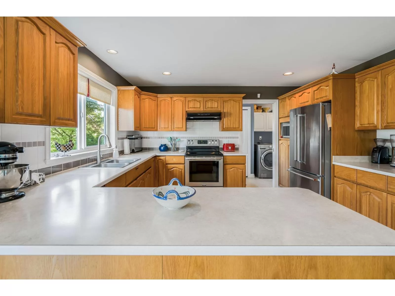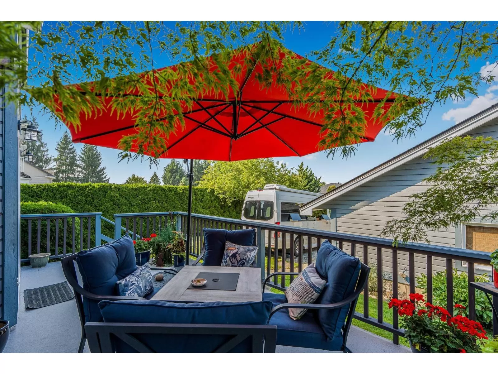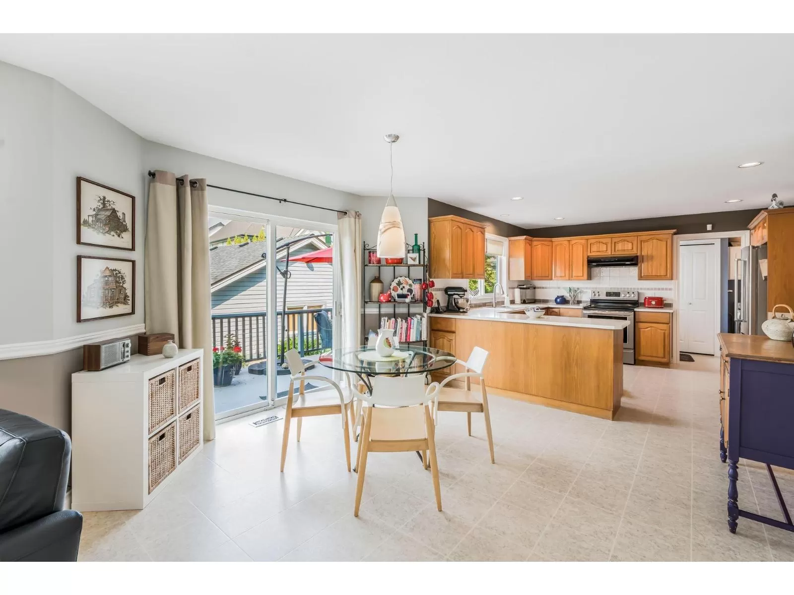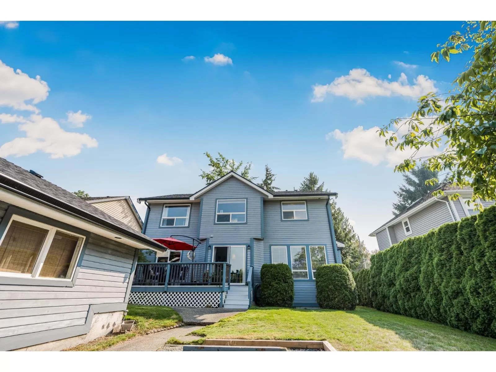 Beautifully maintained 2 storey home in MURRAY'S CORNER, Murrayville. Traditional style with a separate dining room and inviting living room. Perfect for entertaining. The spacious kitchen is well laid out for a gourmet chef and adjoins the family room overlooking the landscaped back yard with views to Golden Ears. Upstairs views extend across the valley to the mountains. 4 bedrooms up and 3 washrooms. There is a large detached garage off the lane and RV parking. Recent updates include new Duradeck on the front porch, roof with solar vents 2024, Gutters and downspouts 2024, Water heater 2024, and a high efficiency furnace 2021. Features include vaulted ceiling in primary bedroom, 2 x 6 exterior walls, heated crawl space and oversized windows. Highly walkable/bikeable area. (id:27476)