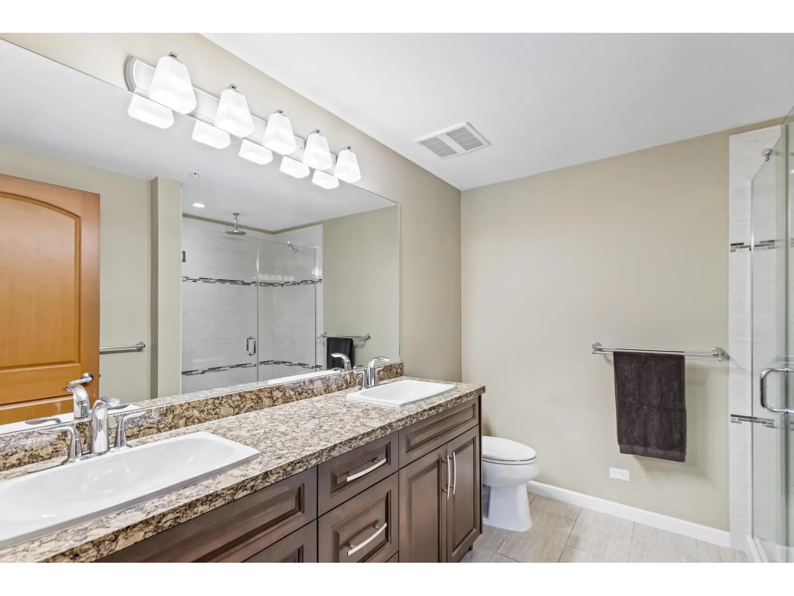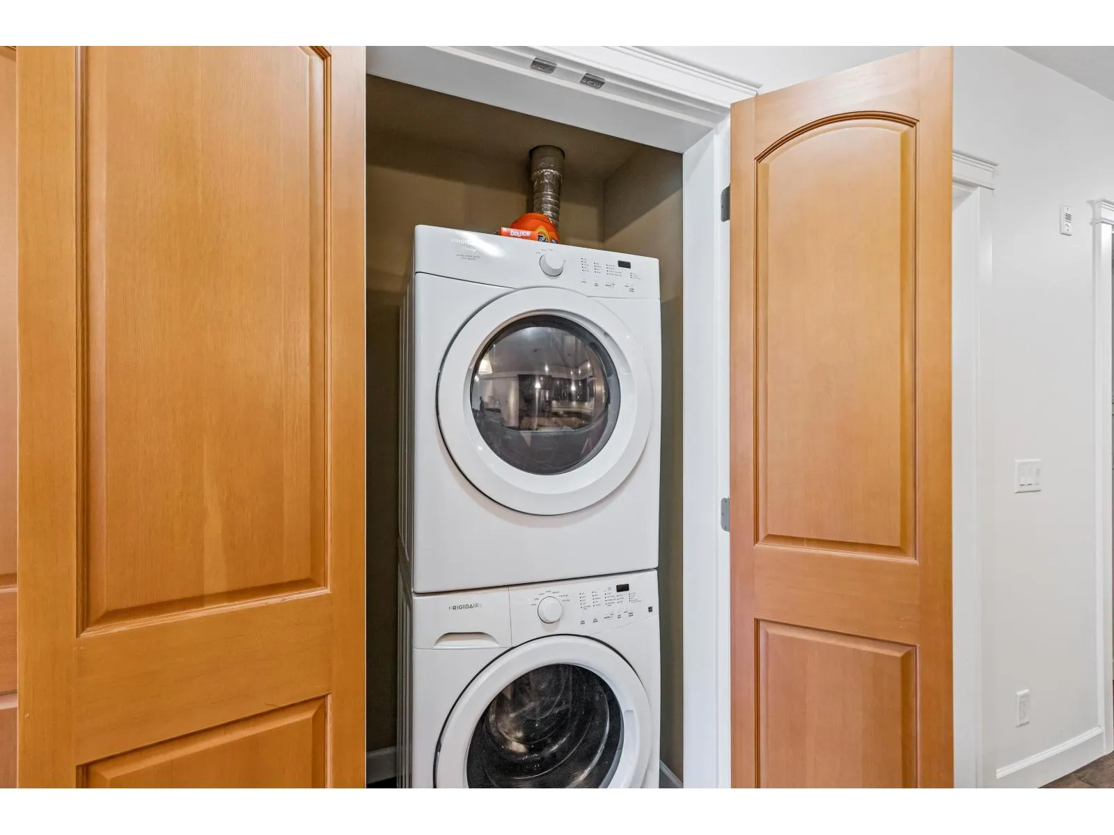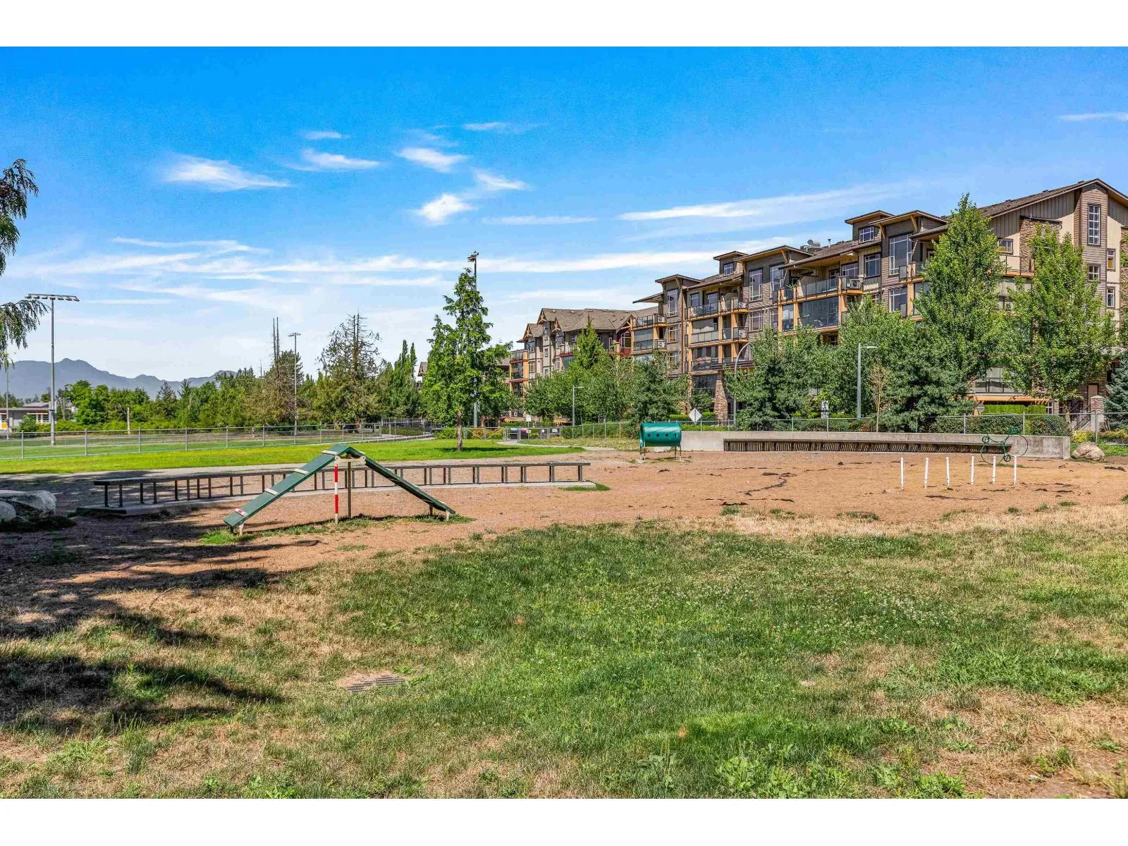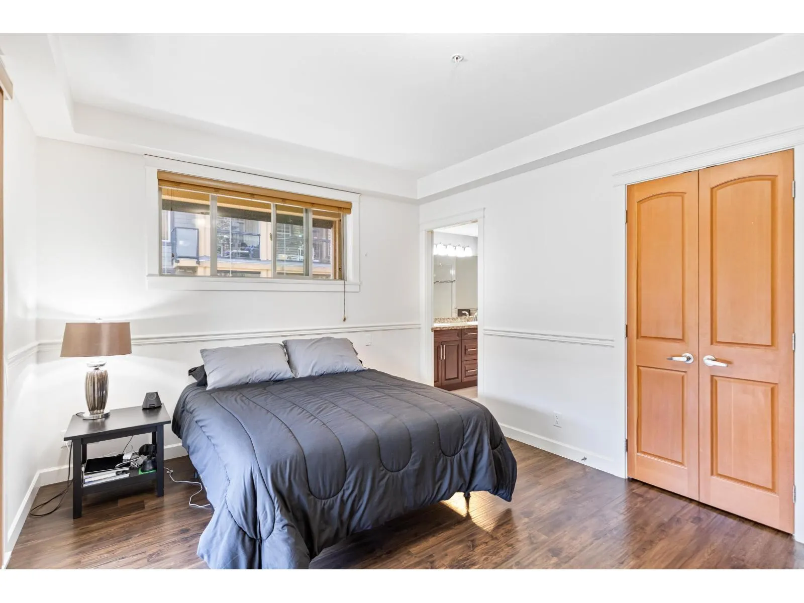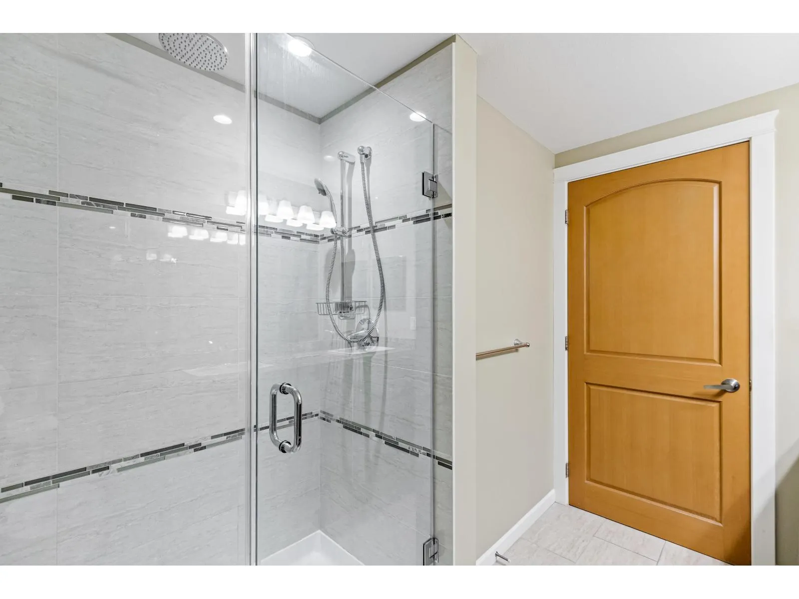 Stunning 2 bed, 2 bath + den (or 3rd bed) corner unit in sought after Walnut Ridge at Yorkson by Quadra Homes. This 1,035FT home features a spacious open layout w/ bedrooms on opposite sides of living for added privacy. Enjoy year round use of the 224FT covered, south facing, wrap around balcony, w/retractable glass, overlooking peaceful courtyard. Chef's kitchen boasts s/s appliances, granite countertops, quality cabinetry & large island. Primary suite inc/walk-in closet & spa like ensuite with large shower. Freshly painted with luxury touches like A/C, heated bathroom floors & anti-fog mirrors. Includes 2 parking stalls & oversized storage w/ electrical outlet & roll-up door. In the heart of Willoughby Heights close to schools, parks, transit, restaurants, shopping & Hwy1 access. (id:27476)