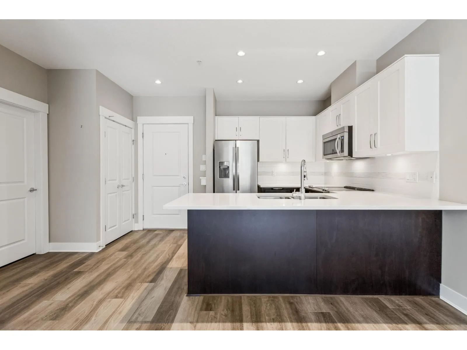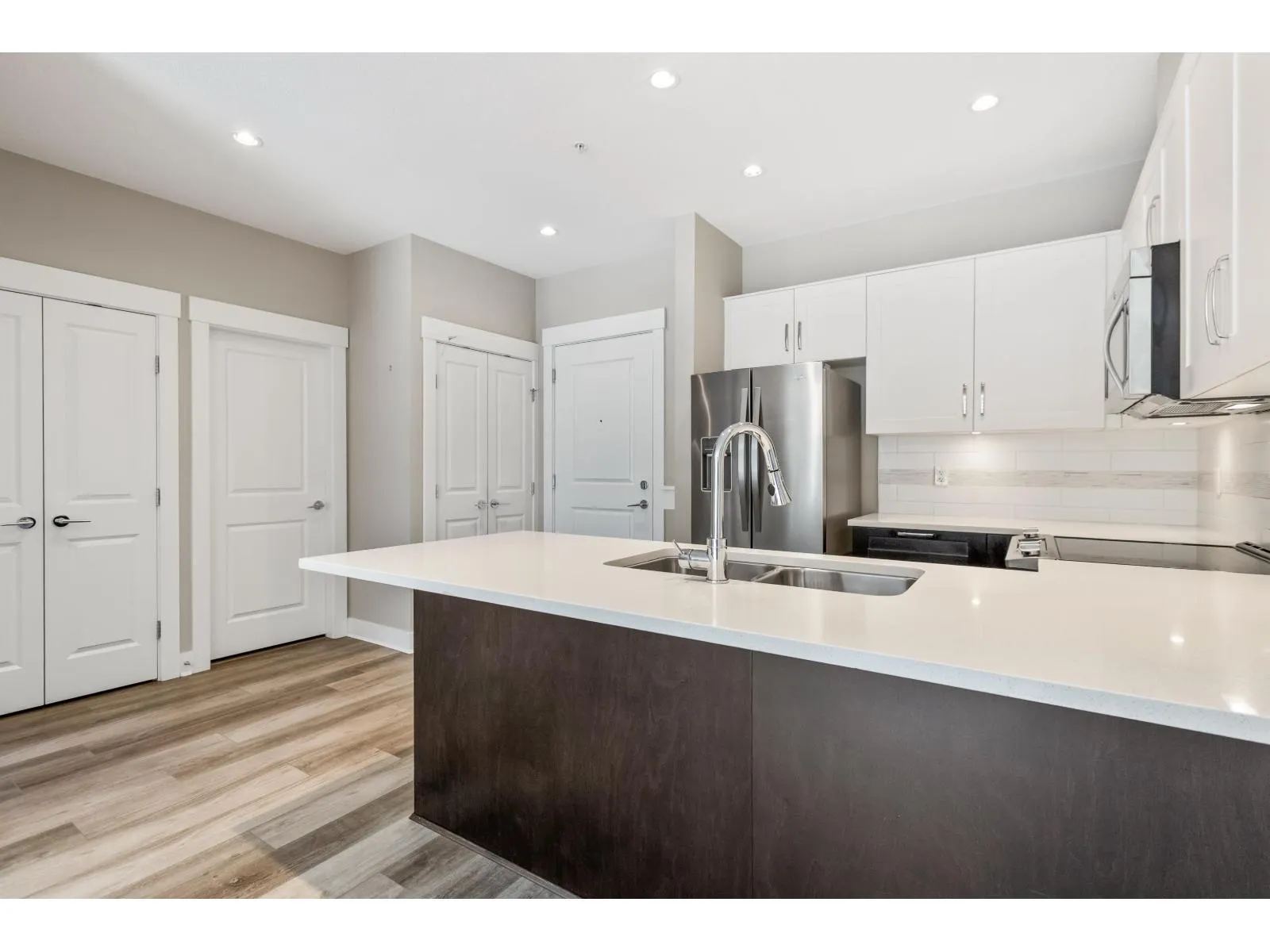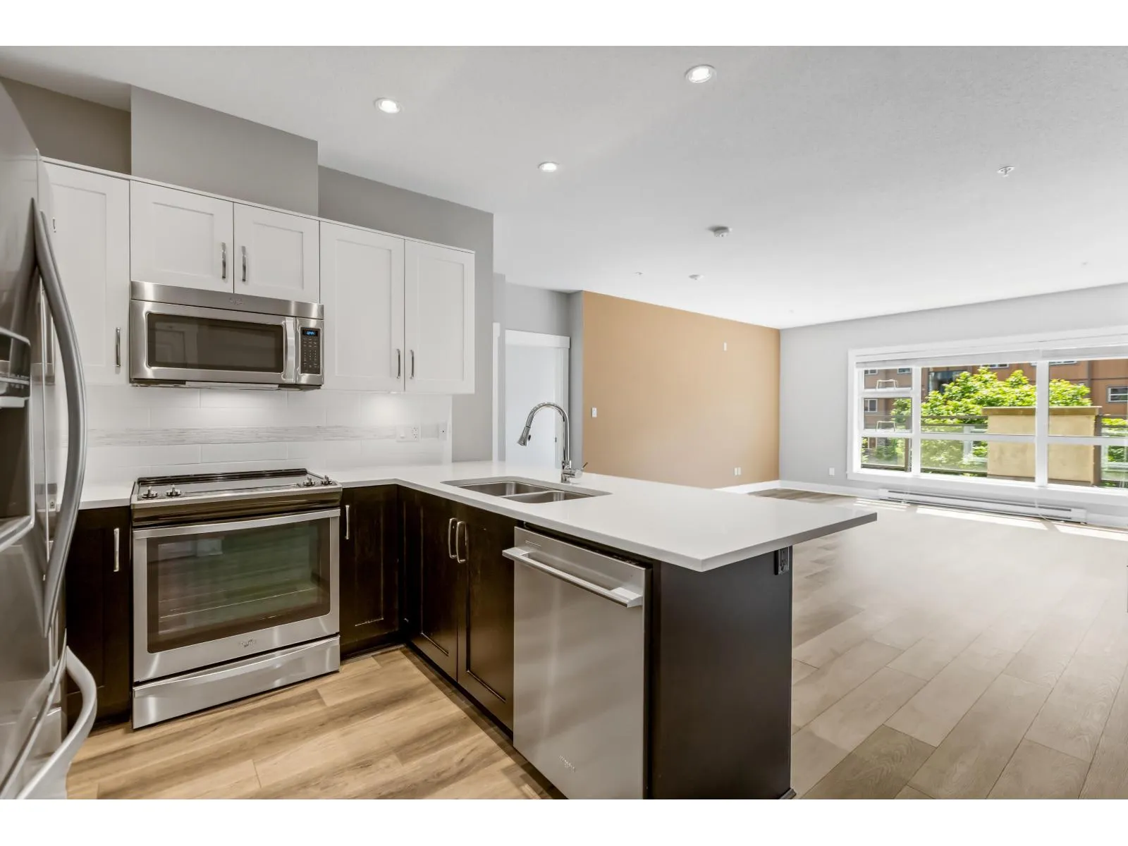 2 BED + DEN, 2 BATH CORNER UNIT with an INCREDIBLE 708 SQ. FT. PATIO-an exceptional outdoor space ideal for entertaining, summer dining, or morning coffee. Original owners-HOME HAS NEVER BEEN TENANTED. Move-in ready and well maintained with updated laminate flooring, built-in entertainment cabinetry, updated dishwasher, and washer/dryer. INCLUDES 2 PARKING + STORAGE LOCKER. Steps to shops, restaurants, and daily essentials in the heart of Willoughby Centre. TWO PETS ALLOWED (combined up to 65 lbs). Quick completion possible. (id:27476)