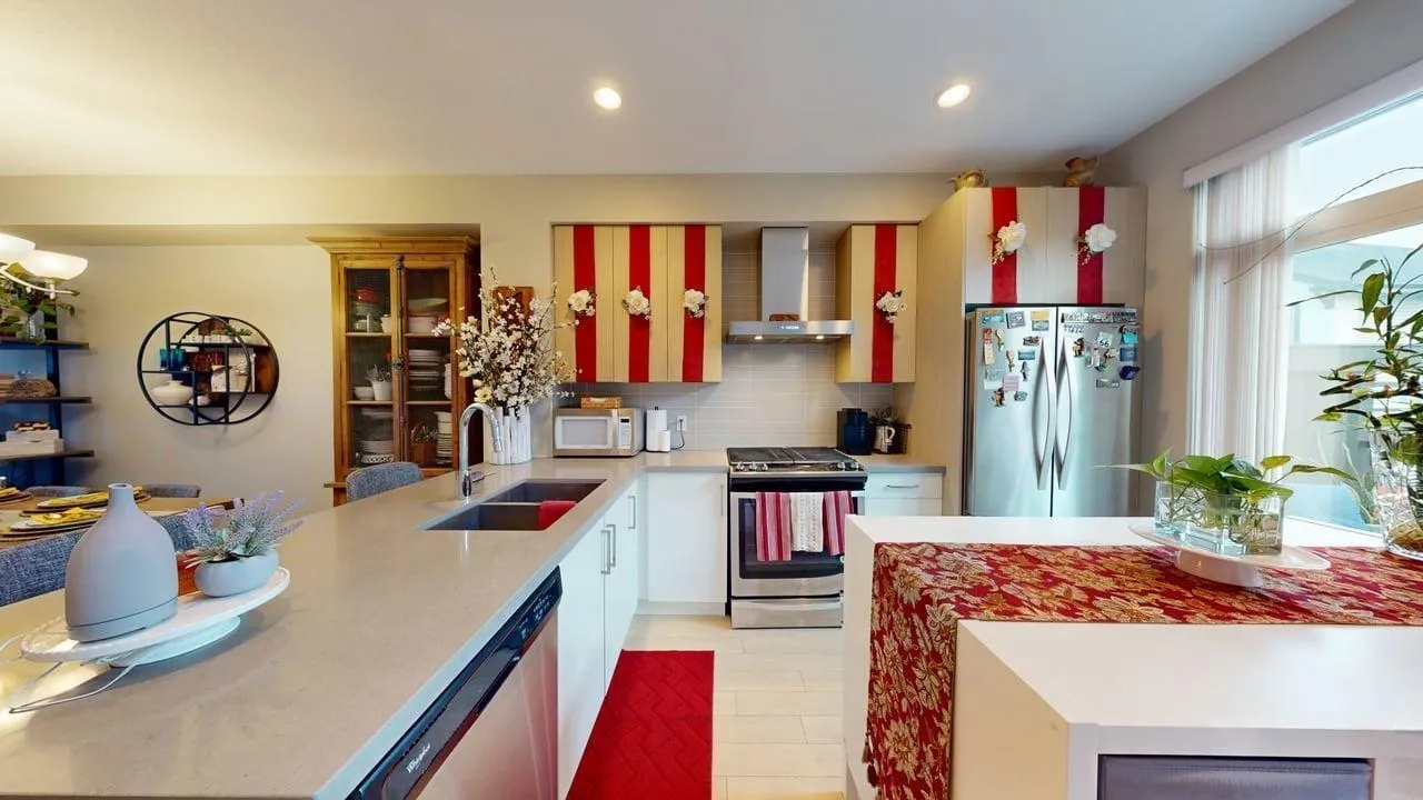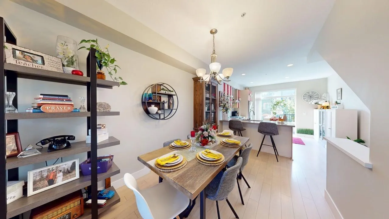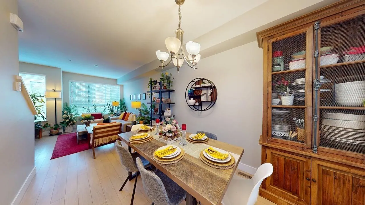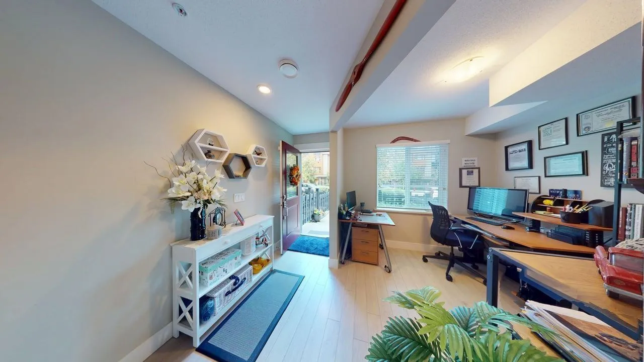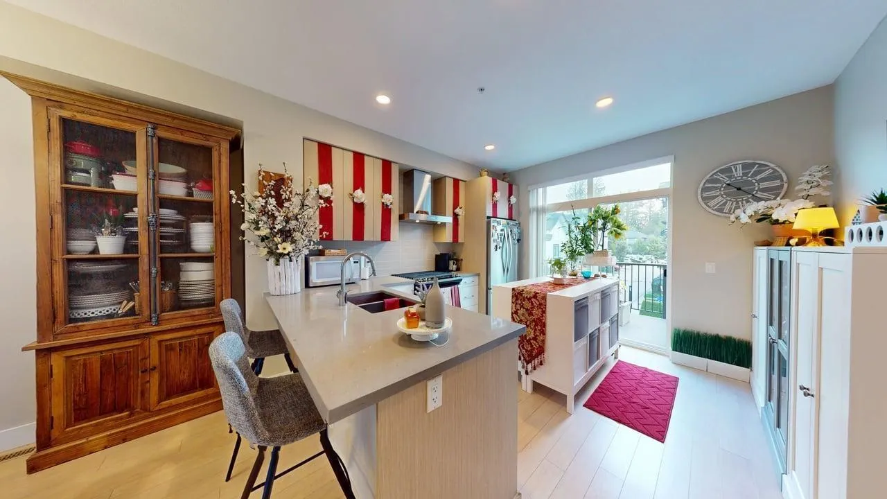 Welcome to Woodland Park, the premier location in Willoughby Heights built by Infinity. This craftsman-style townhouse offers an open-concept layout with 1,265 sq. ft. of living space, featuring 2 bedrooms, a den, and 3 bathrooms. Highlights include 9' ceilings on the main level, forced air heating, large Energy Star windows with 2" faux wood blinds, and a functional kitchen equipped with stainless steel appliances, polished quartz countertops, tile backsplash, a five-burner gas range, and convection oven. The ground level includes a den and powder room for added convenience. Ideally situated near Hwy 1, Yorkson Creek Trail, Carvolth Exchange, transit, schools, shopping, and parks such as Yorkson Community Park and Dorothy Peacock Park. (id:27476)