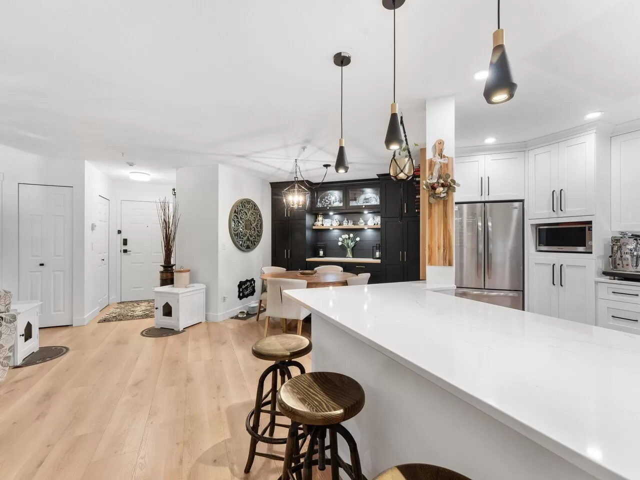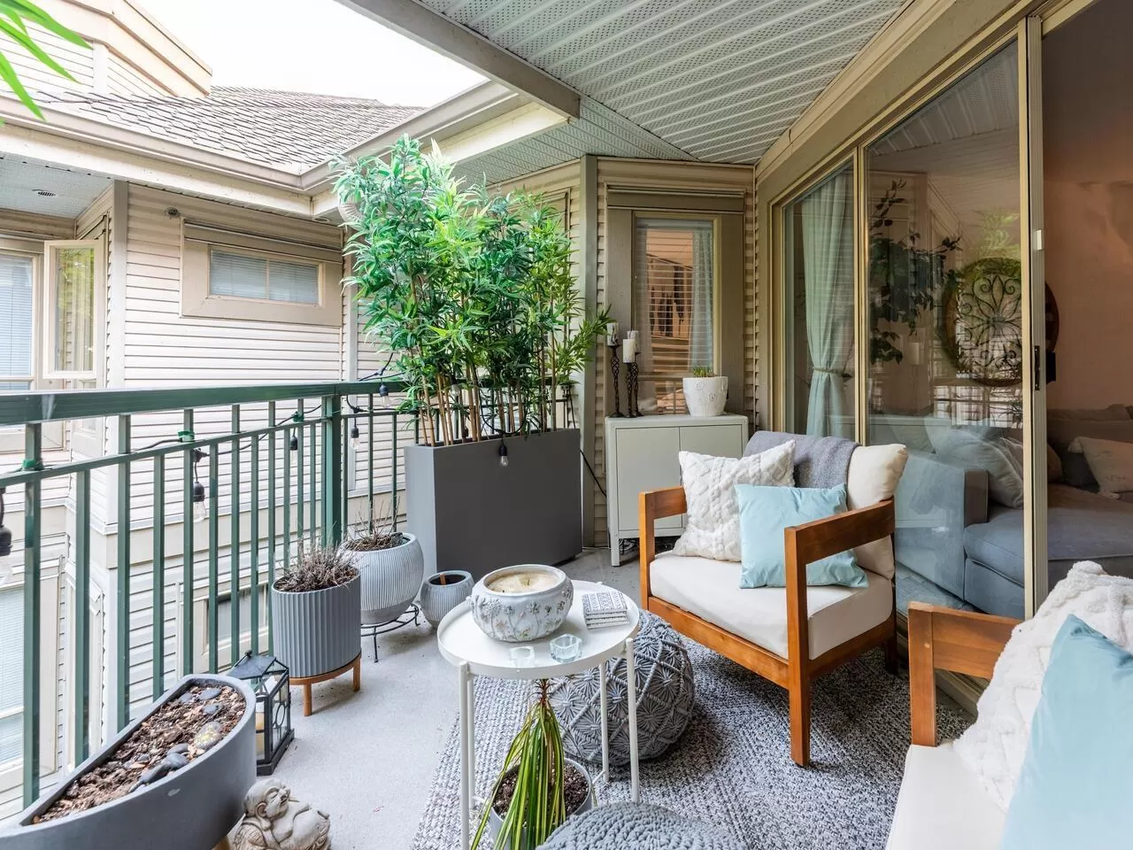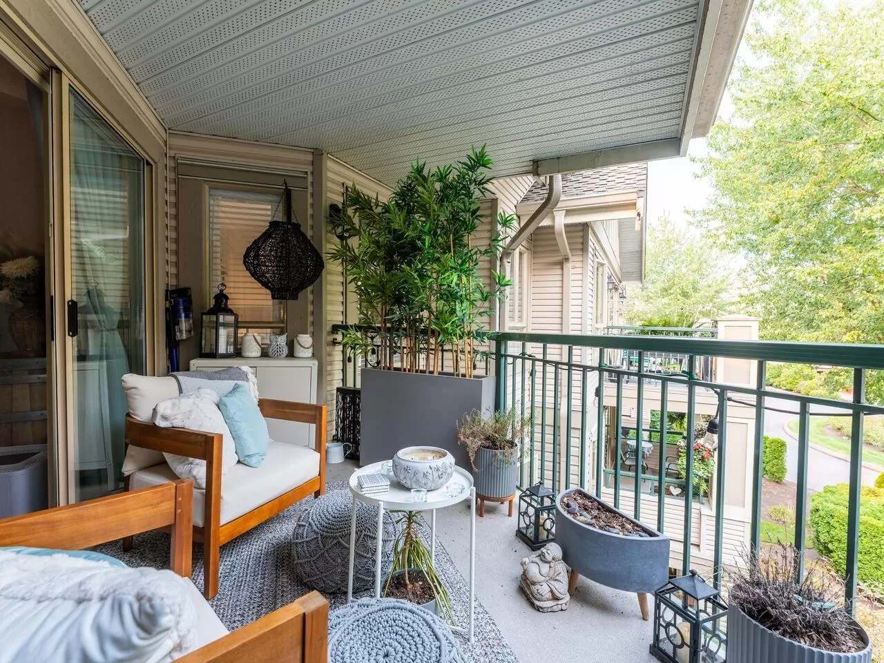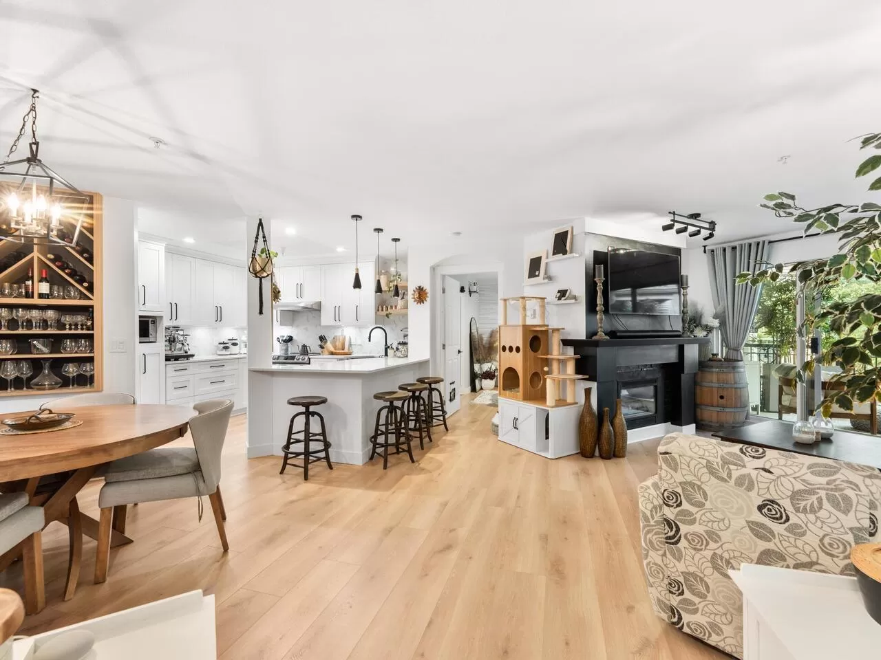 Absolutely gorgeous 1,151 sf, 2 bdrm, 2 bath extensively updated condo with high end renovations including gorgeous wide plank floors, tasteful décor, updated light fixtures, entertainment sized living rm with gas fireplace & door to patio, spacious dining rm with attractive built-ins, gorgeous updated kitchen w/white shaker style cabinets, SS appliances and quartz counters w/breakfast bar, 2 spacious bdrms & 2 extensively updated baths including primary bdrm w/wi closet & spectacular 4 pce ensuite. Fantastic floor plan with the 2 bdrms separated from each other by the living area provides the utmost in privacy. 2 parking stalls and storage locker are added value. Very spacious absolutely gorgeous updated condo with fantastic layout in prime Murrayville location absolutely must be seen. (id:27476)