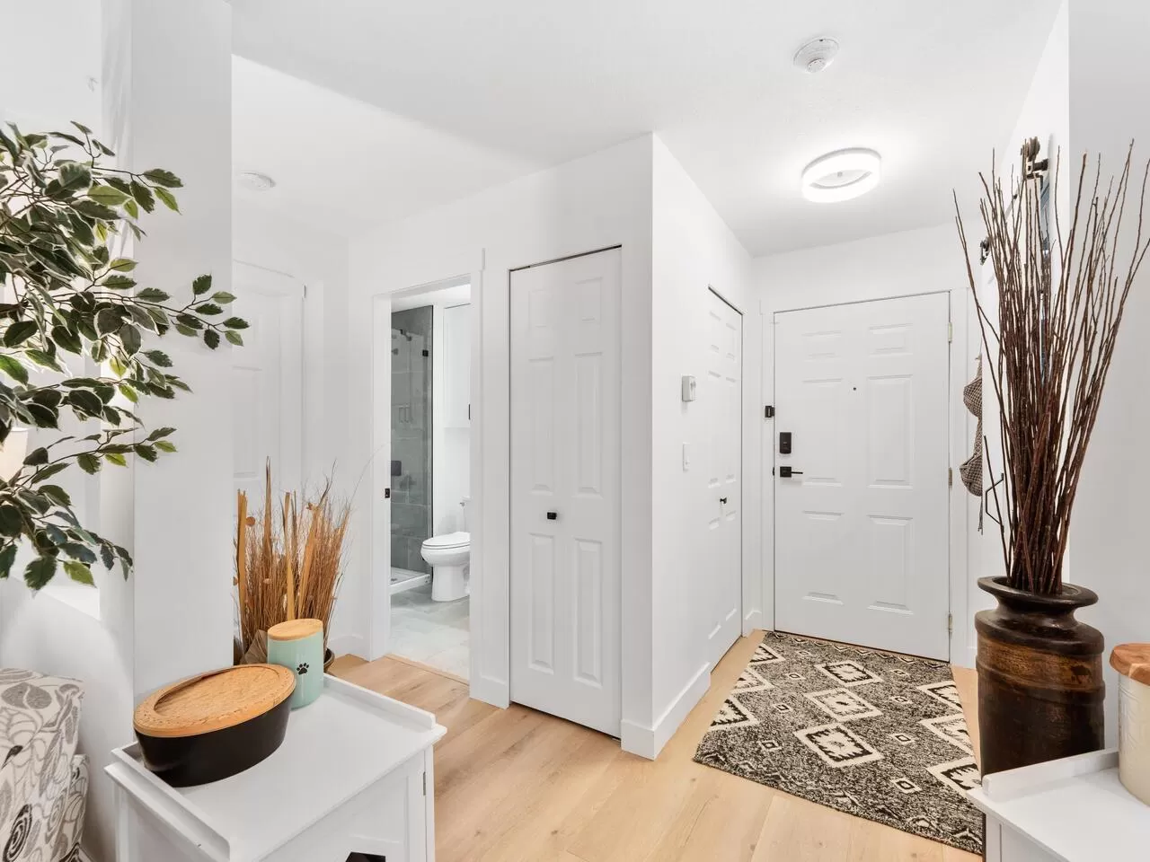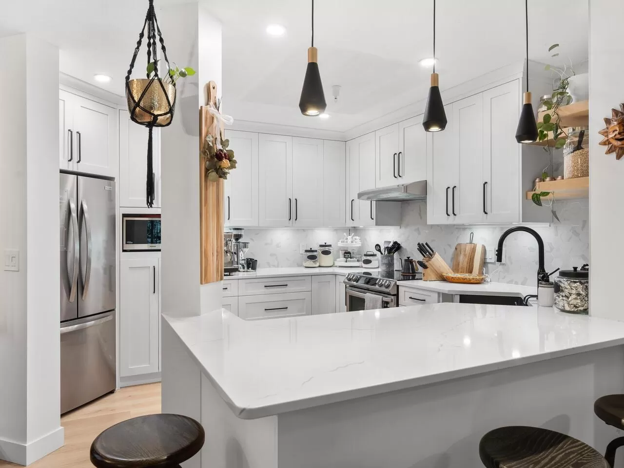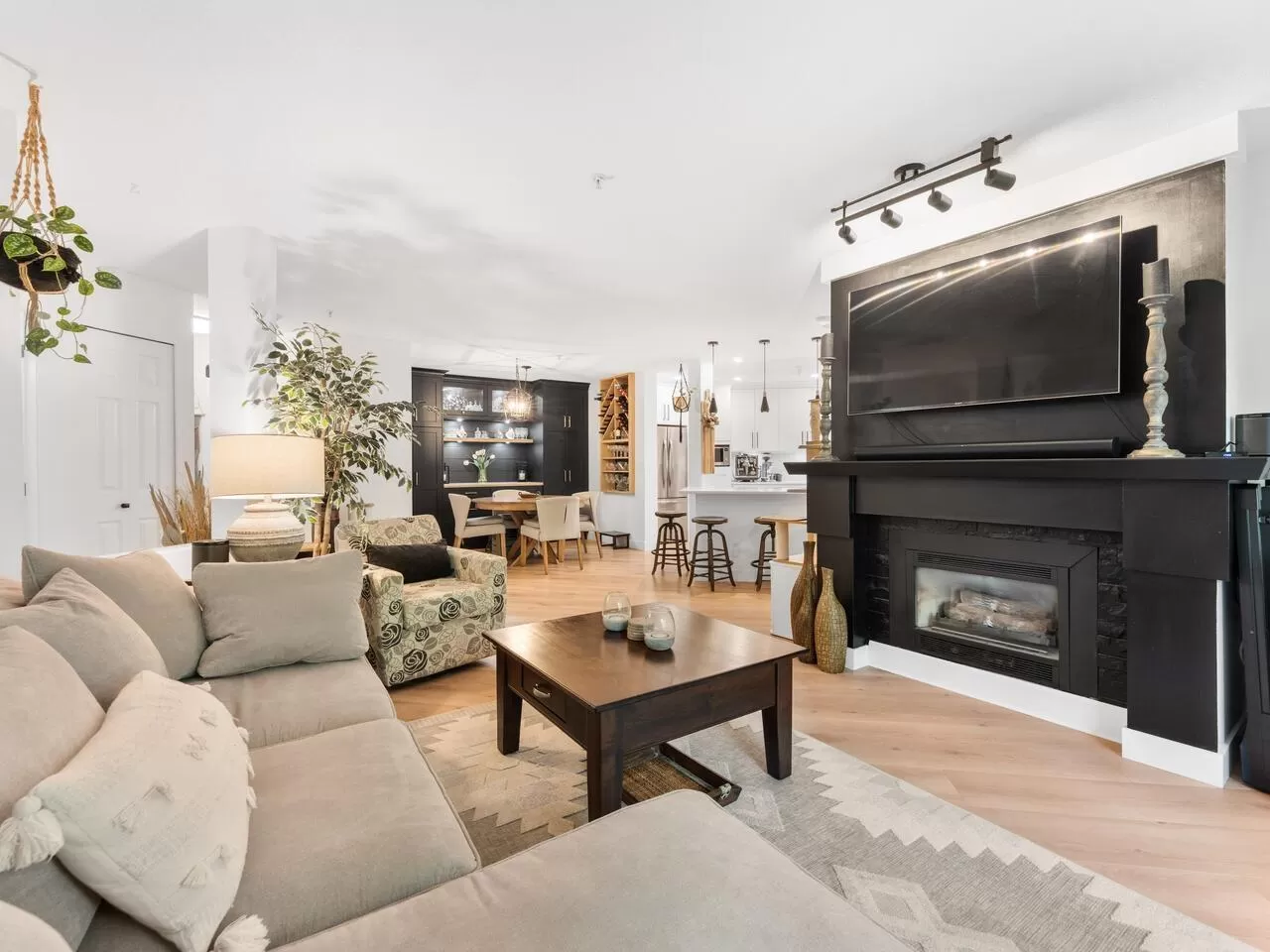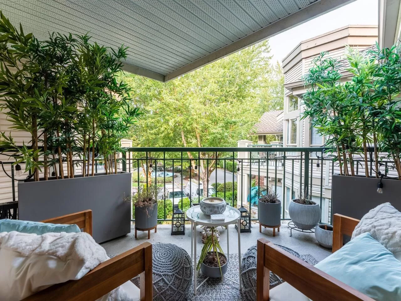 Absolutely gorgeous 1,151 sf, 2 bdrm, 2 bath extensively updated condo with high end renovations including gorgeous wide plank floors, tasteful décor, updated light fixtures, entertainment sized living rm with gas fireplace & door to patio, spacious dining rm with attractive built-ins, gorgeous updated kitchen w/white shaker style cabinets, SS appliances and quartz counters w/breakfast bar, 2 spacious bdrms & 2 extensively updated baths including primary bdrm w/wi closet & spectacular 4 pce ensuite. Fantastic floor plan with the 2 bdrms separated from each other by the living area provides the utmost in privacy. 2 parking stalls and storage locker are added value. Very spacious absolutely gorgeous updated condo with fantastic layout in prime Murrayville location absolutely must be seen. (id:27476)