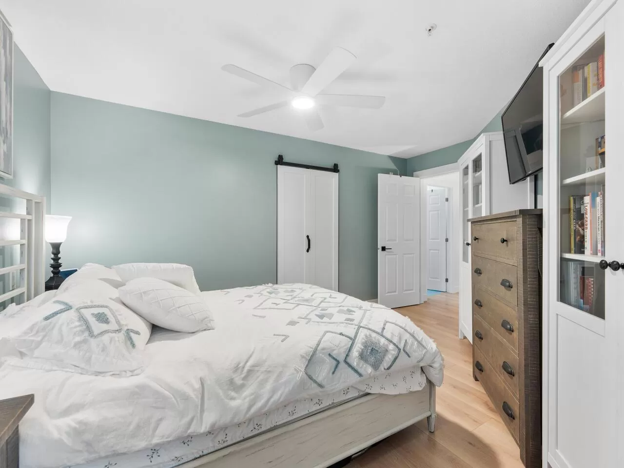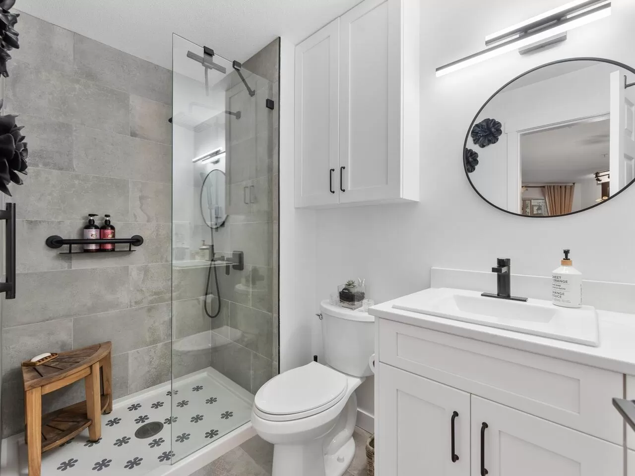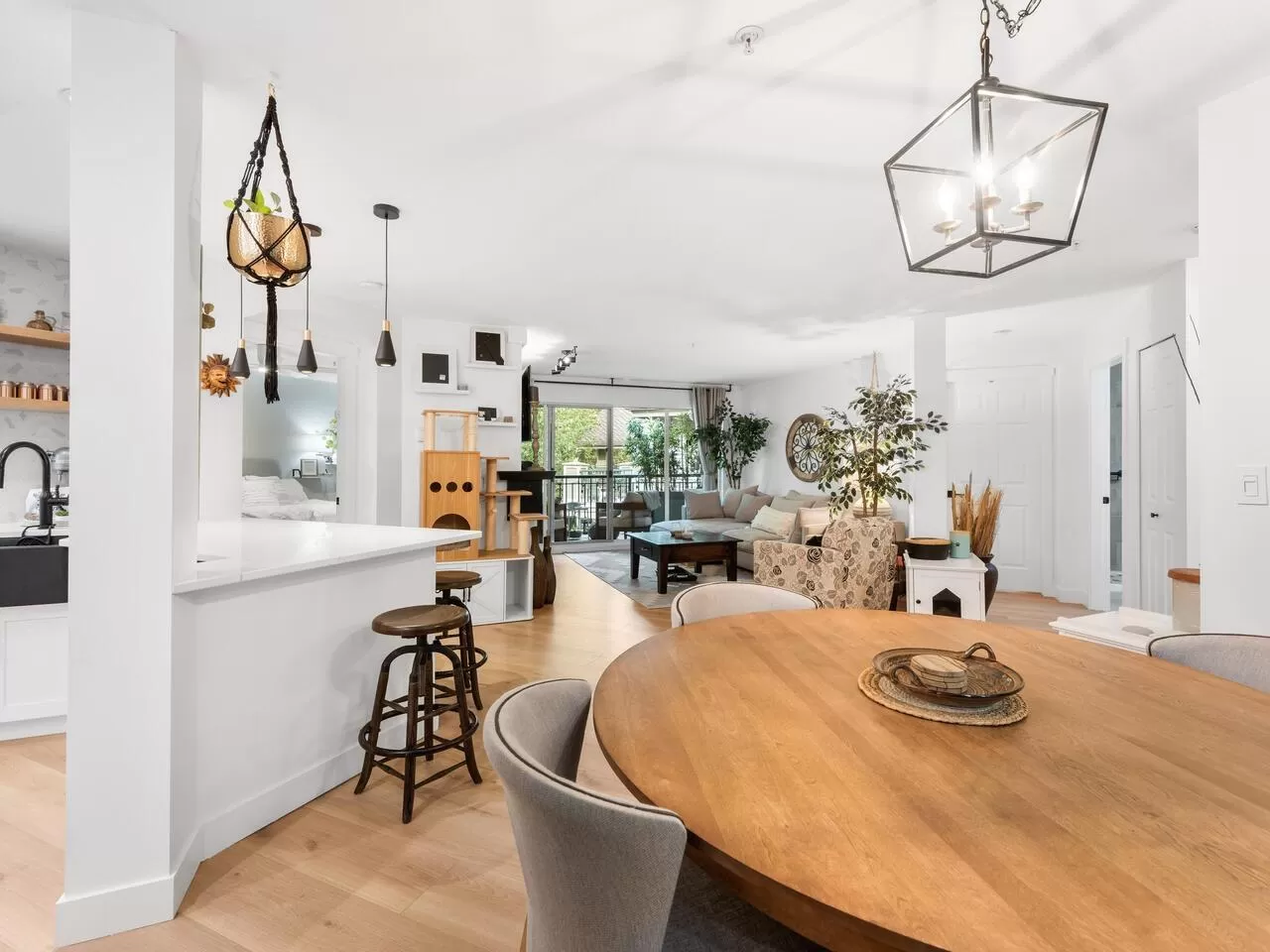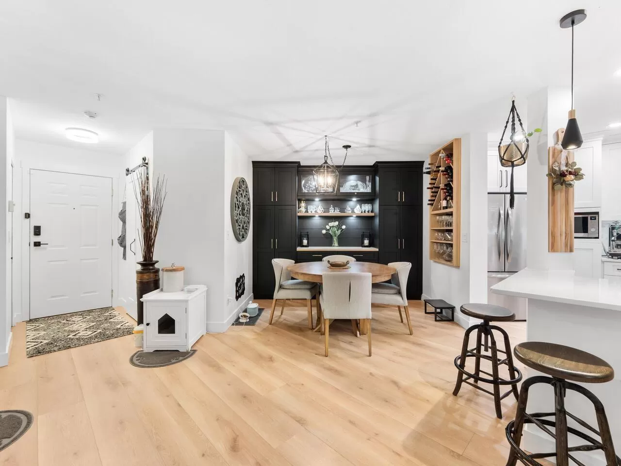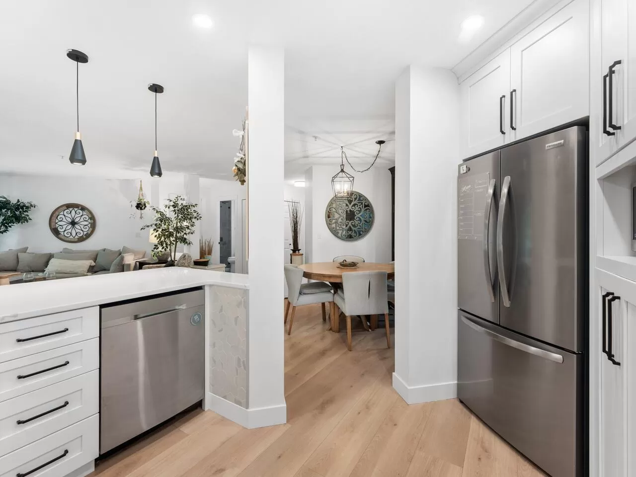 Absolutely gorgeous 1,151 sf, 2 bdrm, 2 bath extensively updated condo with high end renovations including gorgeous wide plank floors, tasteful décor, updated light fixtures, entertainment sized living rm with gas fireplace & door to patio, spacious dining rm with attractive built-ins, gorgeous updated kitchen w/white shaker style cabinets, SS appliances and quartz counters w/breakfast bar, 2 spacious bdrms & 2 extensively updated baths including primary bdrm w/wi closet & spectacular 4 pce ensuite. Fantastic floor plan with the 2 bdrms separated from each other by the living area provides the utmost in privacy. 2 parking stalls and storage locker are added value. Very spacious absolutely gorgeous updated condo with fantastic layout in prime Murrayville location absolutely must be seen. (id:27476)