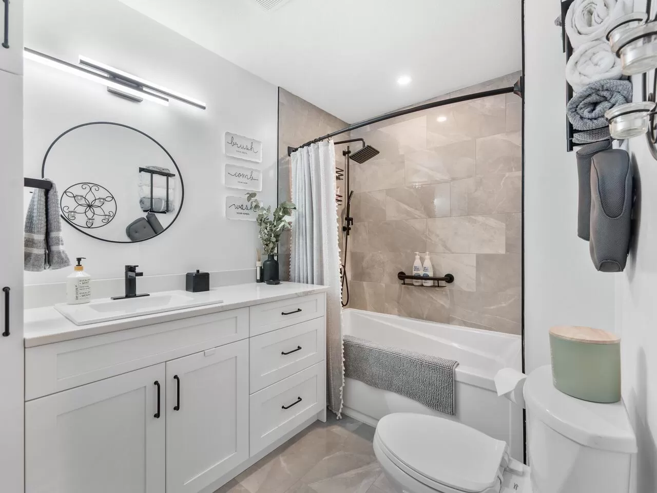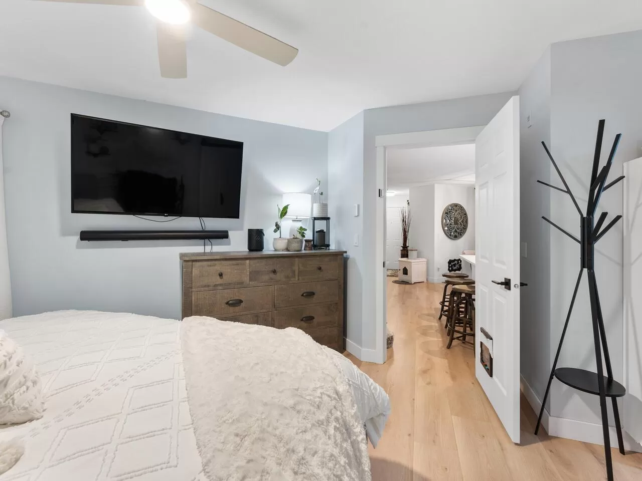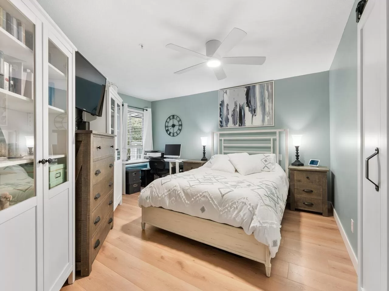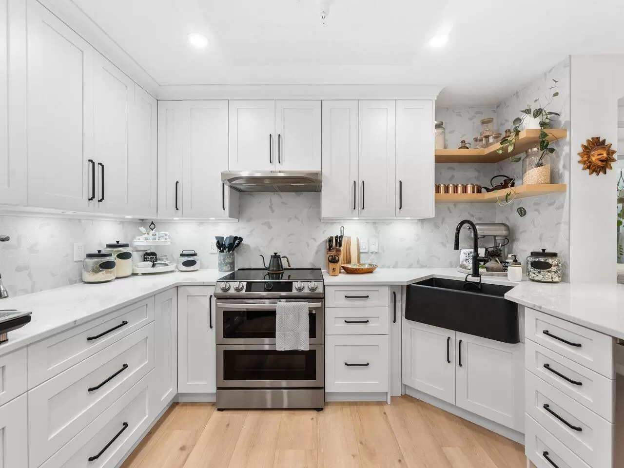 Absolutely gorgeous 1,151 sf, 2 bdrm, 2 bath extensively updated condo with high end renovations including gorgeous wide plank floors, tasteful décor, updated light fixtures, entertainment sized living rm with gas fireplace & door to patio, spacious dining rm with attractive built-ins, gorgeous updated kitchen w/white shaker style cabinets, SS appliances and quartz counters w/breakfast bar, 2 spacious bdrms & 2 extensively updated baths including primary bdrm w/wi closet & spectacular 4 pce ensuite. Fantastic floor plan with the 2 bdrms separated from each other by the living area provides the utmost in privacy. 2 parking stalls and storage locker are added value. Very spacious absolutely gorgeous updated condo with fantastic layout in prime Murrayville location absolutely must be seen. (id:27476)