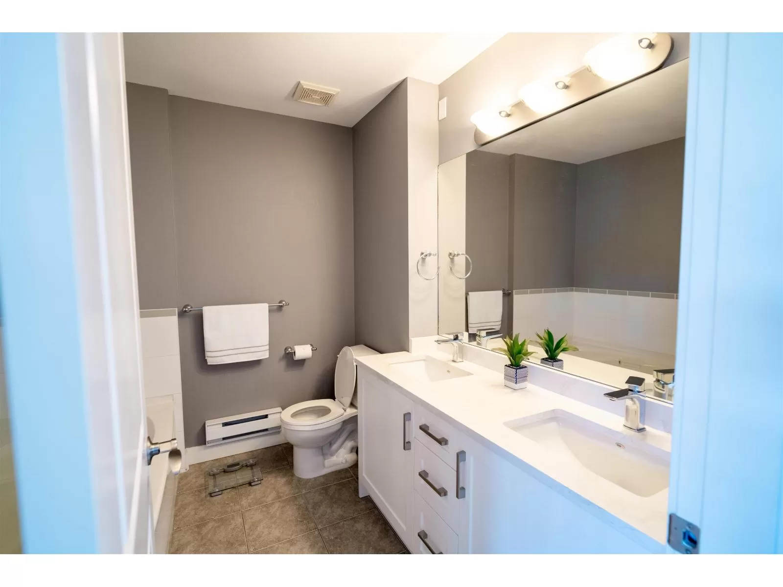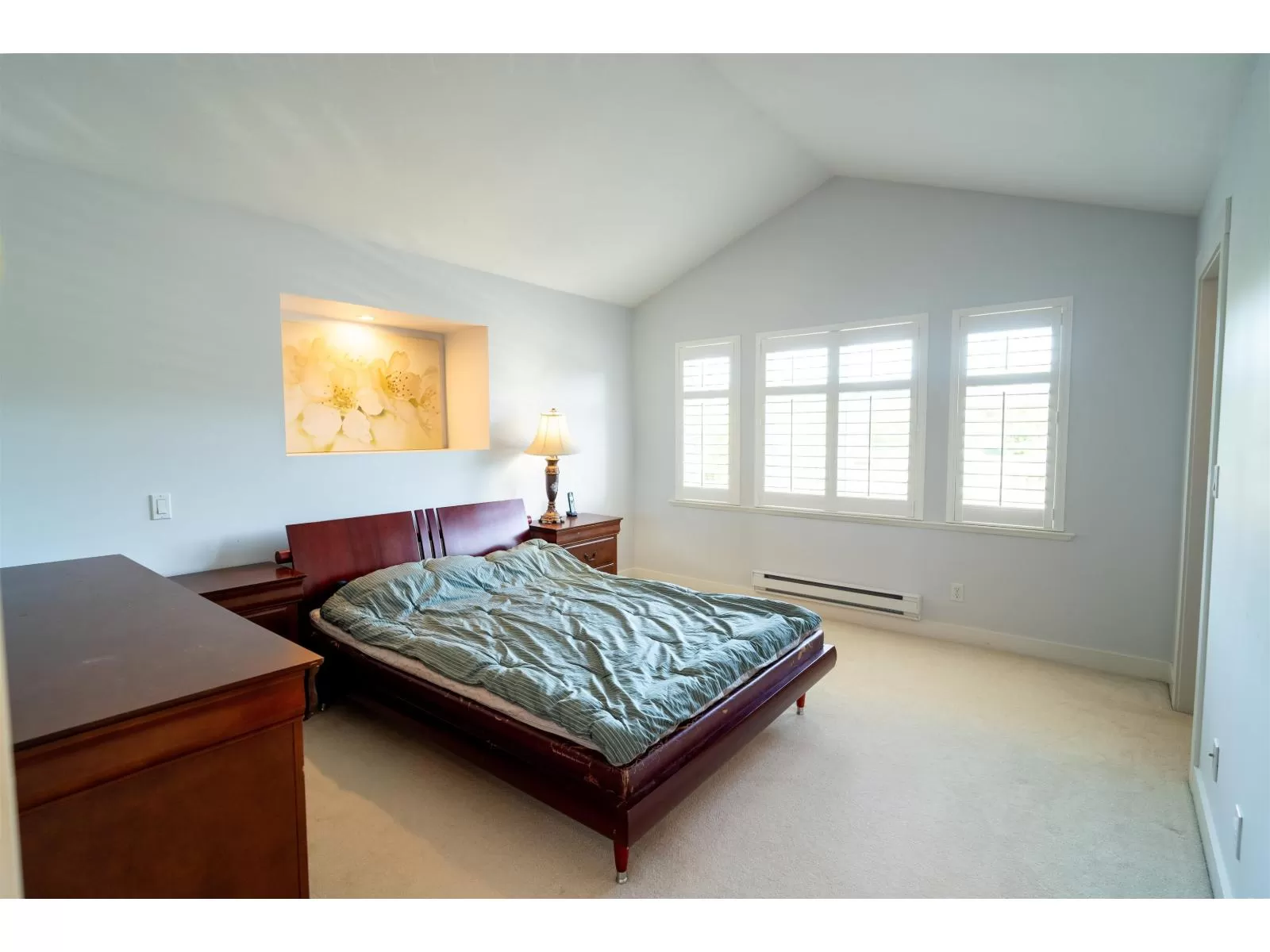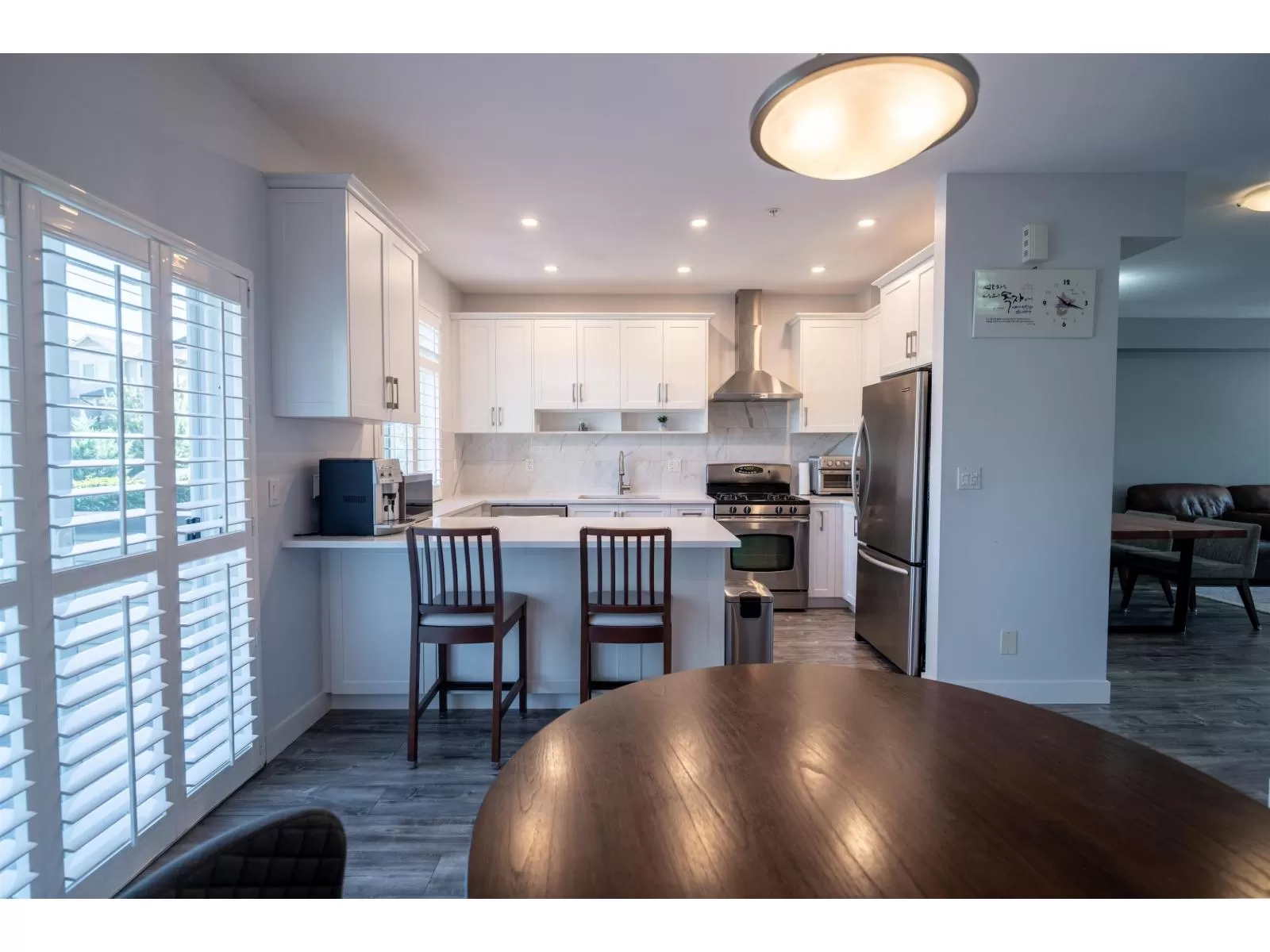 Renovated in 2022 with $50K, this 3-level end unit has 3 bedrooms and 3.5 baths. Updates include flooring, bathrooms, kitchen, hot water tank, and more. The main floor has 9' ceilings, a gas fireplace, and a bright kitchen with granite counters, island, stainless appliances, and gas stove that opens to a sunny deck. Upstairs has 3 bedrooms including a vaulted primary with walk-in and ensuite. Downstairs offers a big rec room with full bath and walkout patio. Complete with California shutters, side-by-side garage, and extra street parking. Close to shopping, schools, and freeway. (id:27476)