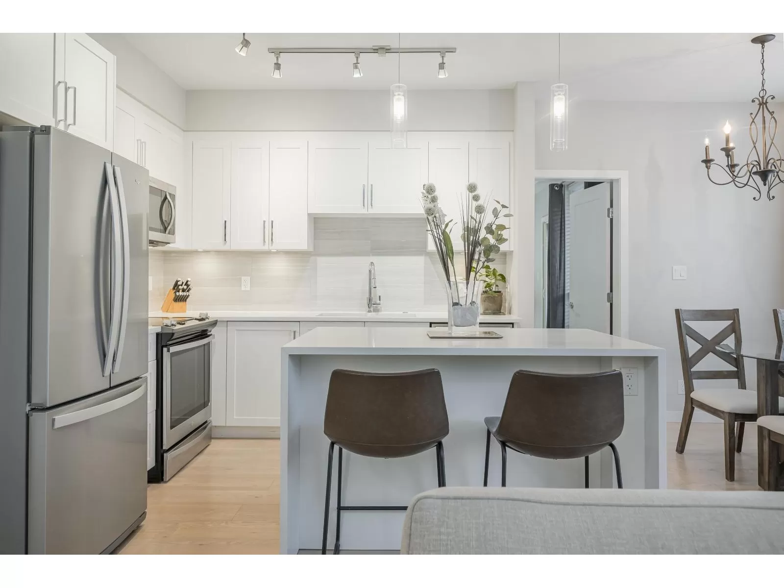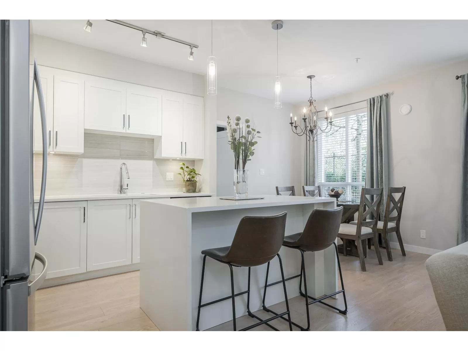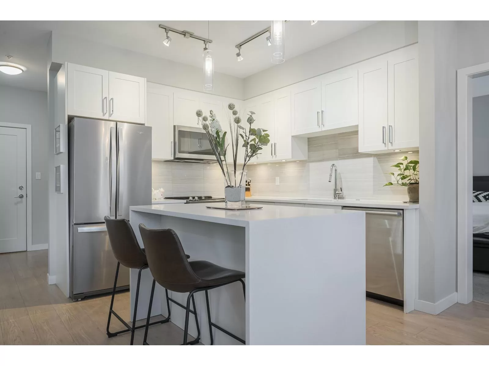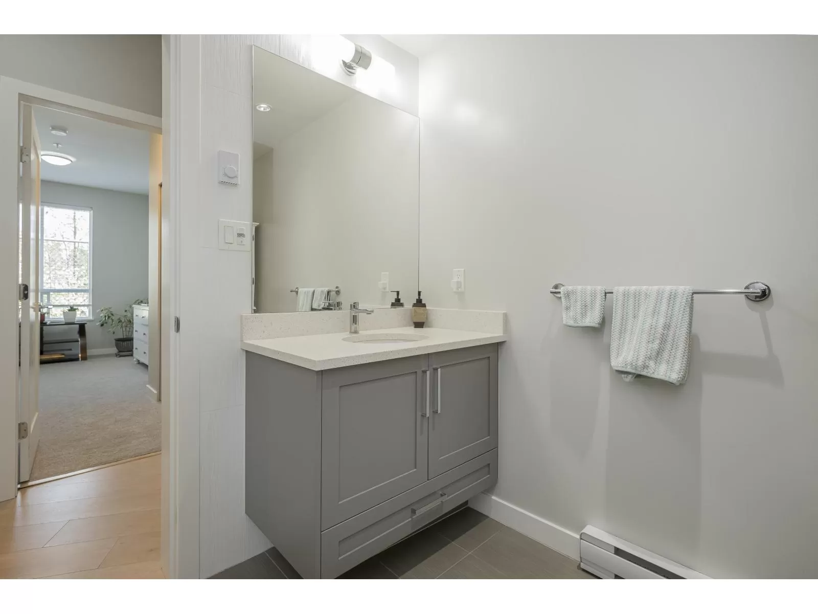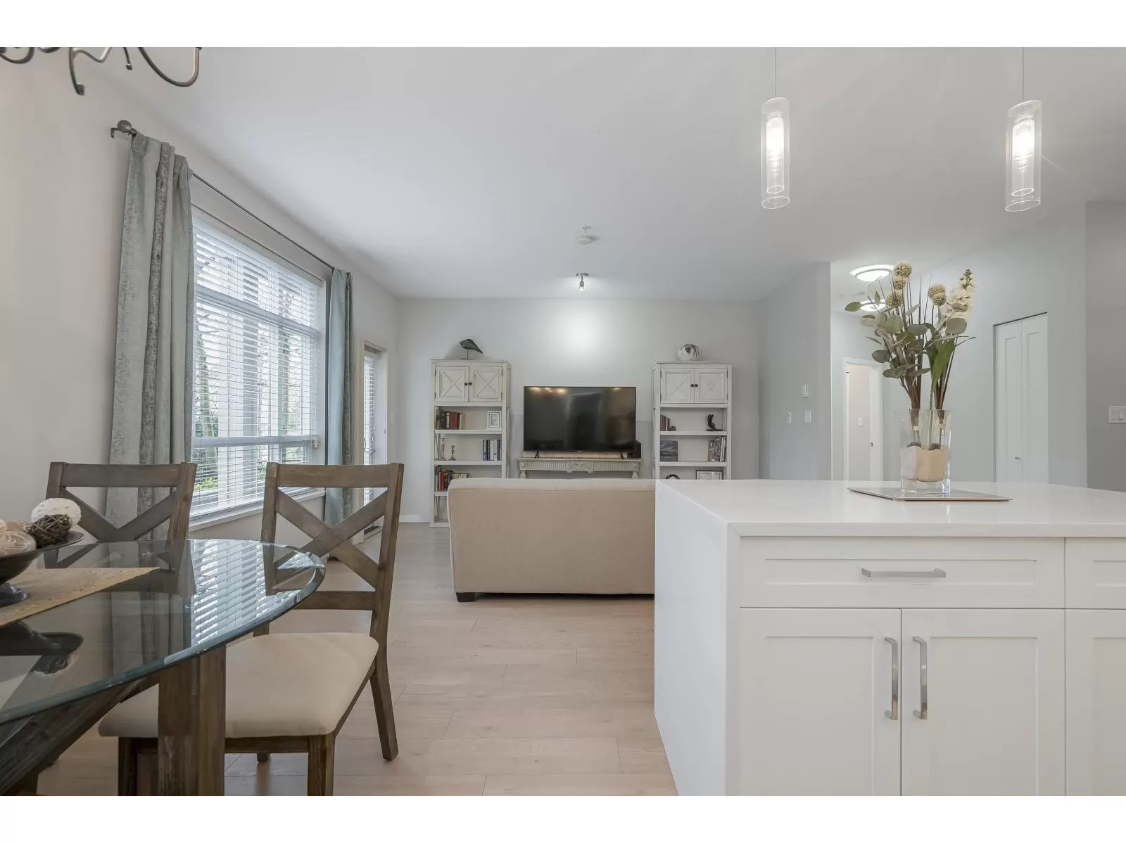 Rare 3 Bedroom ground floor unit in sought-after Elements! This spacious layout features an open-concept kitchen and living area filled with natural light, backing a private 40 ft patio and peaceful greenspace. Freshly painted with a light color scheme, quartz counters in kitchen and baths, and brand-new carpets throughout. Ideal layout with two bedrooms down the hall, separate from the Primary suite with double sinks and a large walk-in closet. Perfect for downsizers or single-level living. Includes in-suite storage, locker, and 2 parking. Walk to shops, dining, and more-quiet, tucked-away location! (id:27476)