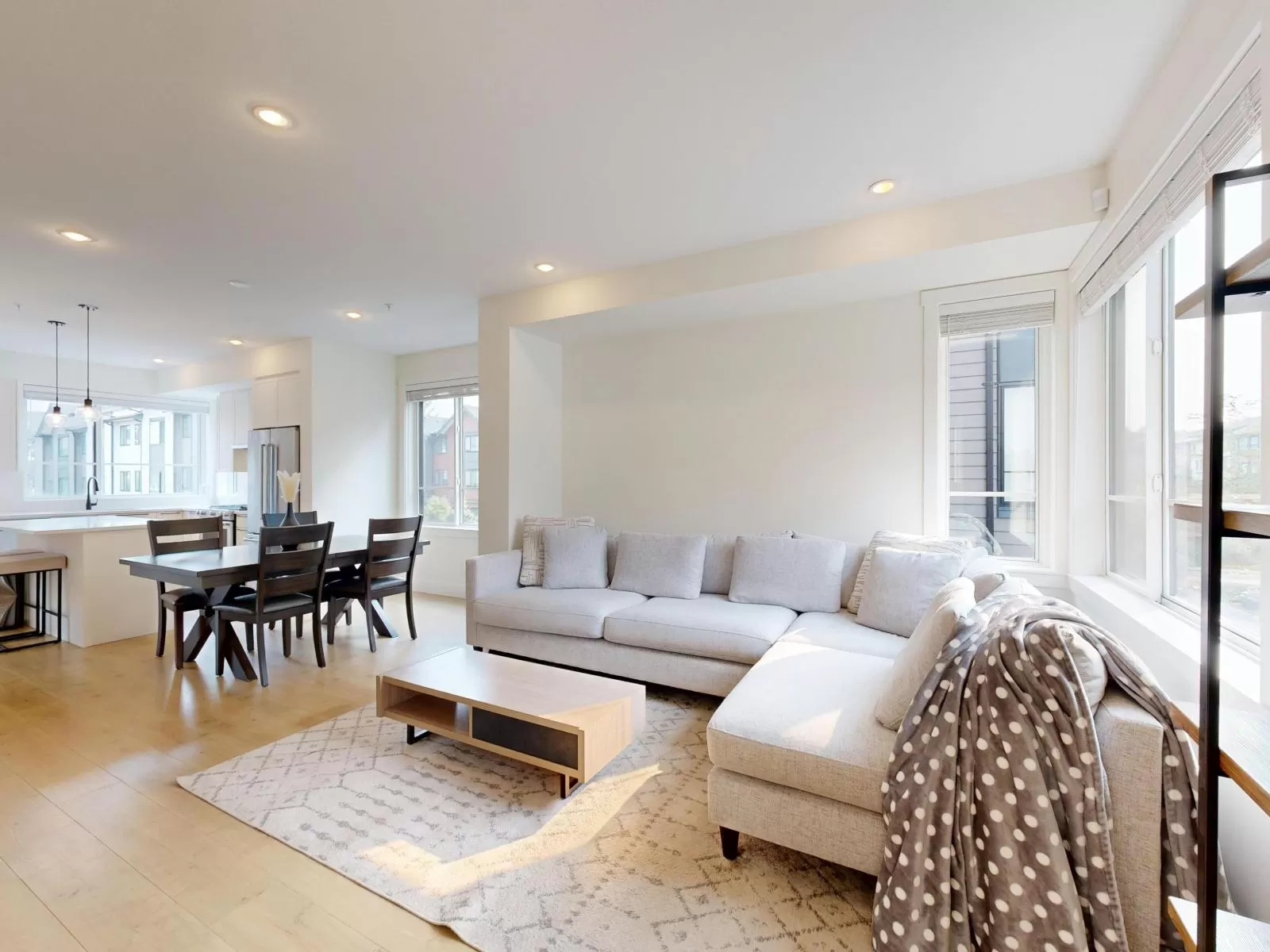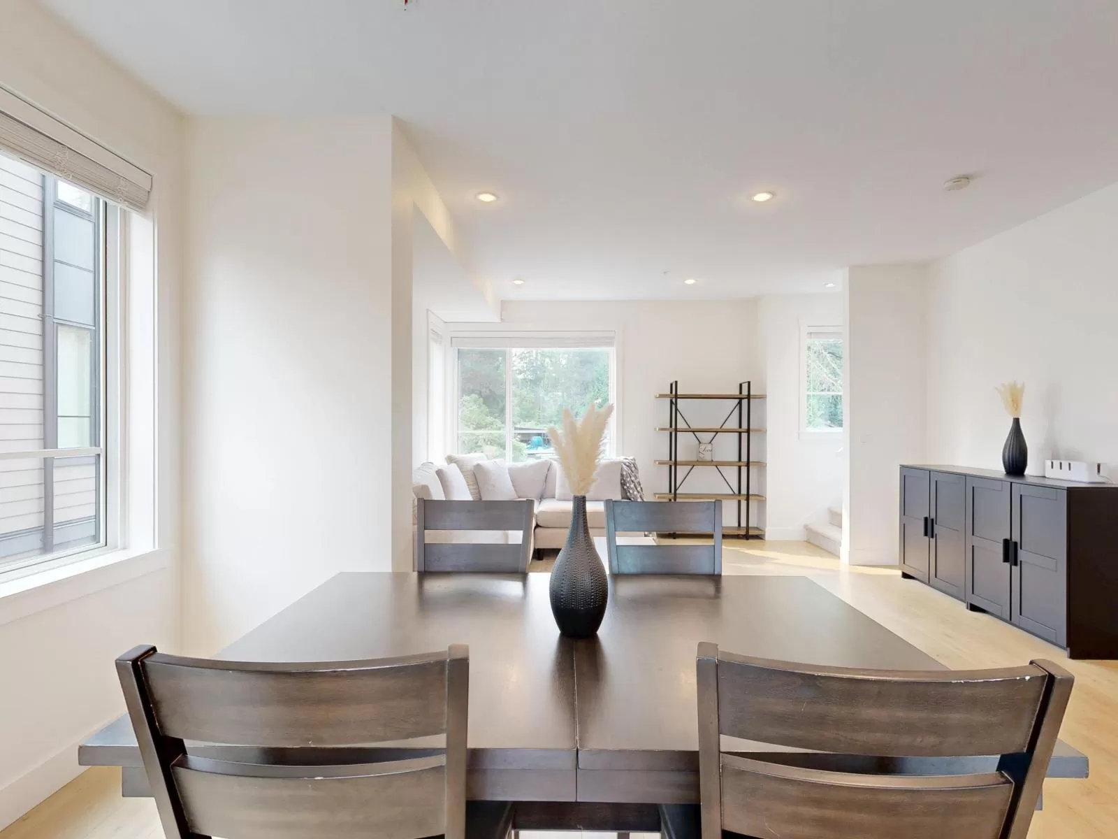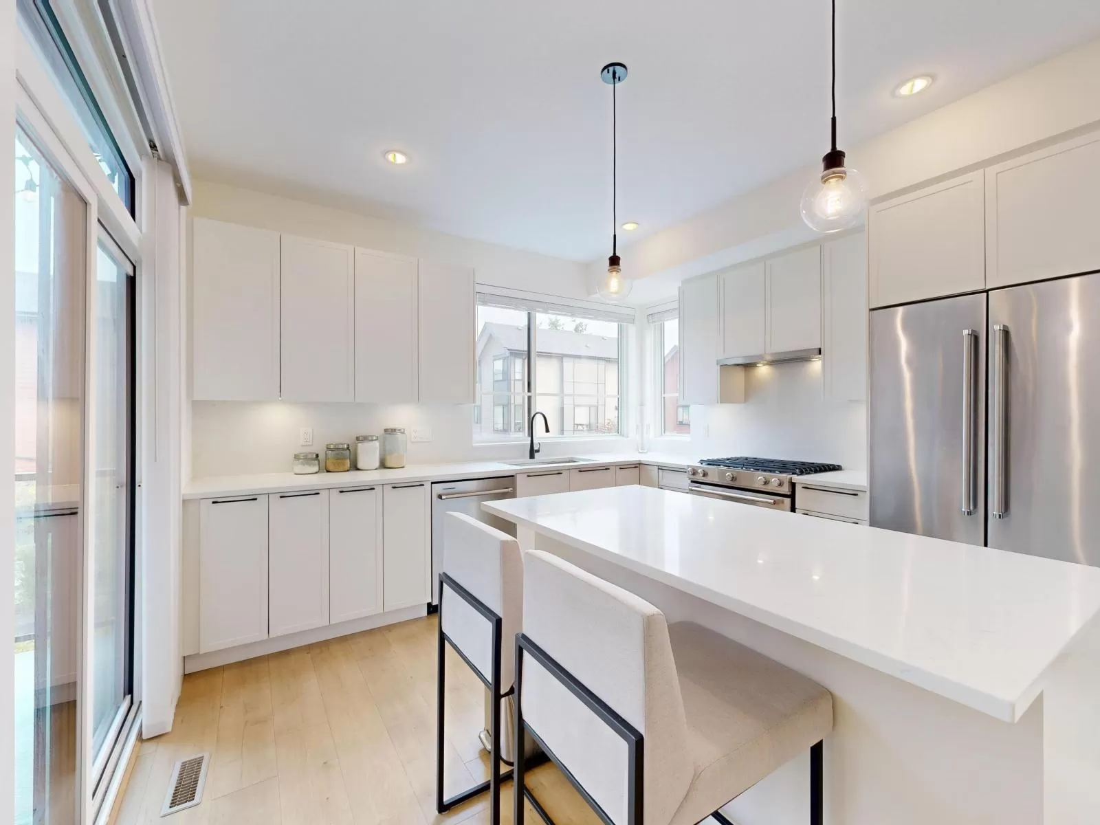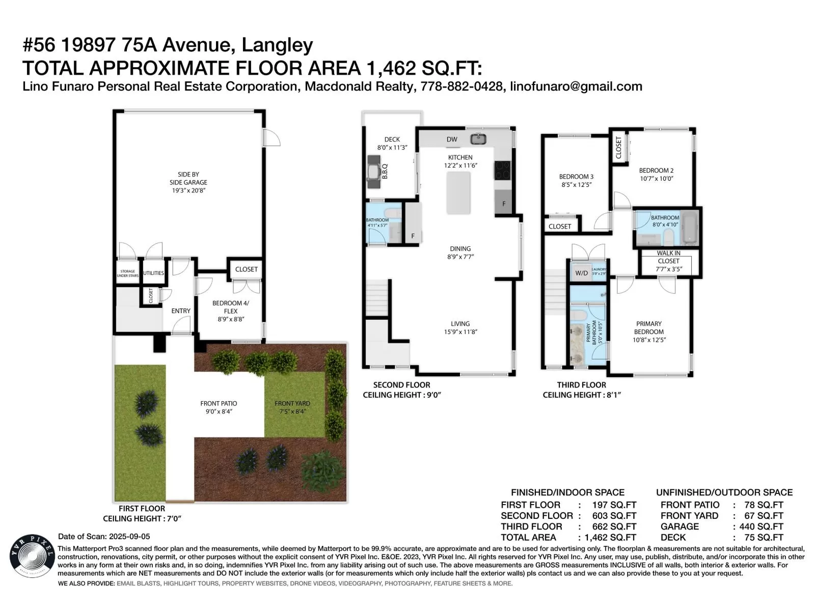 Elevate your lifestyle in this stunning, modern and highly sought-after corner unit townhome nestled in the heart of Langley's vibrant Willoughby Heights. This bright and spacious 4-bed, 3-bath home boasts 1,462 sqft of stylish living with extra windows providing abundant natural light throughout. The open-concept main floor is perfect for entertaining and offers 9ft ceilings, a gourmet kitchen with large island, quartz countertops, premium KitchenAid appliances, and sleek cabinetry. 3 spacious bedrooms on upper level with additional bed/flex room on lower level. Enjoy year-round comfort with forced air heating, A/C, and on-demand hot water. Side-by-side double garage with EV charging and ample storage. A rare opportunity to own a modern, well-appointed corner unit in a prime location! (id:27476)