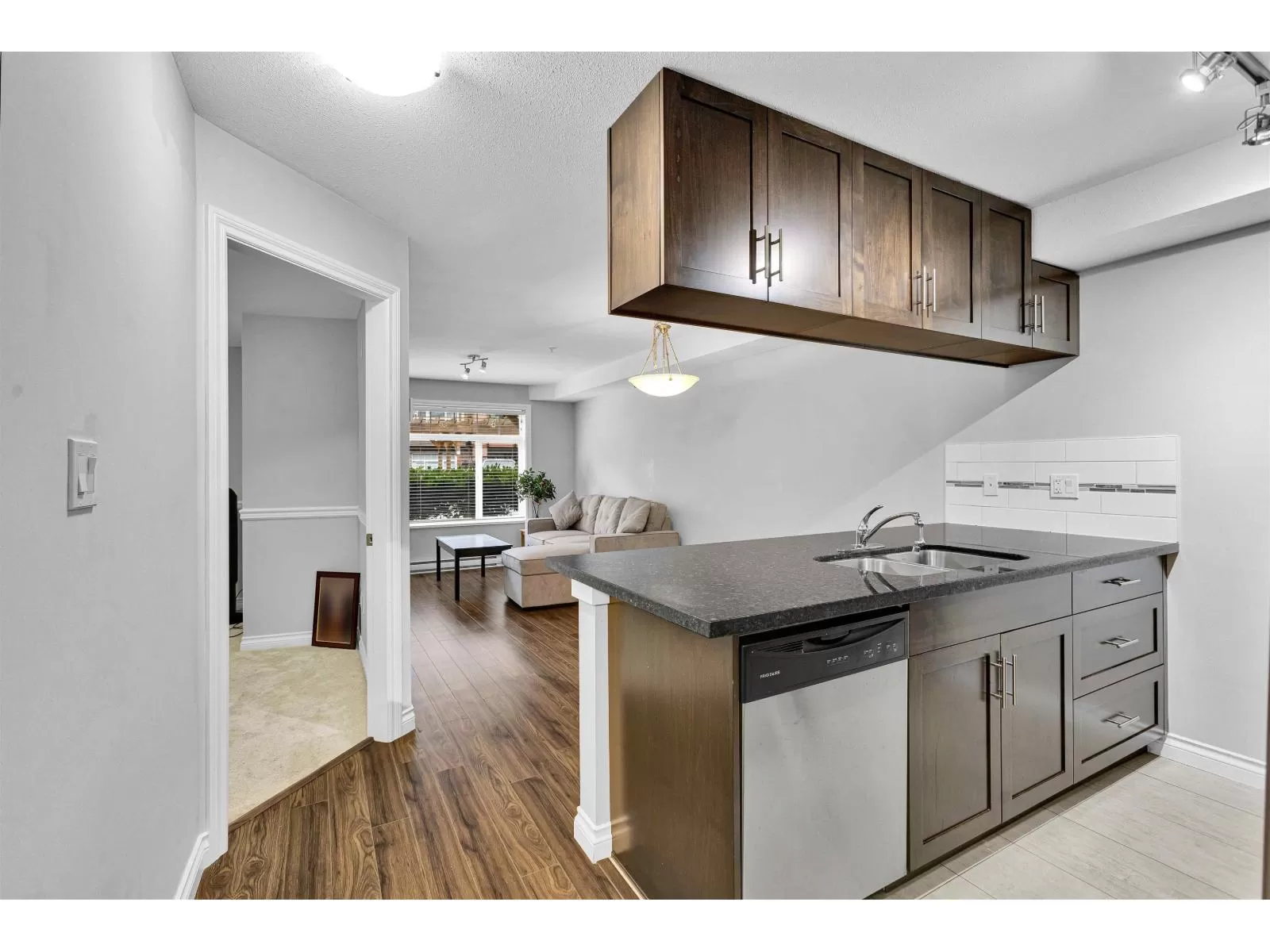Welcome to Paddington Station! This charming 2 bed, 1 bath ground floor unit offers 720 sqft of well-designed living space. Highlights include gourmet granite counters, sleek stainless steel appliances, and convenient in-suite storage. The spacious primary bedroom features air conditioning, dual closets, and a private ensuite. Enjoy a cozy patio, perfect for relaxing or entertaining. The complex offers amenities like a guest suite, library, and is pet & rental-friendly (2 dogs/cats). Includes 2 underground parking stalls and ample visitor parking. Prime location-steps to shops, dining, parks, schools, transit, and the upcoming SkyTrain! Don't miss excellent opportunity for investors, first-time buyers, or downsizers looking for a move-in ready home in this high-demand area! (id:27476)