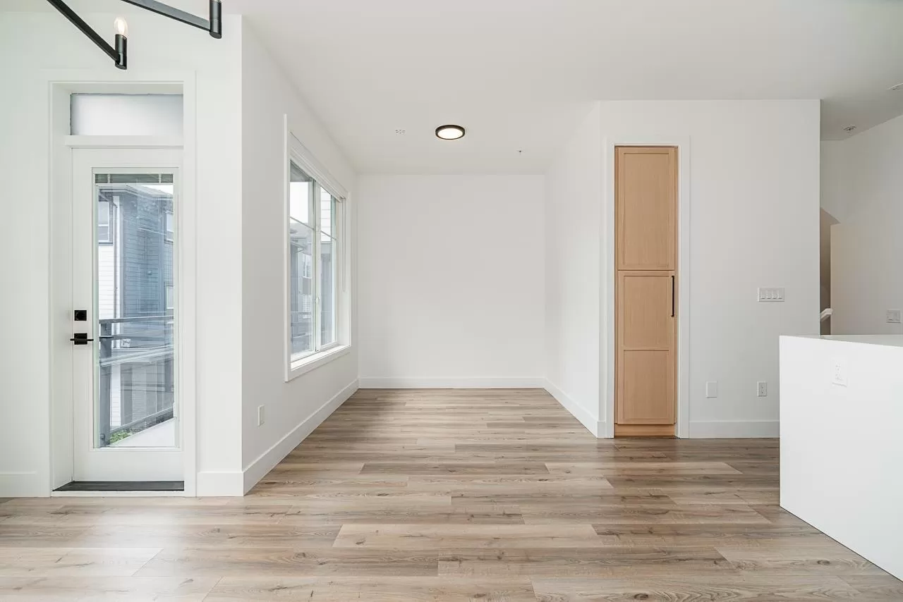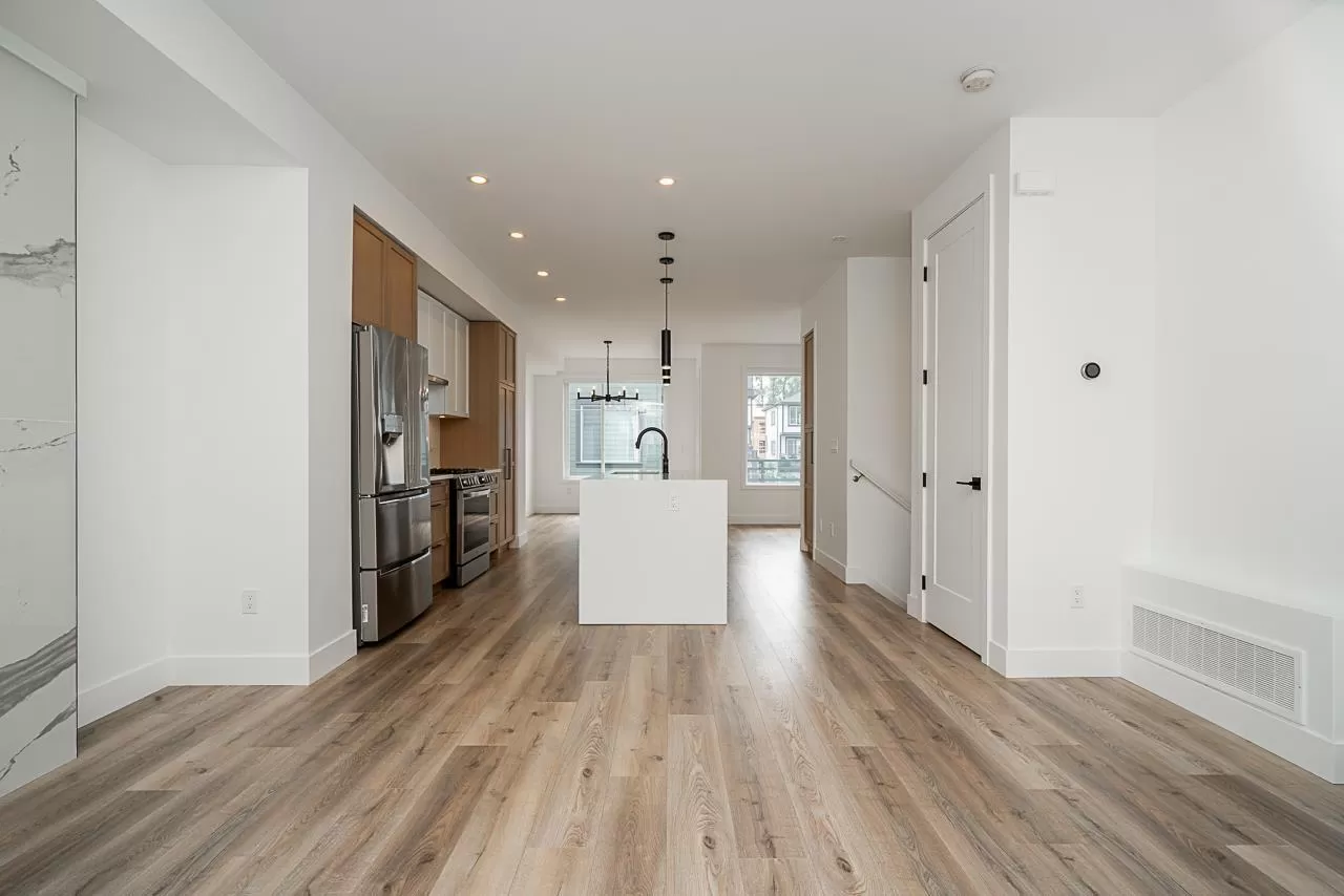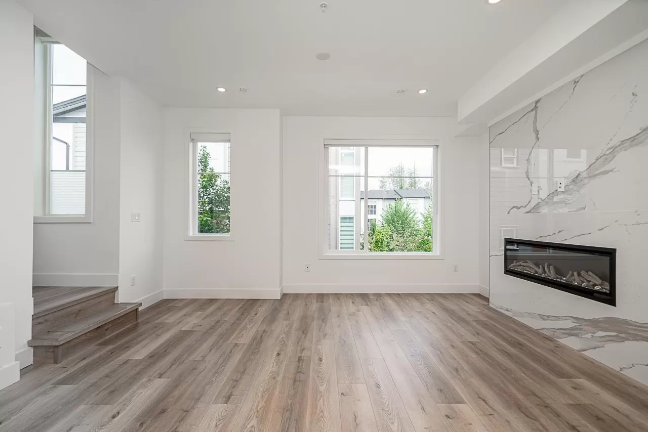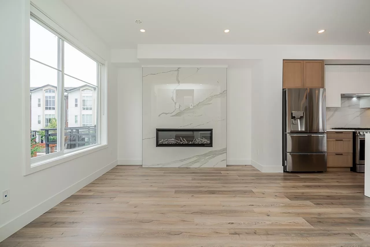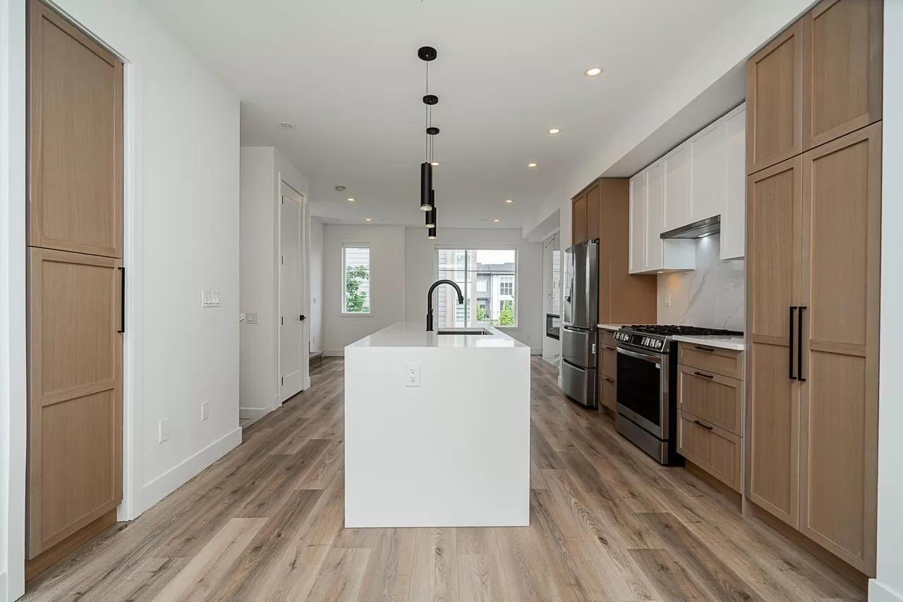 Welcome to Crofton! This 1,670 sq. ft. END-UNIT townhome offers 4 bedrooms and 4 bathrooms in one of the community's best locations-QUIET, BRIGHT, with excellent sightlines and set back from main roads. 9-foot ceiling on all levels and laminate flooring throughout. The chef's kitchen boasts a waterfall island, quartz counters, shaker cabinets and premium LG appliances-ideal for cooking and entertaining. Enjoy AIR CONDITIONING on all three levels, spa-inspired bathrooms, and a cozy fireplace. The double garage is EV-READY. The private, fenced, turfed yard provides plenty of space for family gatherings or relaxing outdoors. Walking distance to top schools, shopping, transit, and all the amenities Willoughby has to offer. Still under 2-5-10 year warranty and no GST; very low maintenance fee. (id:27476)