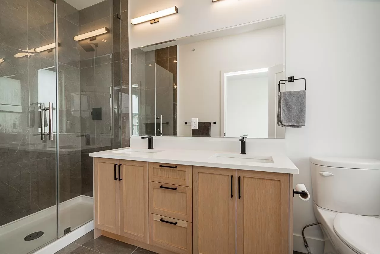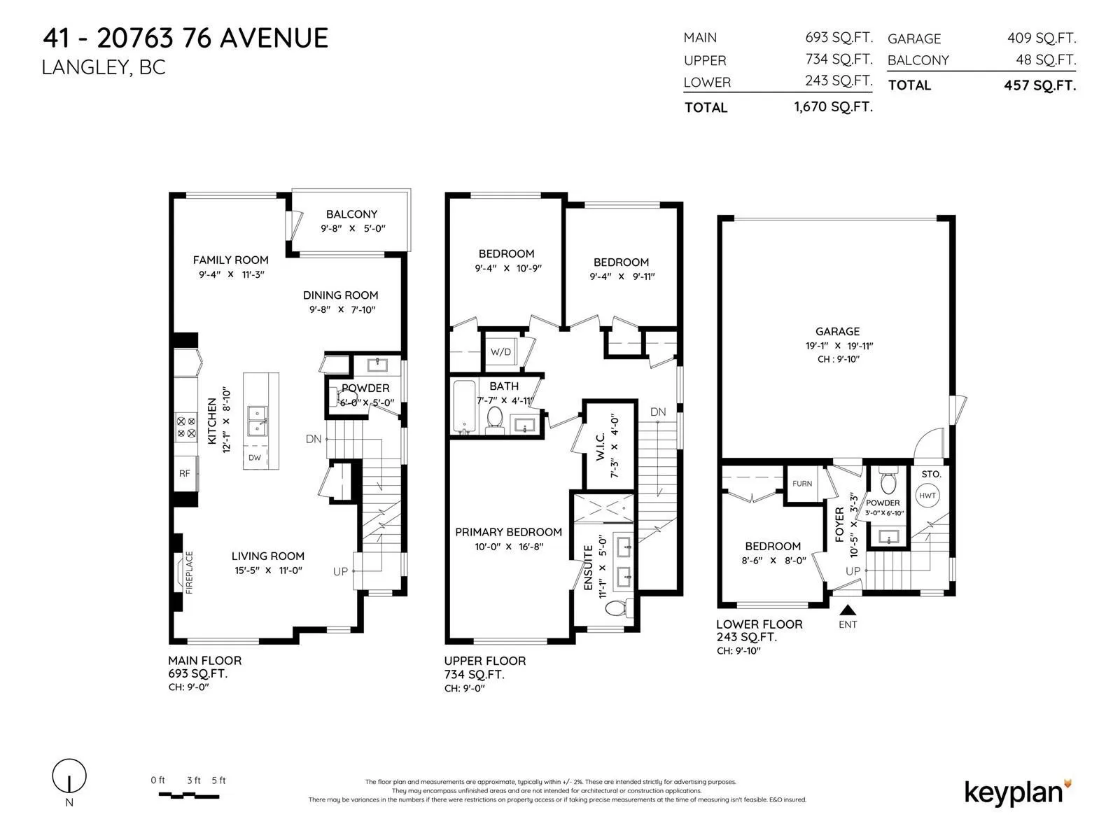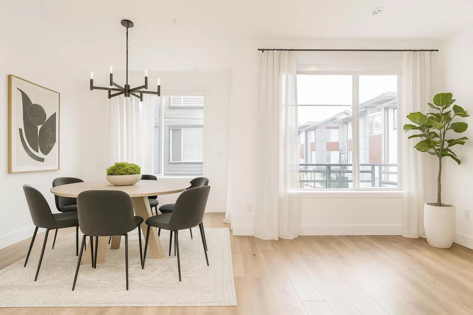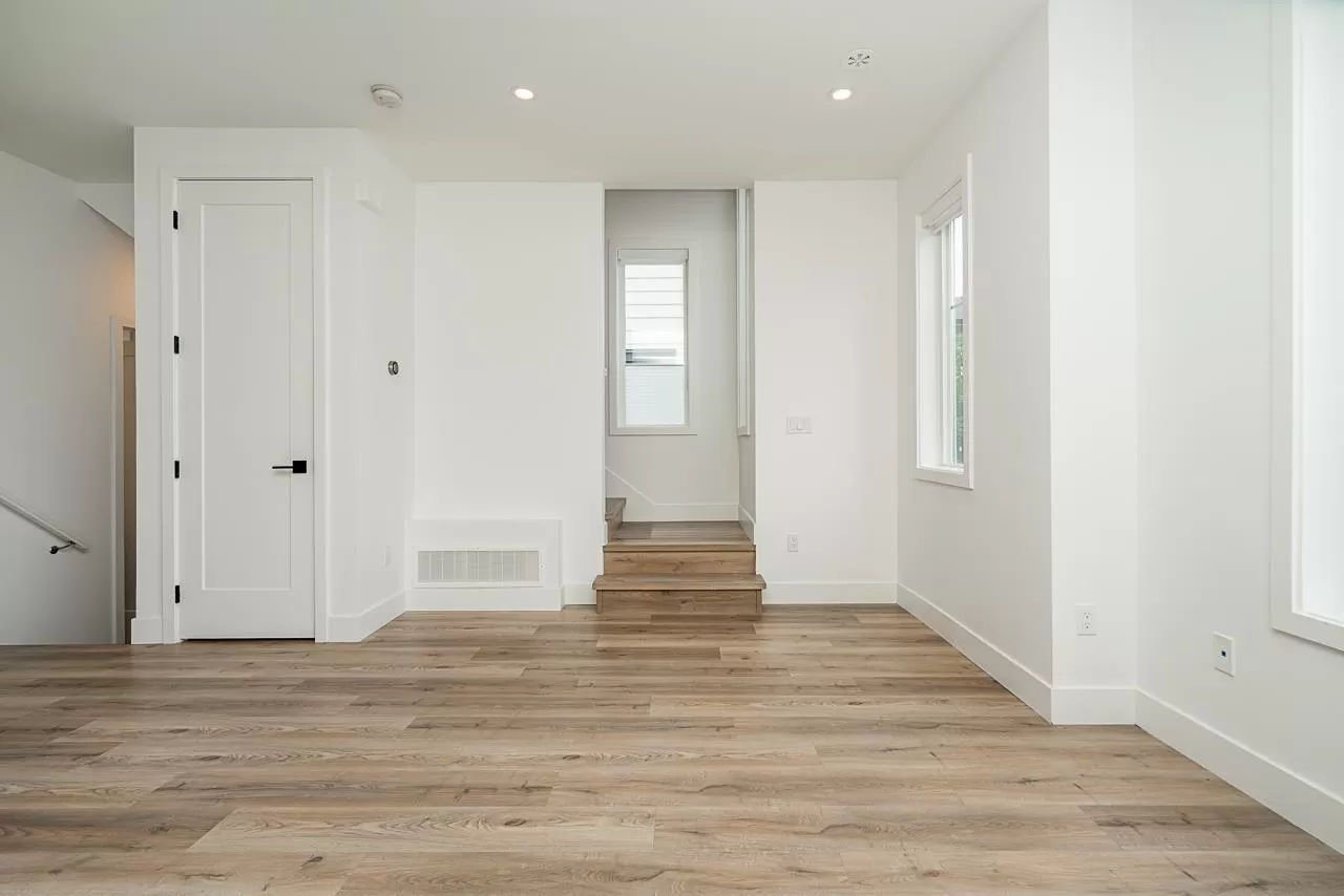 Welcome to Crofton! This 1,670 sq. ft. END-UNIT townhome offers 4 bedrooms and 4 bathrooms in one of the community's best locations-QUIET, BRIGHT, with excellent sightlines and set back from main roads. 9-foot ceiling on all levels and laminate flooring throughout. The chef's kitchen boasts a waterfall island, quartz counters, shaker cabinets and premium LG appliances-ideal for cooking and entertaining. Enjoy AIR CONDITIONING on all three levels, spa-inspired bathrooms, and a cozy fireplace. The double garage is EV-READY. The private, fenced, turfed yard provides plenty of space for family gatherings or relaxing outdoors. Walking distance to top schools, shopping, transit, and all the amenities Willoughby has to offer. Still under 2-5-10 year warranty and no GST; very low maintenance fee. (id:27476)