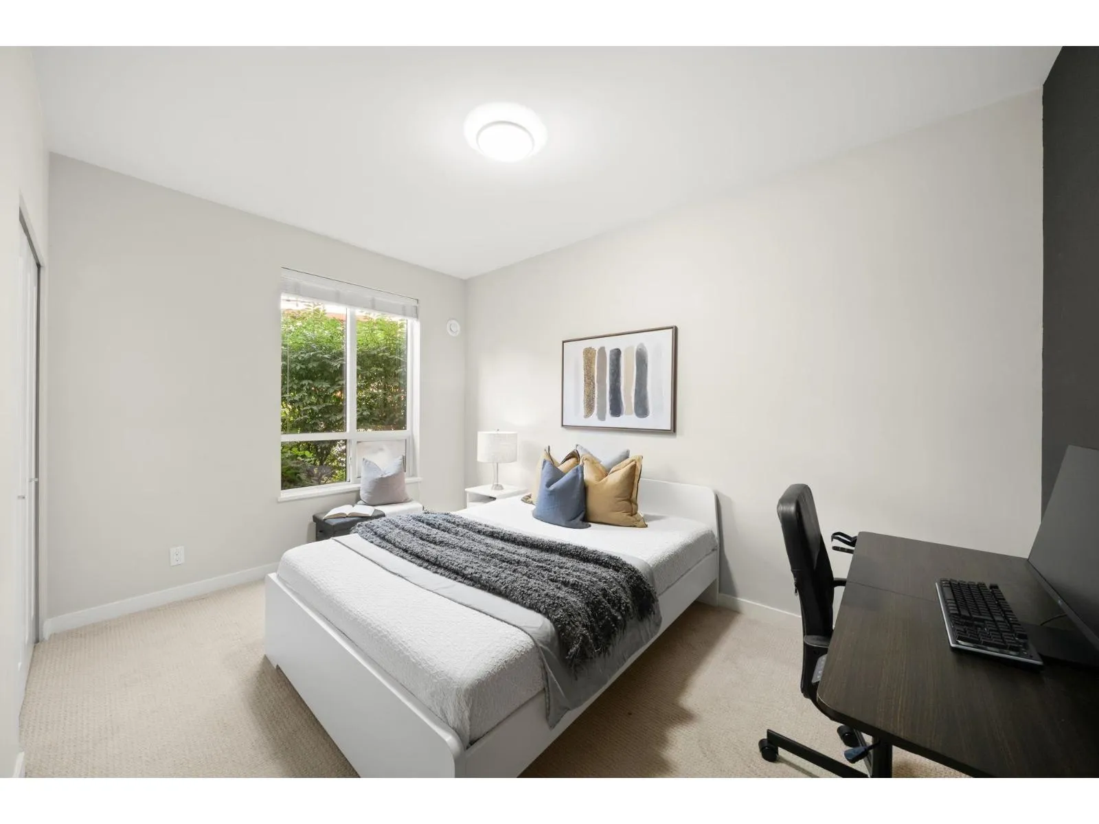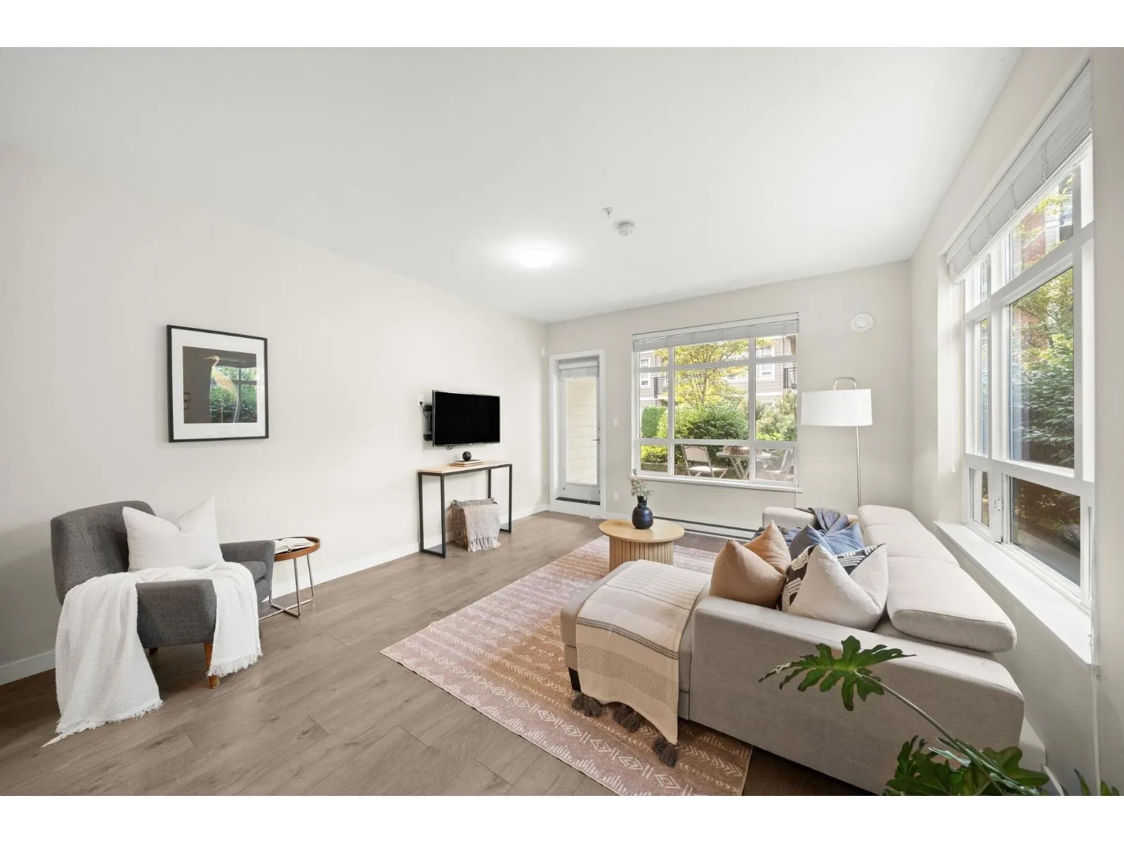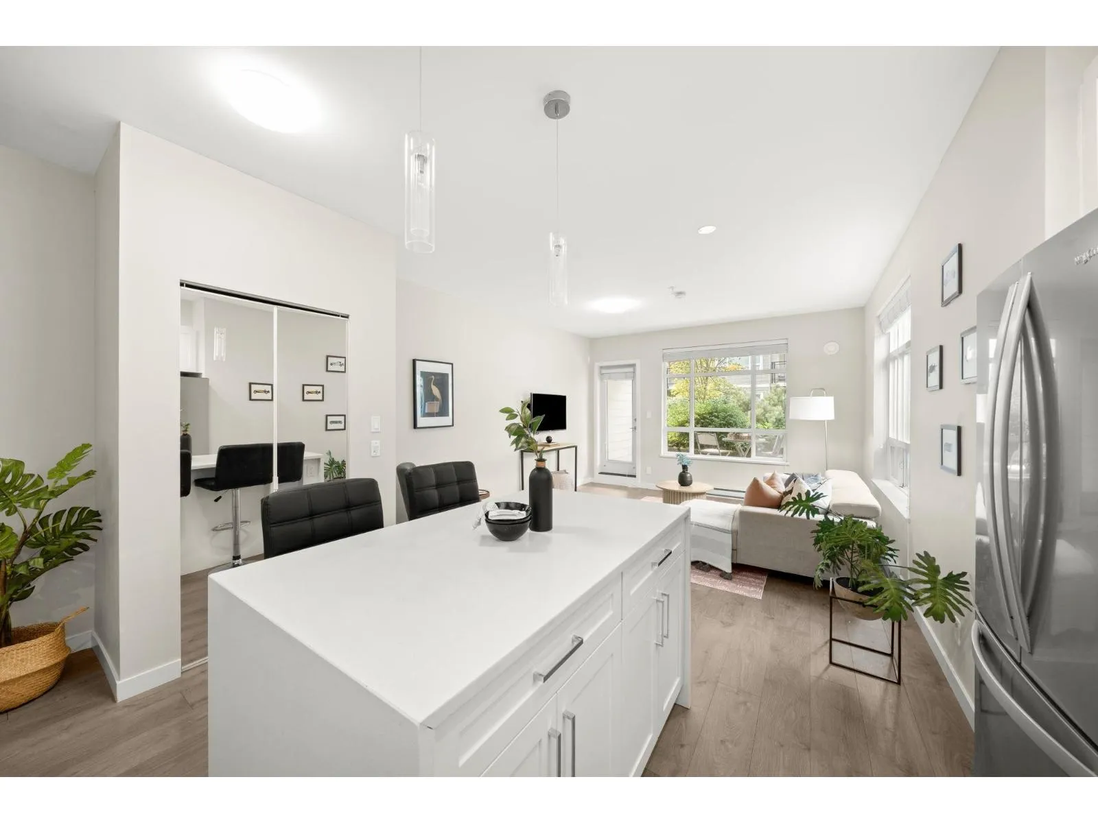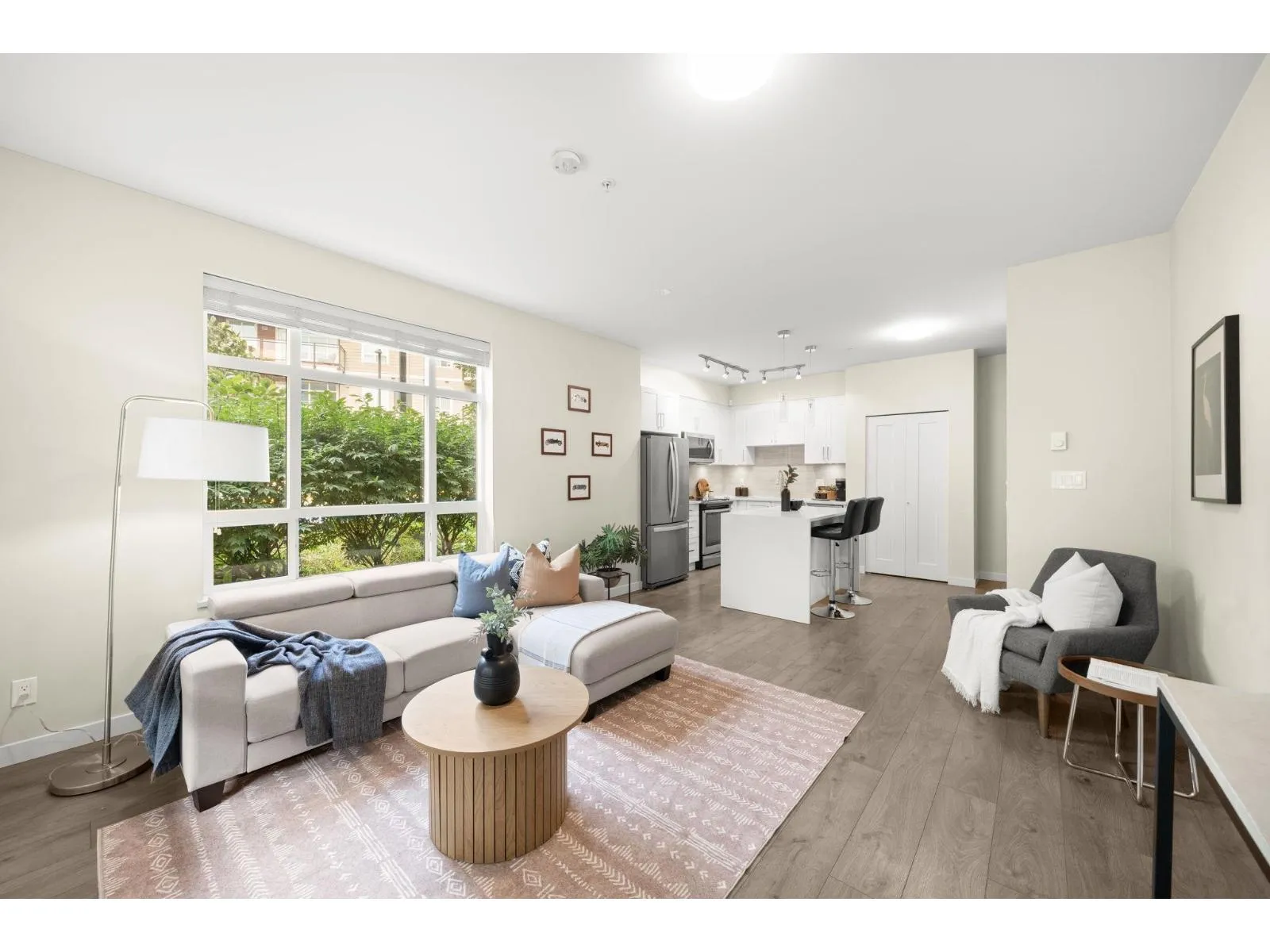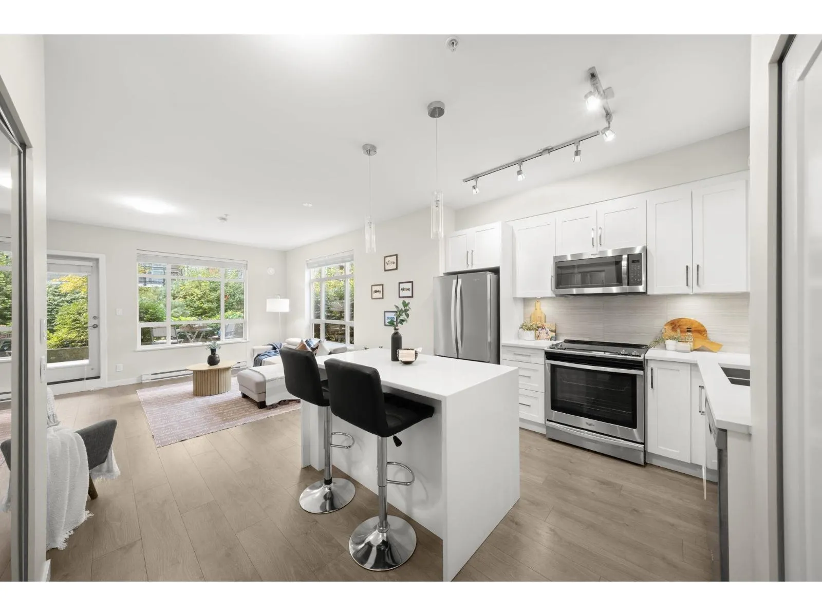 This ground-floor corner unit at Elements offers a rare combination of privacy and convenience. Contemporary finishes flow throughout, and the oversized covered patio is perfect for morning coffee or year-round entertaining. The home includes two parking stalls and provides access to exceptional amenities, including a gym, lounge, party room, billiards, media room, and children's play area. Ideally situated within walking distance to shops and dining, with easy access to major commuter routes. (id:27476)