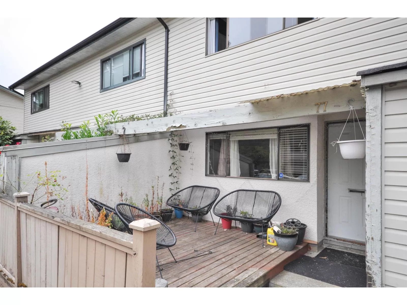 FIRST TIME BUYERS! Welcome to Portage Estates in Langley City, which is nestled beside Portage Park - a family friendly park with basketball courts, picnic tables, walking trails, playgrounds and more providing a perfect setting for your first starter home. This 2-storey, 3-bedroom townhome features 1,200 sf including a cozy living room and spacious eat-in kitchen leading to a PRIVATE fenced backyard with trees behind. Upstairs has 3 good-sized rooms and a large storage space. The complex includes an outdoor swimming pool and clubhouse and is walking distance to Douglas Park Community School, shopping, transit, recreation, library + more. Pets and rentals ALLOWED. 1 open parking stall and lots of street parking. (id:27476)