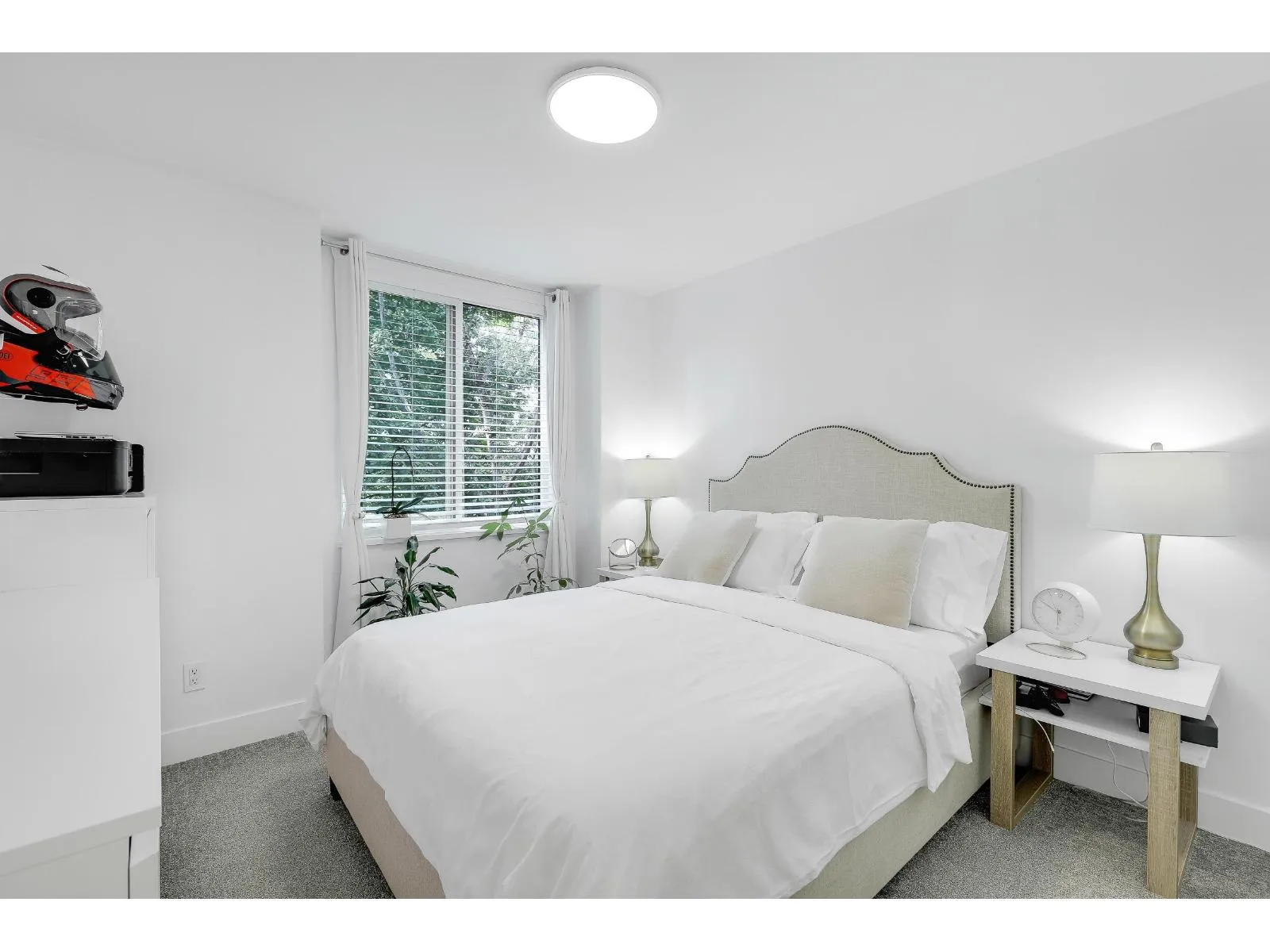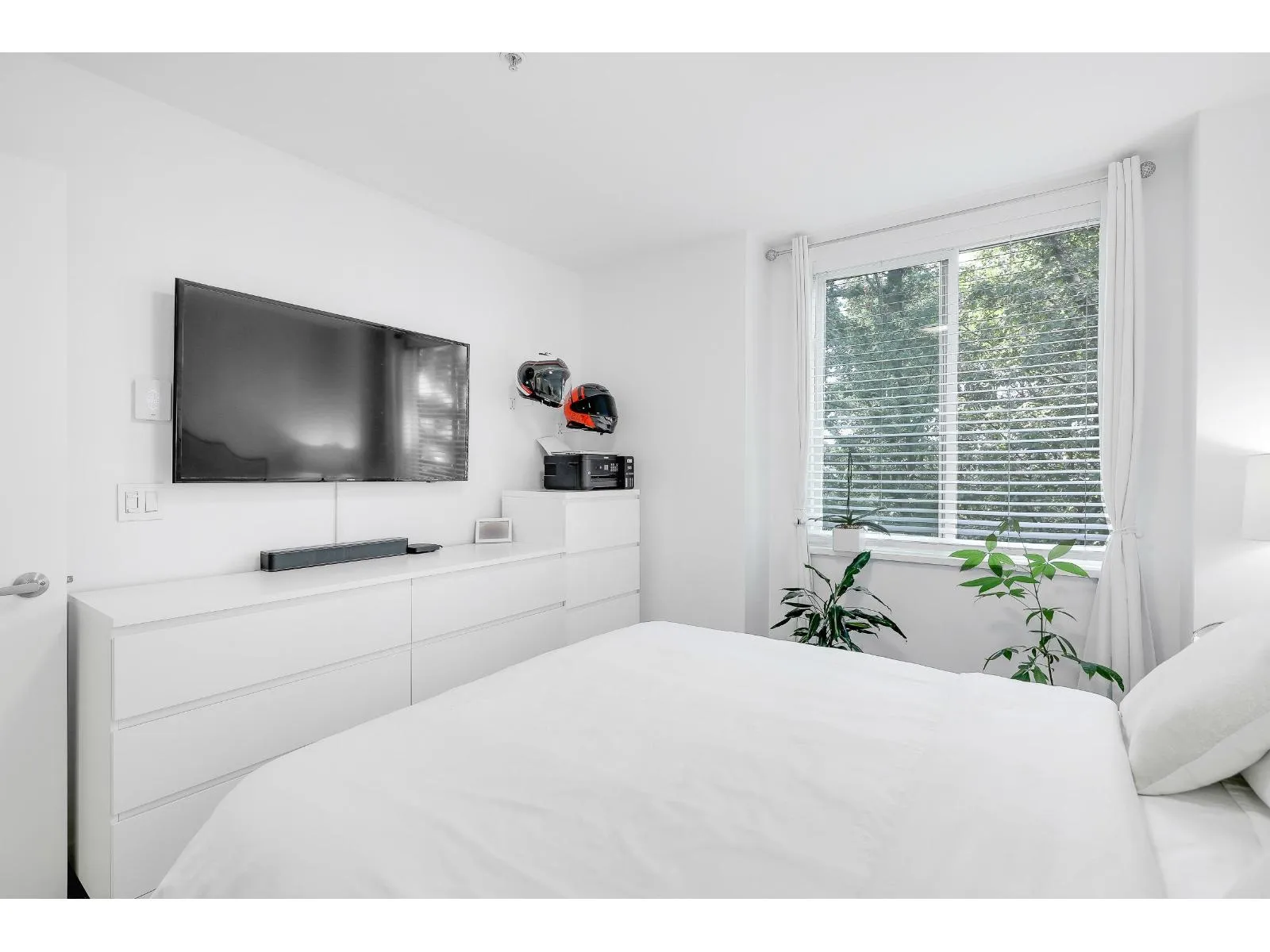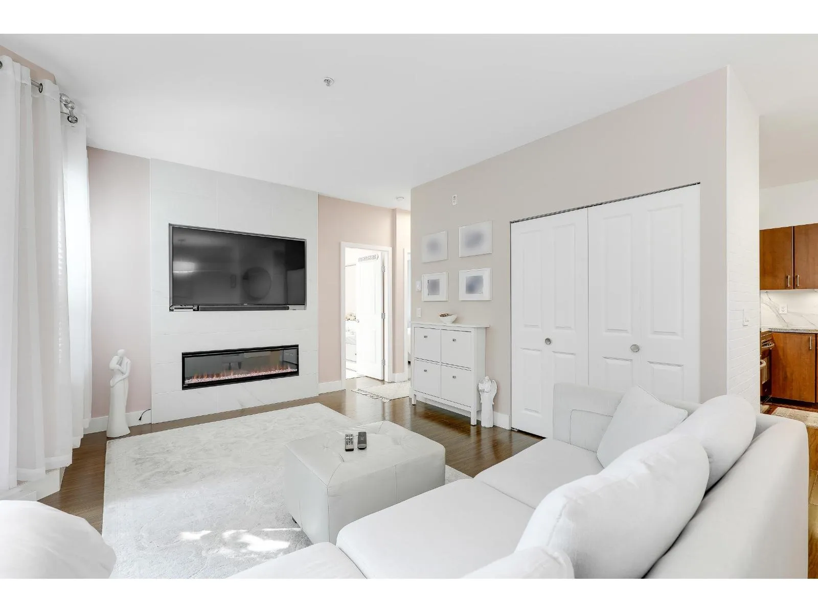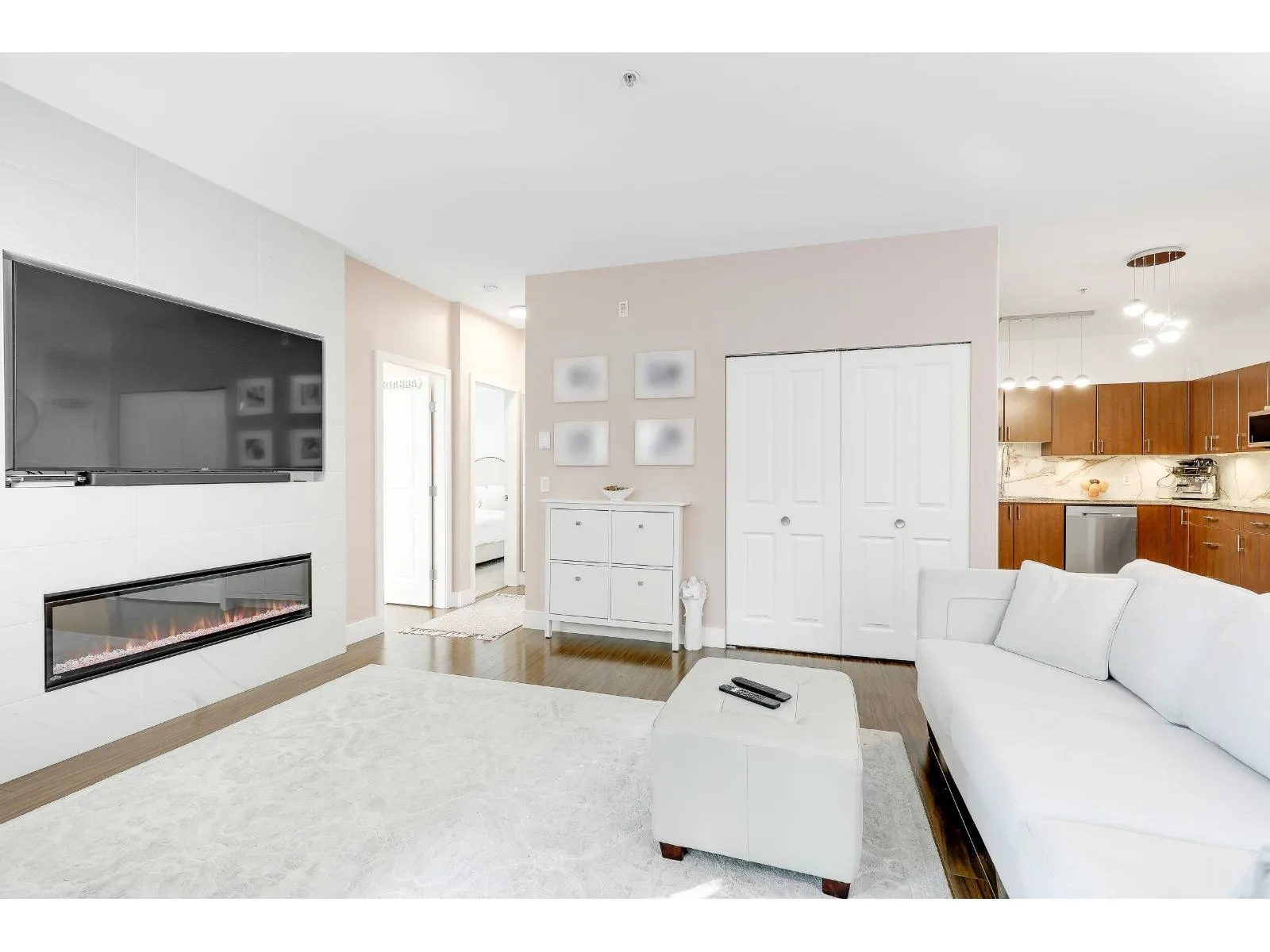 GREAT HOME, INCREDIBLE PRICE! Modern, contemporary one bedroom plus den that is used as a 2nd bdrm. 9' ceiling, open floor plan with a European flair, a gourmet kitchen and spa like bath with top of the line finishings. Beautiful LVG with accent wall, electric fireplace & TV, fresh paint, blinds and light fixtures. Dining with wainscoting, KITCHEN with new backsplash, granite countertops and brand new S/s appliances. Laminate flooring, & closet organizers. 'Mysa' smart thermostats in all rooms. New LG washer & dryer & so much more to list. South facing, situated beside a beautiful greenbelt, close to transit, restaurants & recreation center. Only 5 min away from 'Willowbrook Mall'. A must see! It will not last. Pets and rentals are welcomed. Don't look any further this is it! I will be waiting! (id:27476)