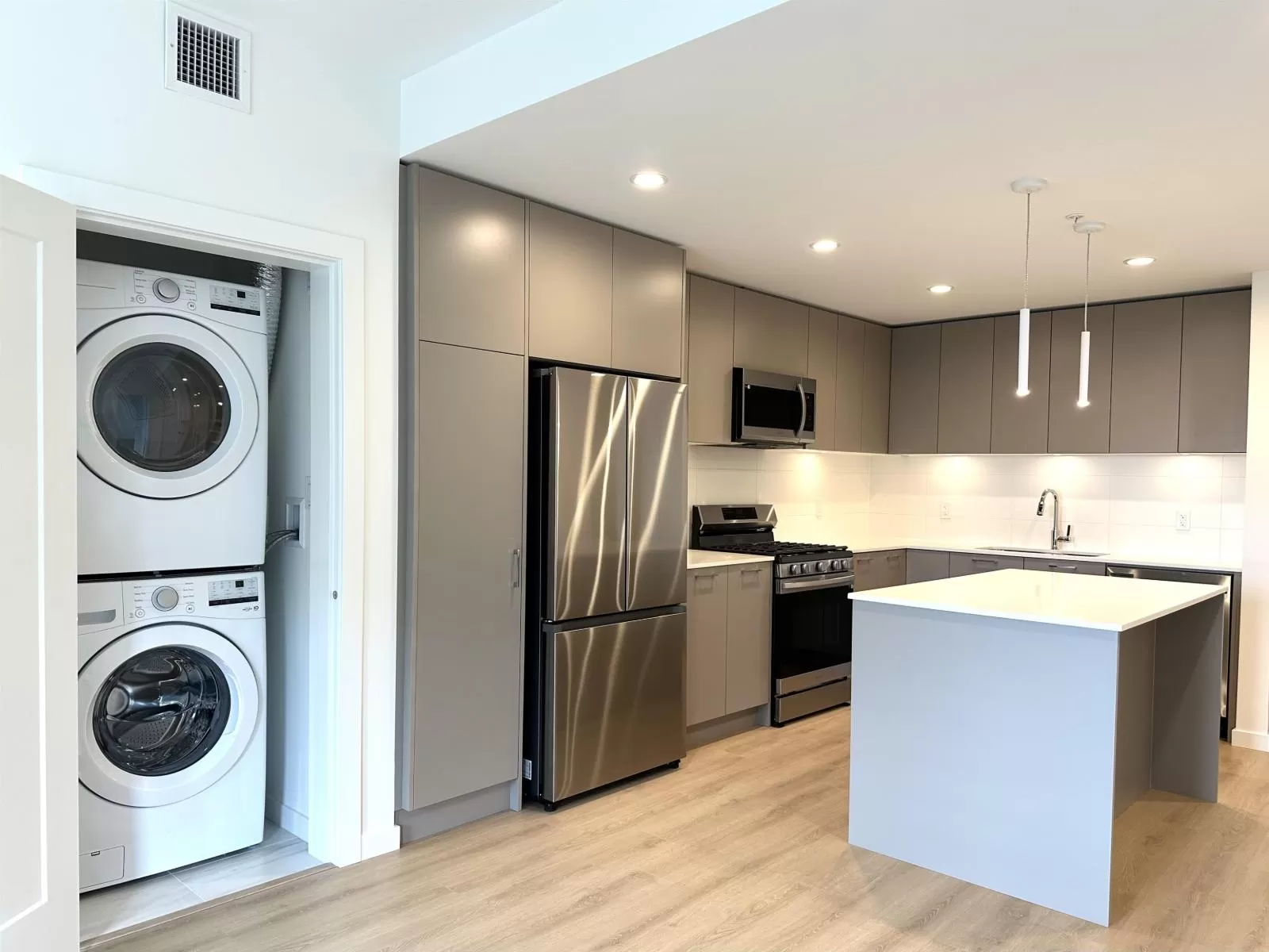 Latimer Village - this 2 bed / 2 bath plan faces west into the inner courtyard and features bedrooms on either side, each with their own walk in closets, oversized L-shaped kitchen with island, stainless steel appliances including gas range and built in pantry. Includes 2 parking and 1 storage. Walkable to all amenities and transit and move in ready! (id:27476)