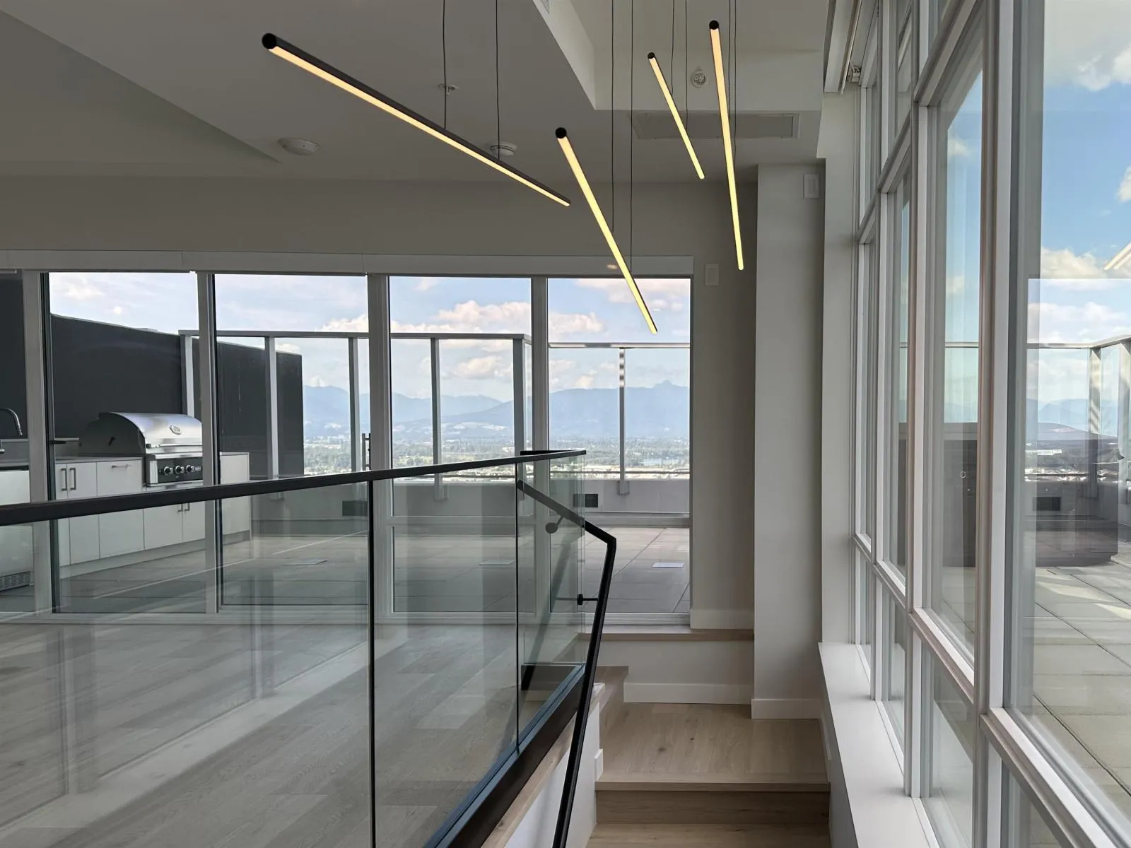 The Penthouses at the Towers! Langley's ONLY high rises. Breathtaking mountain views from this NE facing 34th level, 2 storey penthouse. 2 bedrooms plus flex (could be a 3rd bedroom), 3 full and 1 half baths. Incredible finishes including Fulgor Milano professional kitchen appliances, Jenn-Air built in beverage system, a wine fridge, pot filler and oversized island looking out to the incredible view. The floor lit, glass railed stairwell leads you upstairs to your open loft with a full bathroom and sliding glass doors to the incredible outdoor living area with kitchen, hot tub and ample outdoor entertaining space. Viewing by appointment only Saturday through Wednesday. (id:27476)