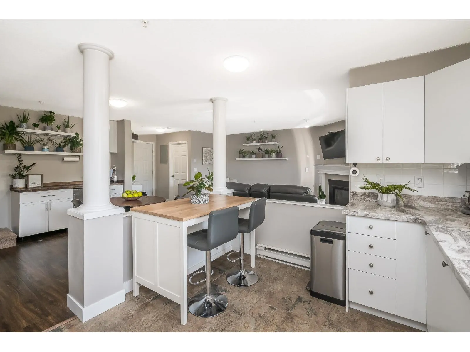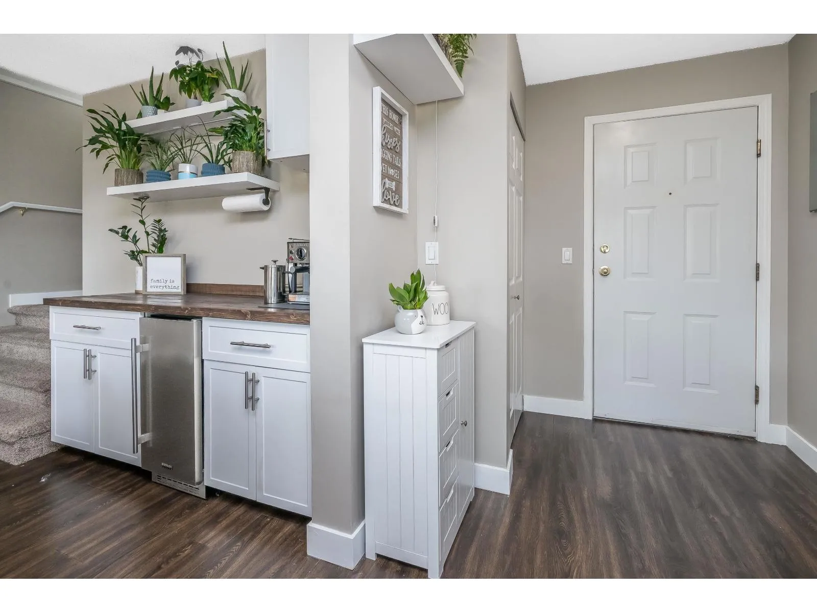 Welcome to this beautifully updated 2-bdrm, 2-bath, two storey apartment that feels like a townhouse! Ideally situated in the heart of Langley City, close to shops, parks, schools & transit, this home is perfect for those seeking style, space & convenience. The main floor features an updated 2 piece powder room, updated hardwood & tile flooring, a large kitchen boasting newer counters, a newly added full size pantry & coffee bar w/wine fridge. Just off the main living area, step out onto the deck - ideal for morning coffee, summer BBQs, or enjoying the fresh air in a outdoor setting. Other features include an updated F/P w/mantle. The upper floor offers 2 generous sized bdrms w/updated main bathroom, laundry & extra storage. Also incl. 2 parking & storage locker. O/H Sat Nov 15 1 - 3pm (id:27476)