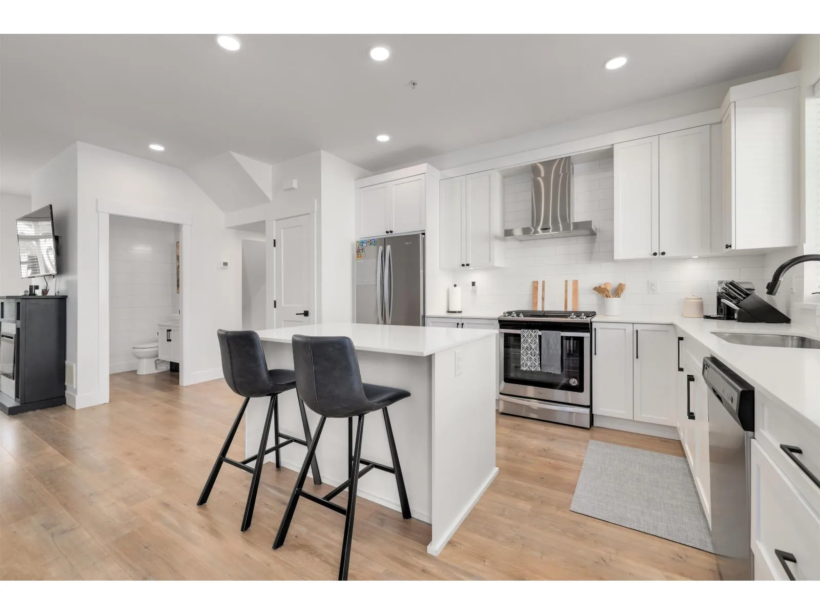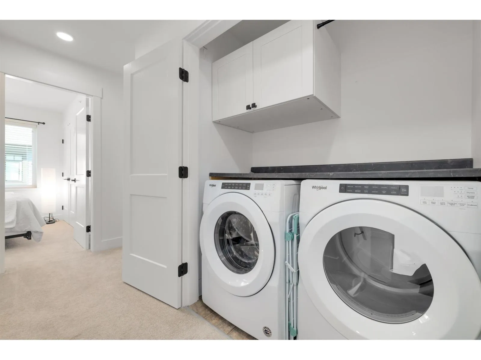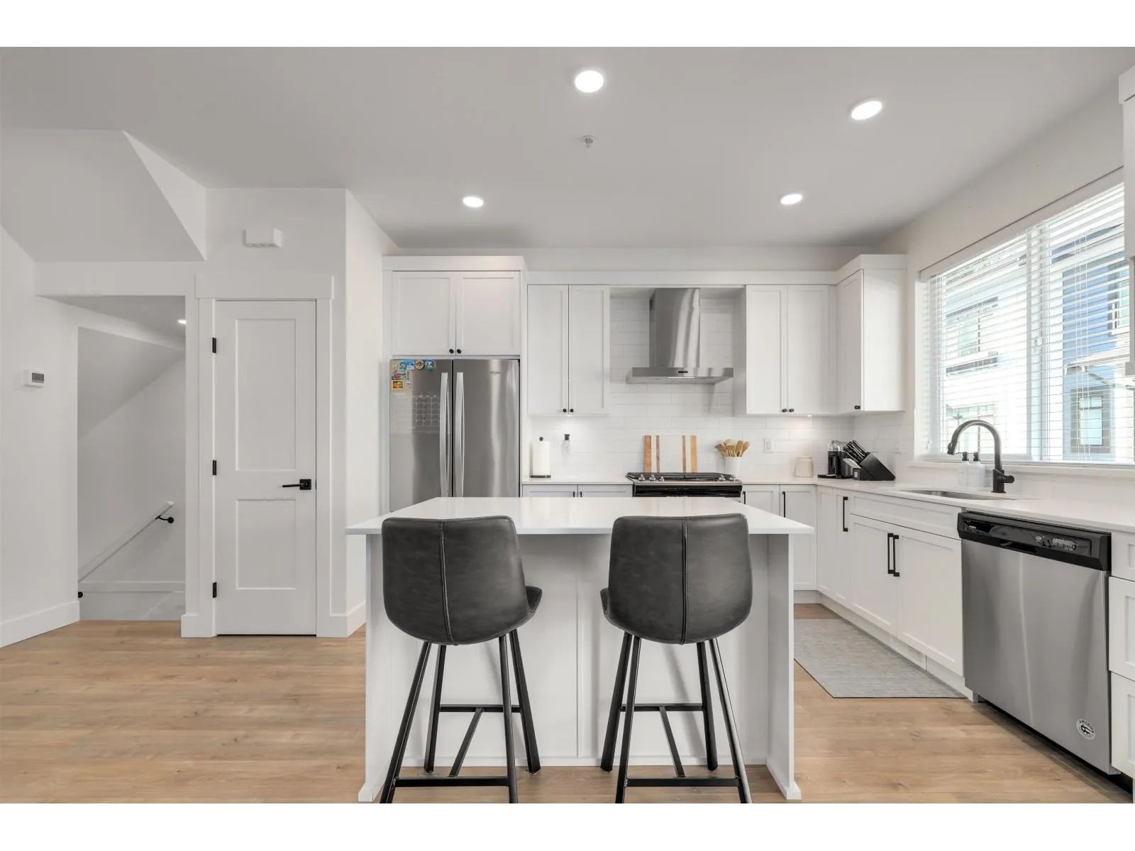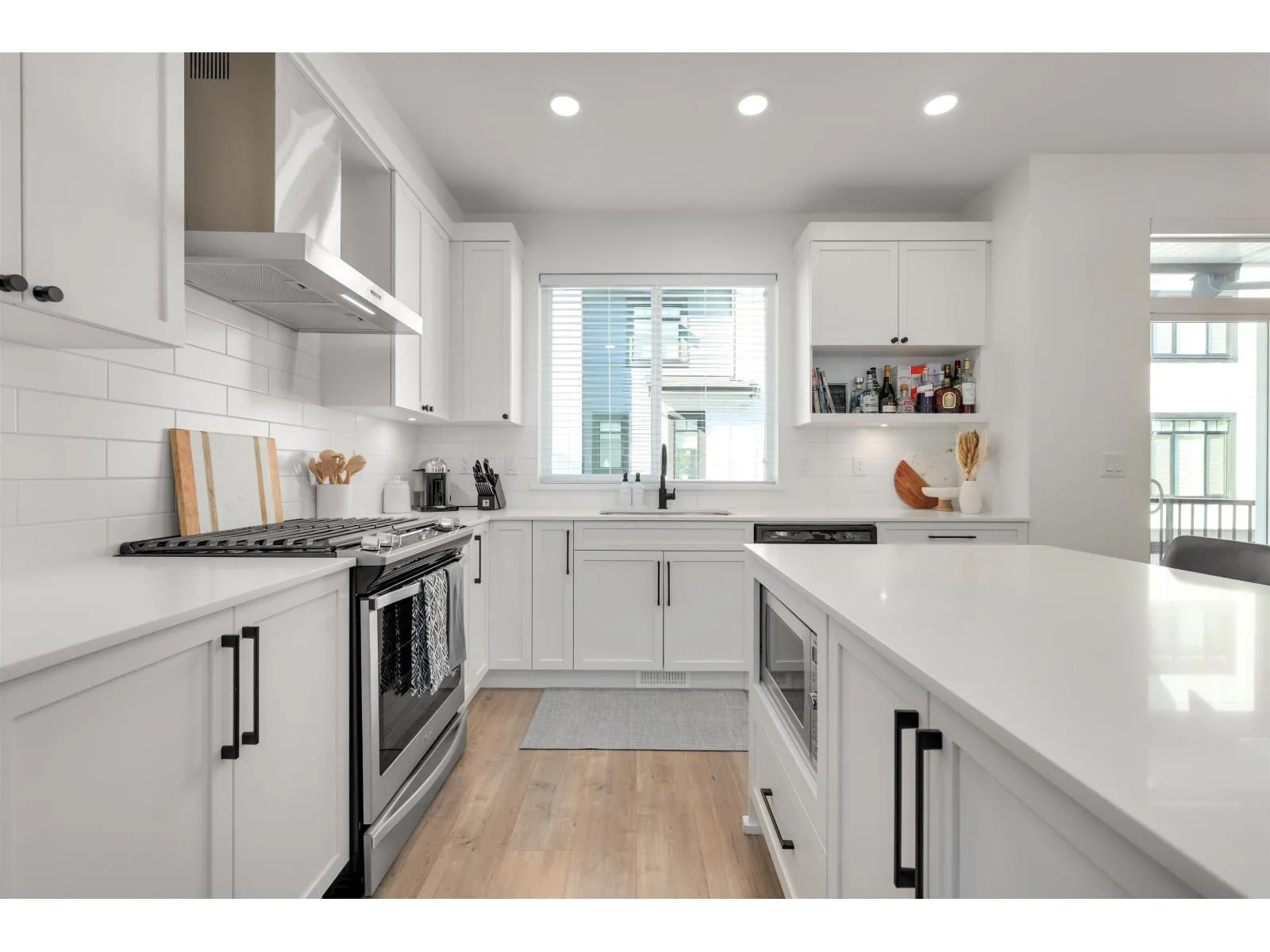 Welcome to the perfect family home at Wilder Crossing, thoughtfully built by award-winning Infinity Properties! This warm and inviting 3 bed, 2.5 bath & den townhome is nestled in the heart of family-friendly Willoughby Heights. Designed for comfort, it features wide-plank laminate floors, an open kitchen with Quartz counters, Whirlpool S/S appliances, A/C on every level, forced-air heating, EV charger, and an oversized garage with epoxy floor that even fits a truck. Step outside to your fenced patio/yard with gas BBQ hookup, then retreat upstairs to the spacious primary with vaulted ceilings and walk-in closet. All within walking distance to R.C. Garnett Elementary, parks, trails, and playgrounds. BONUS family extras: laundry countertop, garage shelving, and irrigation for the gardens. (id:27476)