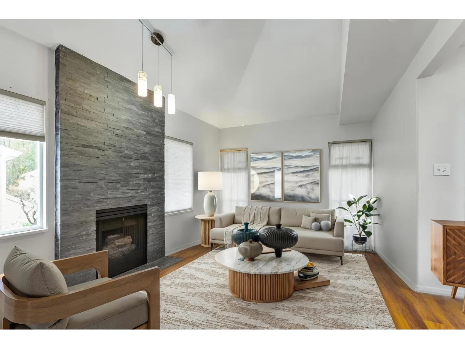 Bright & Beautifully Updated Townhouse in Walnut Grove! Corner-unit townhouse, ideally situated in the heart of Walnut Grove. With 3-bedroom potential, this home features a fully renovated kitchen and bathrooms, new cooktop and stove, German-engineered luxury laminate flooring, and radiant in-floor heating throughout. Enjoy the airy, open-concept layout with vaulted ceilings, an elegant fireplace feature wall, and abundant natural light from oversized windows. Step outside to Include a single-car garage + extra parking spot. Located in a family-friendly neighborhood with excellent schools nearby: Gordon Greenwood Elementary and Walnut Grove Secondary. Just steps from Walnut Grove Community Park and trails, shopping, and transit. (id:27476)