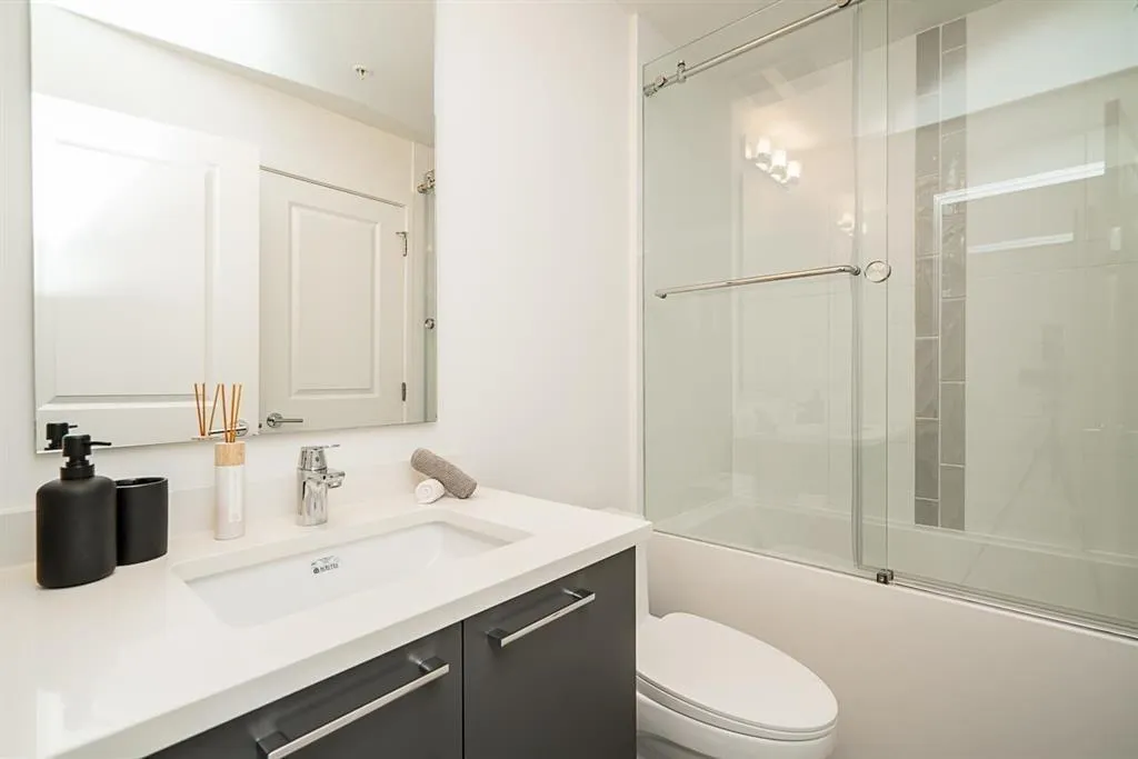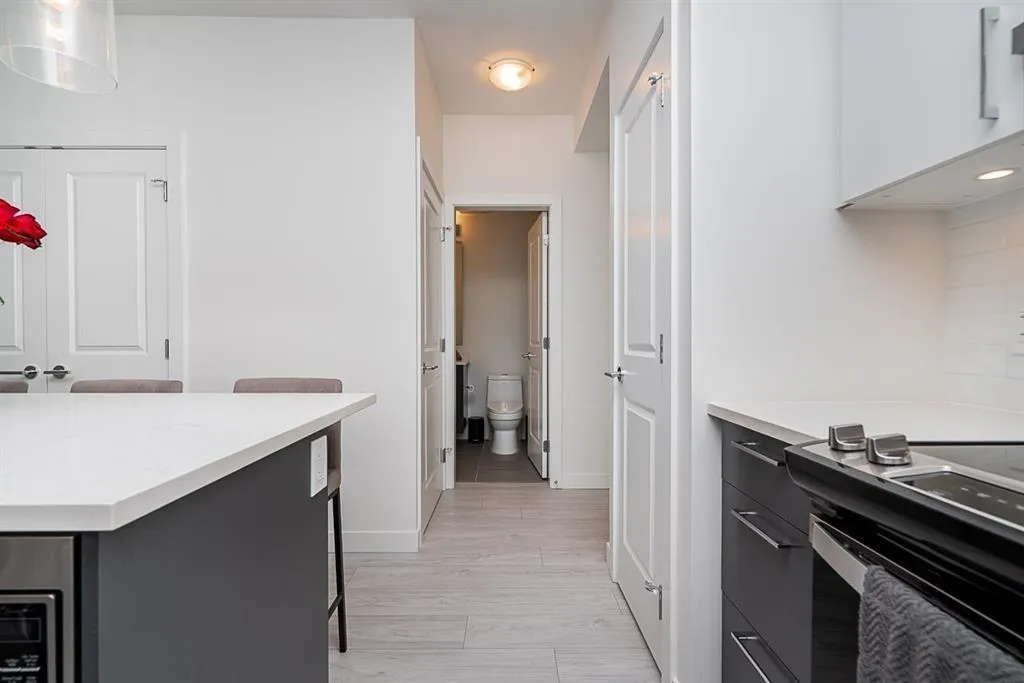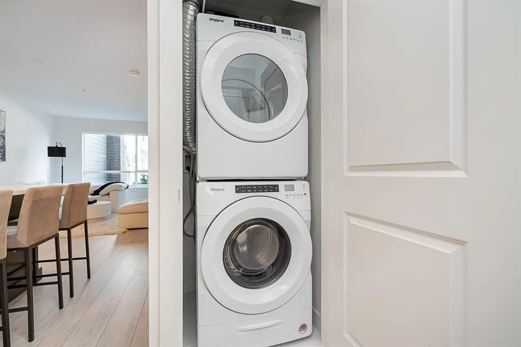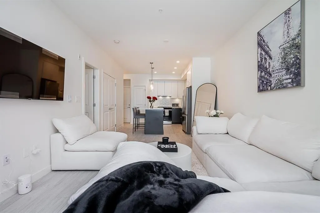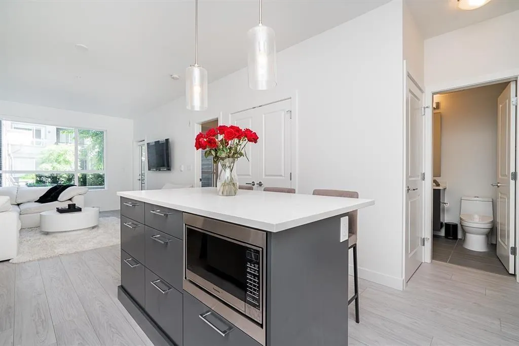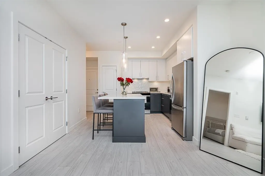 Welcome to Alexander Square by award-winning RDG Development. This Plan E layout offers a smart and functional 595 sq ft 1-bedroom design, complete with a walk-through closet and cheater ensuite. The kitchen is beautifully finished with quartz countertops and a full Whirlpool stainless steel appliance package-perfect for cooking at home. You'll love the building's amenities, including a fitness room, kids' playground, outdoor courtyard with cozy fire pits, a stylish entertainment lounge, and a rooftop patio with BBQs for those sunny afternoons. Located in the growing Willoughby neighborhood, you're just steps from shopping, restaurants, transit, and quick access to the highway. Comes with 1 parking stall and 1 storage locker. Motivated Seller (id:27476)