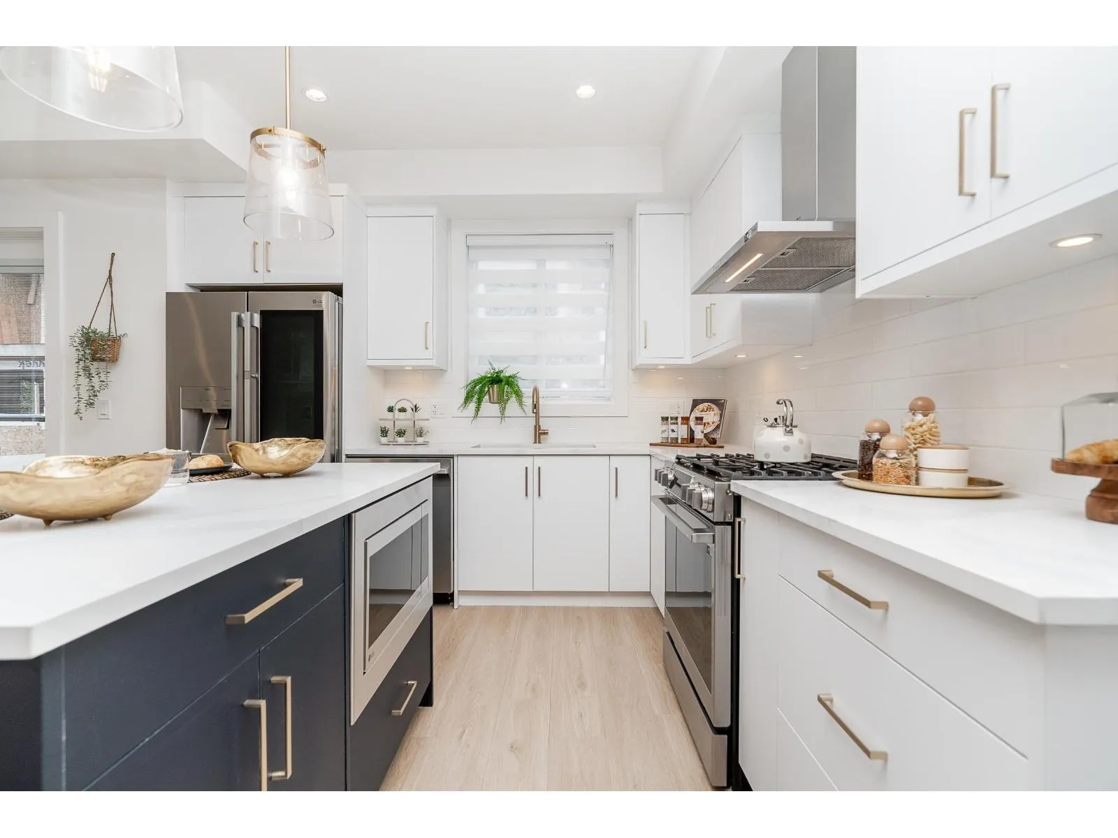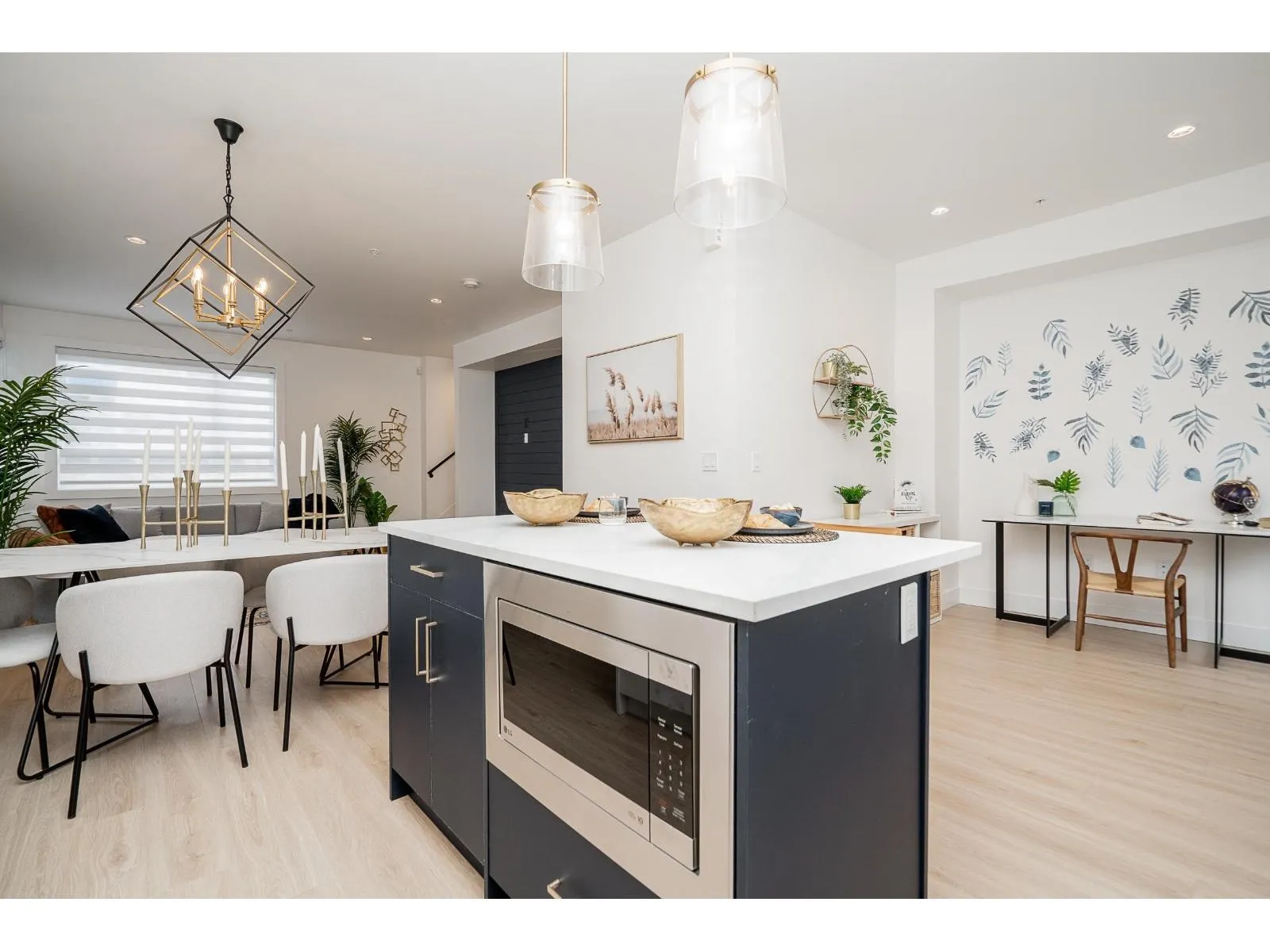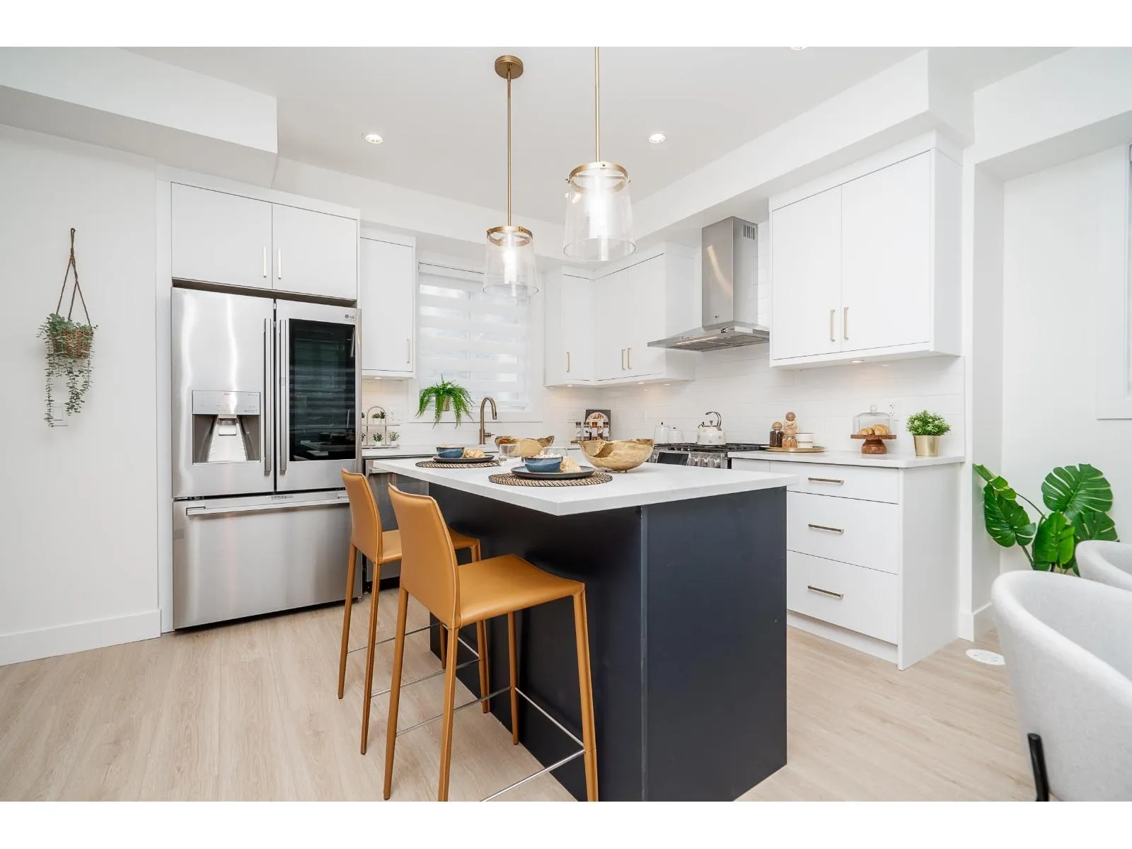 Welcome to Willow Heights by Apna Group! Nestled in a prime central location, just minutes from Willoughby Town Centre and Willowbrook Mall, this stunning new 3-story home sits on a peaceful street. Offering 4 bedrooms + flex space, it boasts 9' ceilings, a built-in fireplace, and a full bathroom on the ground level. Enjoy modern comforts like hot water on demand and forced air gas heating, along with a full-size side-by-side laundry set with built-in cabinetry. The primary suite is a true retreat, featuring a luxurious ensuite with a frameless glass shower and a freestanding tub. The LG appliance package includes a gas range, French door fridge, and built-in microwave. Show home open daily from 12-5 PM closed on Thurs. & Fri. (id:27476)
