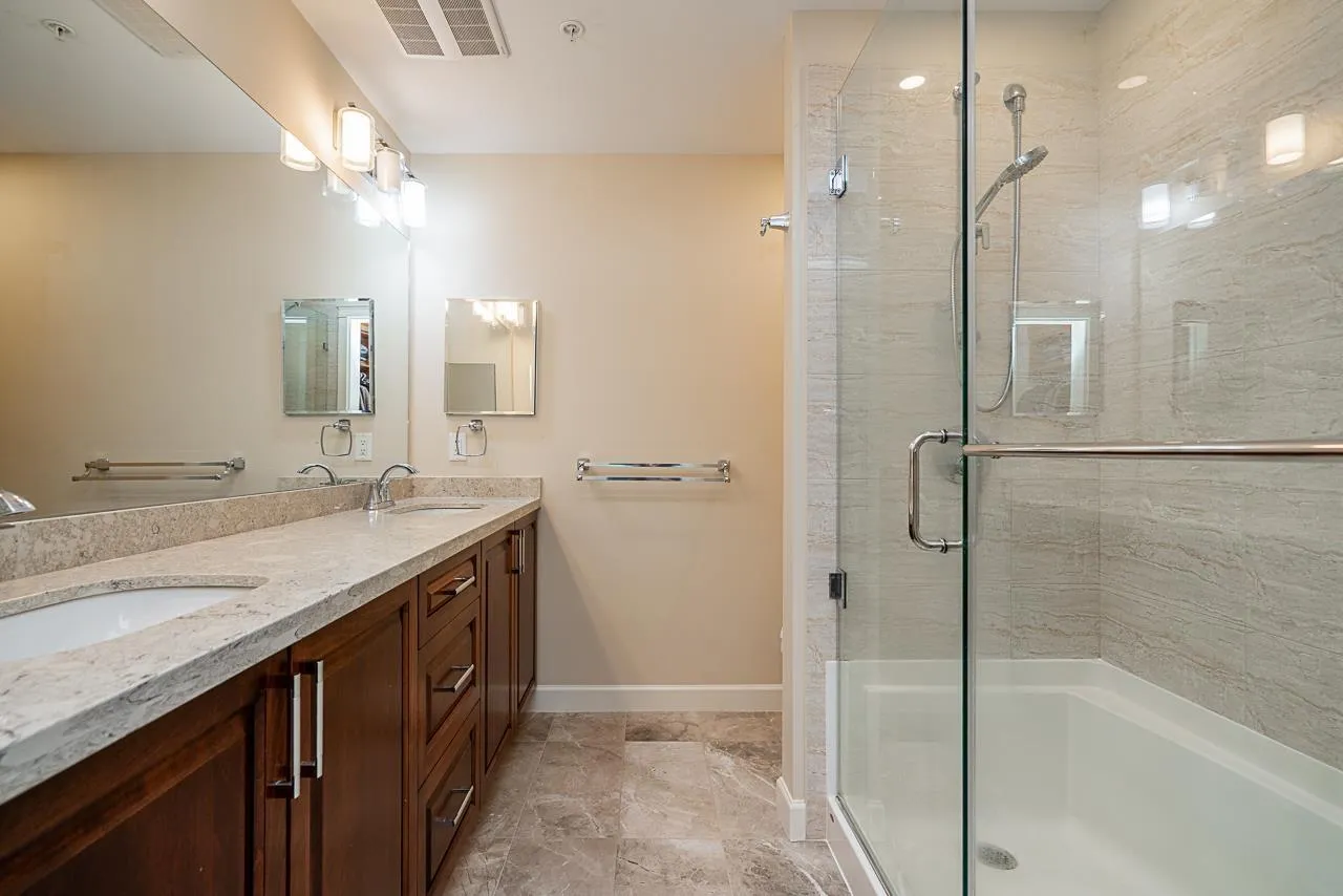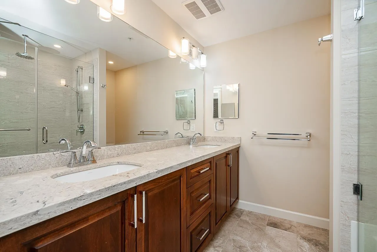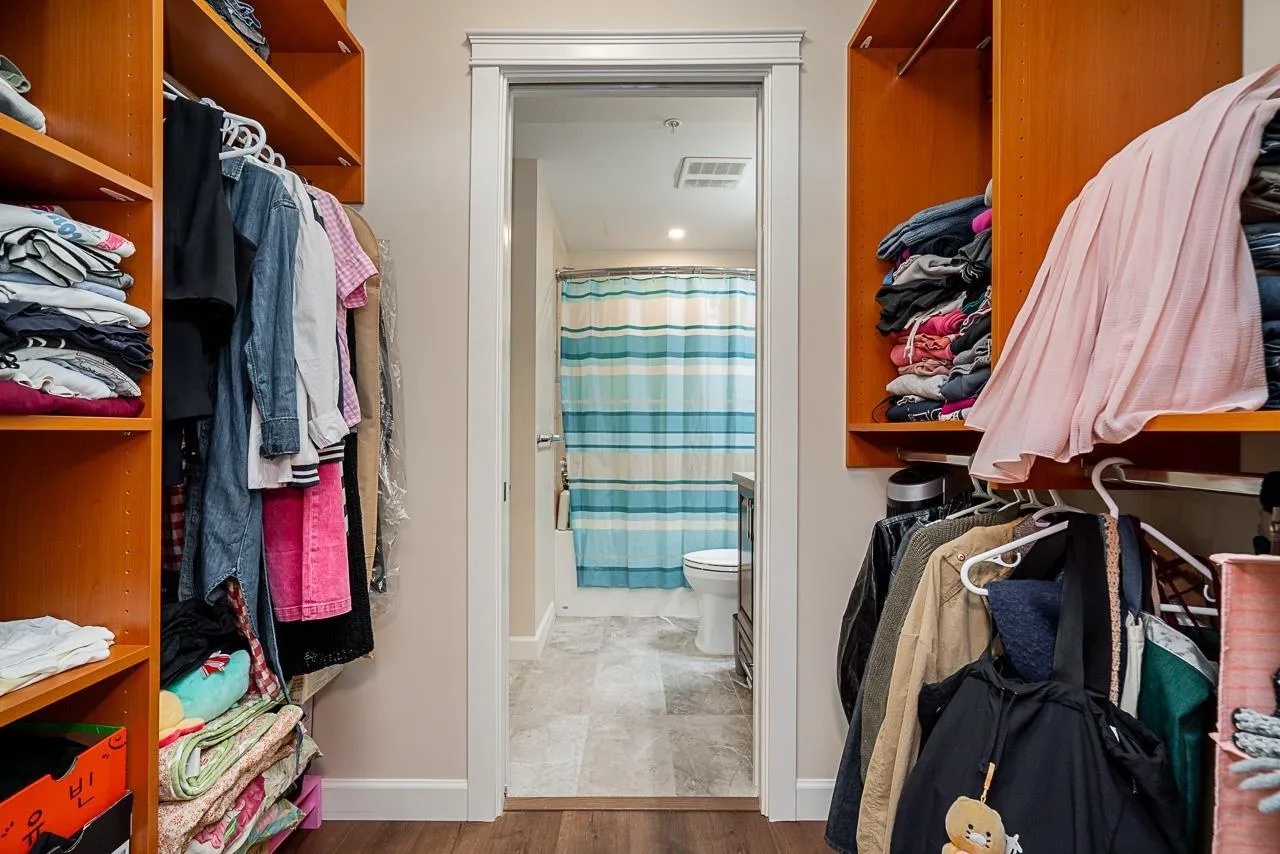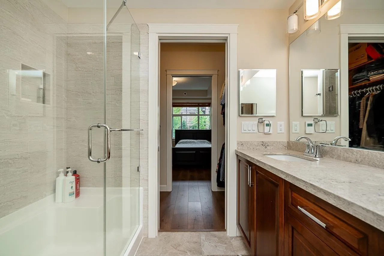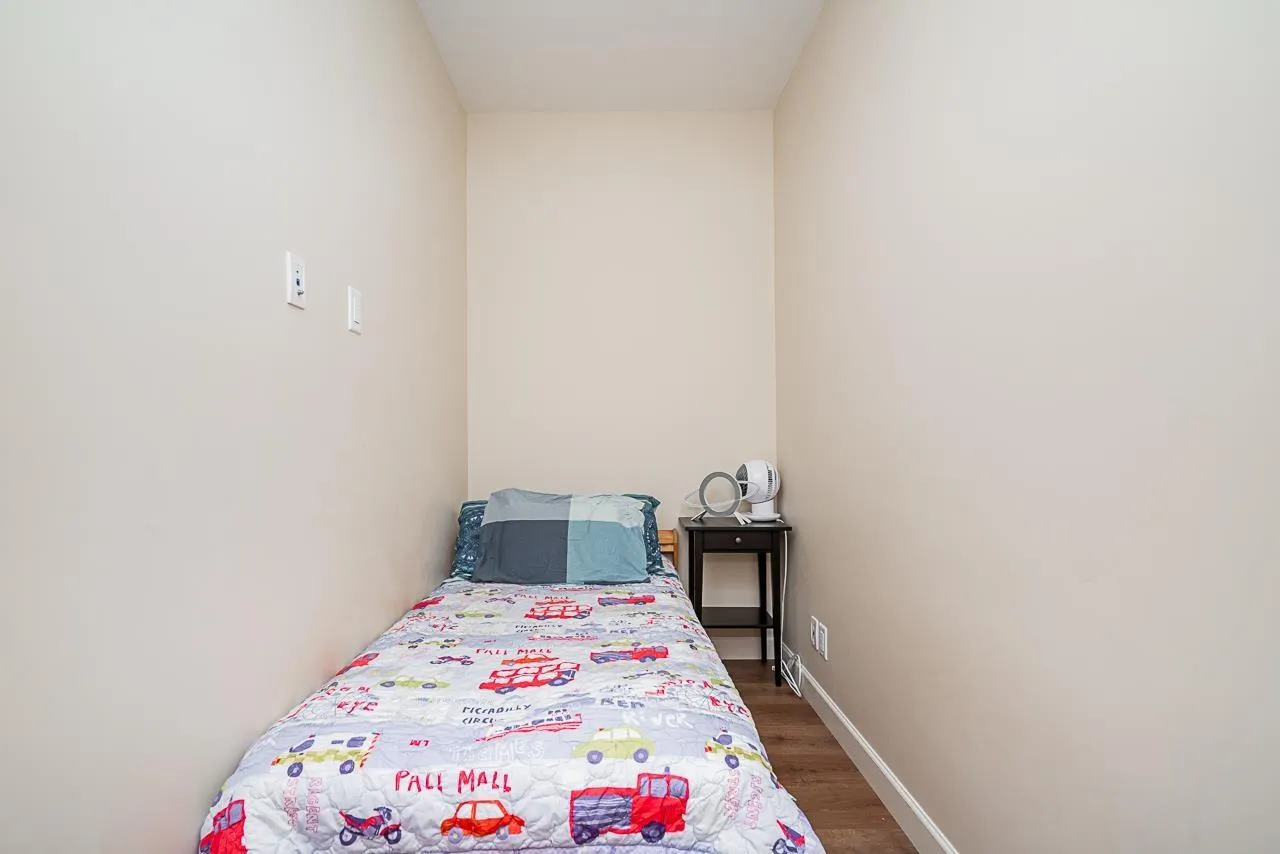 Yorkson Park - 2 Bed + 2 Bath + Den + Storage Unit. Functional layout with 2 large bedrooms across from each other- giving extra privacy, enclosed solarium with gas BBQ hook-up (gas included in strata fees), and 2 parking stalls with EV-capable rolling door storage by the parking space. Features include energy-efficient heat pump and A/C in every room, Samsung appliances, quartz countertops, heated bathroom floors with anti-fog mirrors, solid wood doors and closets, kitchen looking out to living area with ample cabinet space, European laminate flooring, Hybrid concrete and wood construction for quieter living. Convenient location across from Carvolth Park & Ride and beside the new 1.3-acre City Park. (id:27476)