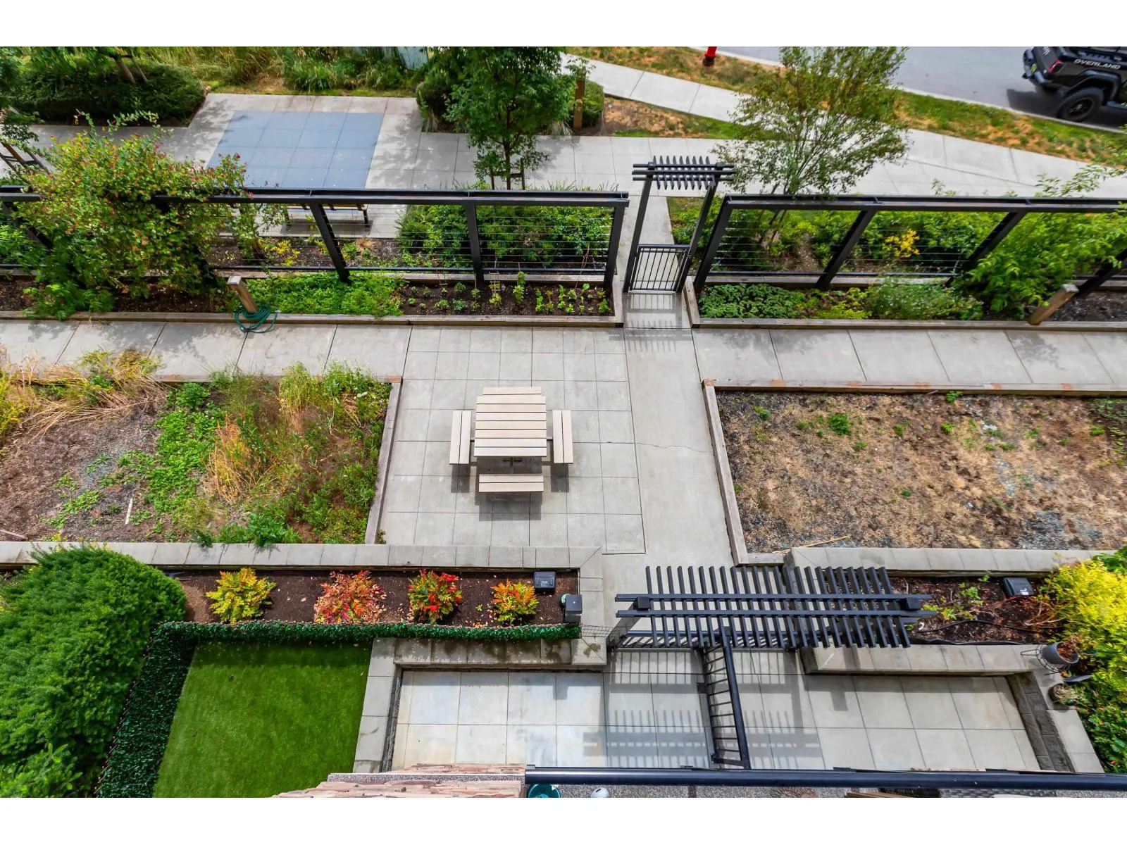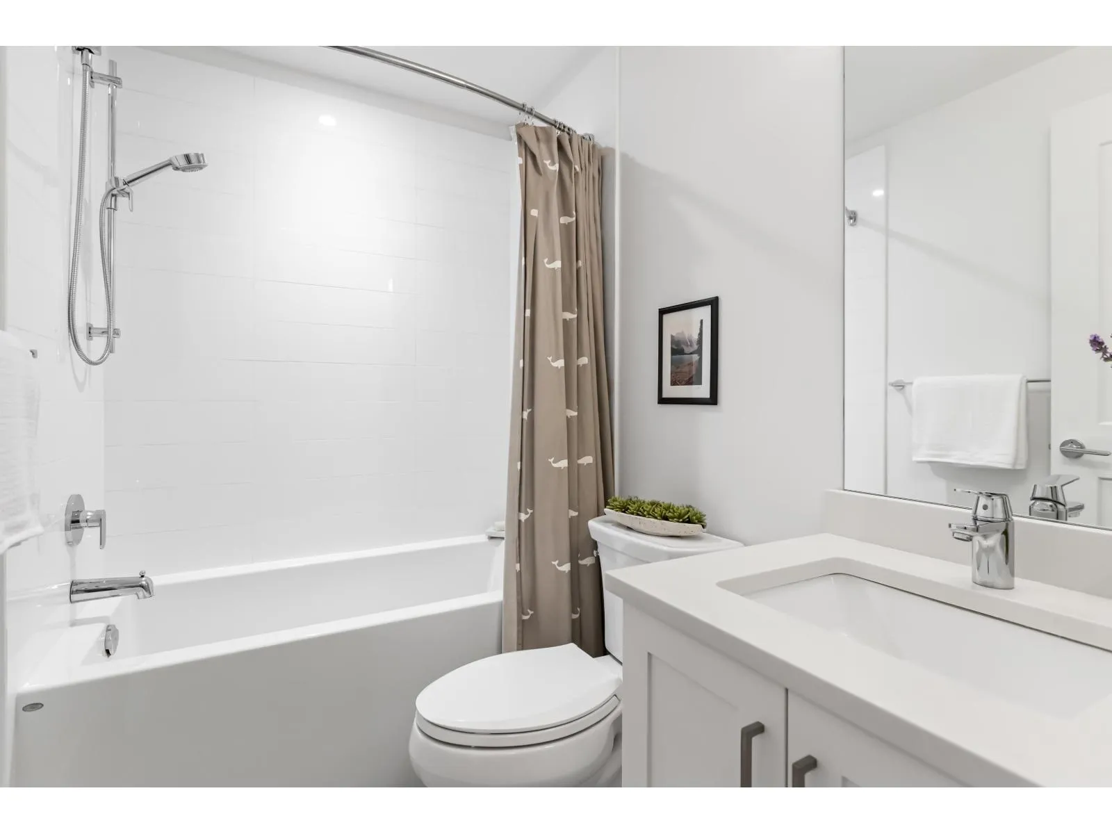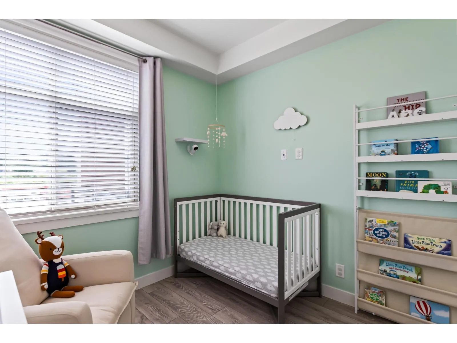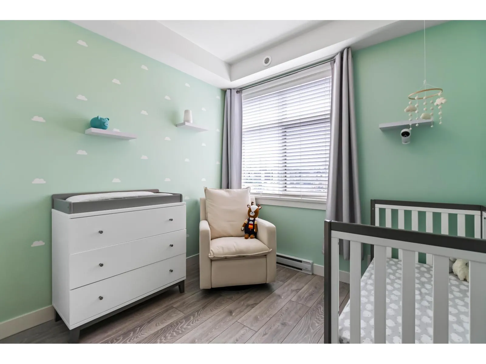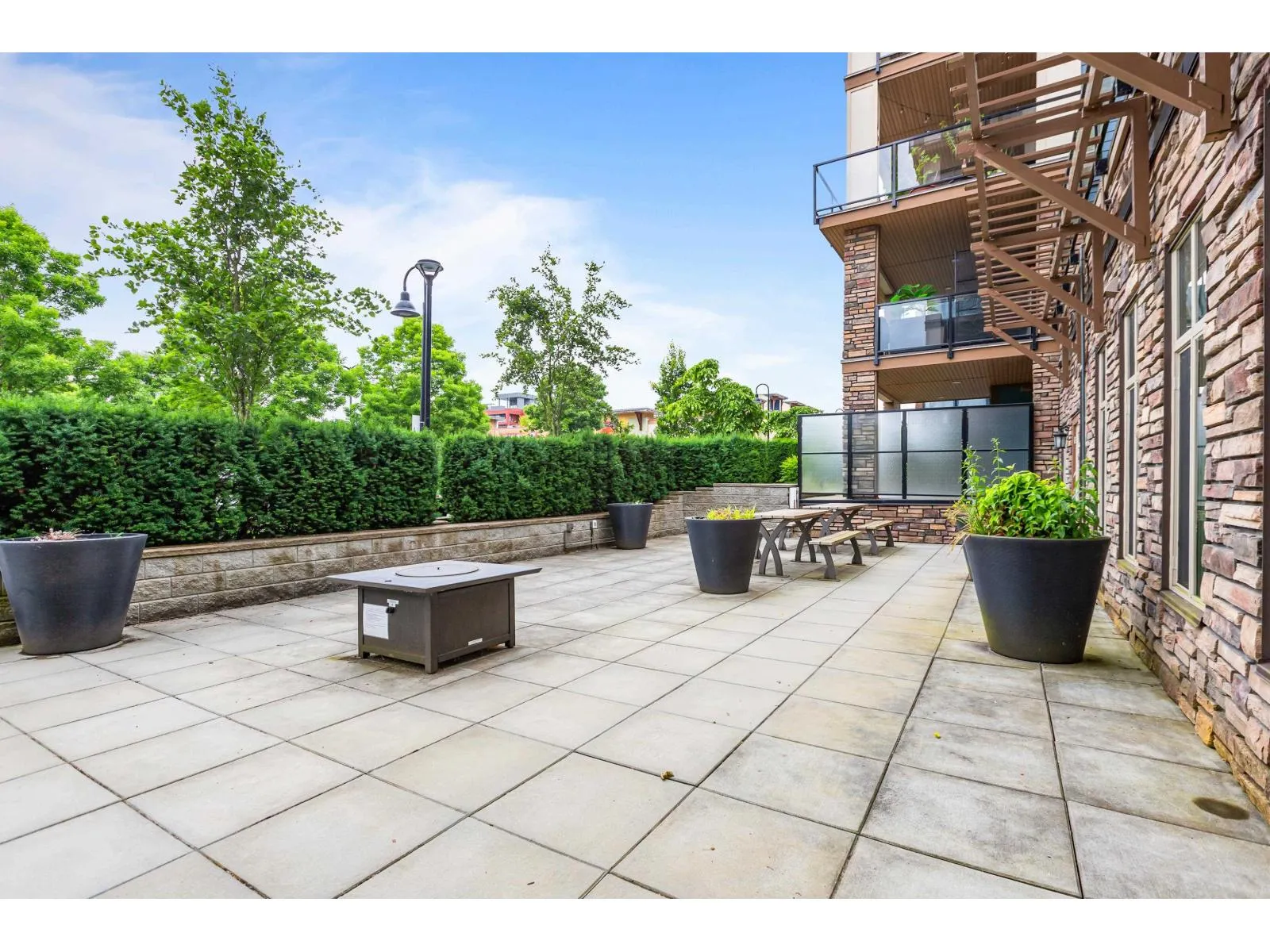 Bright, stylish, and in the heart of Willoughby Town Centre, this 2 bed, 2 bath condo at Grayson checks all the boxes. It's been incredibly well cared for and shows like new. Smart layout with two true bedrooms, sunny south-facing views, and wide plank flooring. The kitchen has a gas stove, stainless appliances, and a big eat-up bar, perfect for hosting. The primary suite features a walk-in closet and sleek en suite with double sinks and heated floors. The second bedroom has a window and works great as a kid's room, office, or guest space. Large covered deck, gym, playground, and social lounge with BBQ and fire pit seating. Includes two parking stalls and a roll-up storage locker. Steps to parks, schools, and shopping. (id:27476)