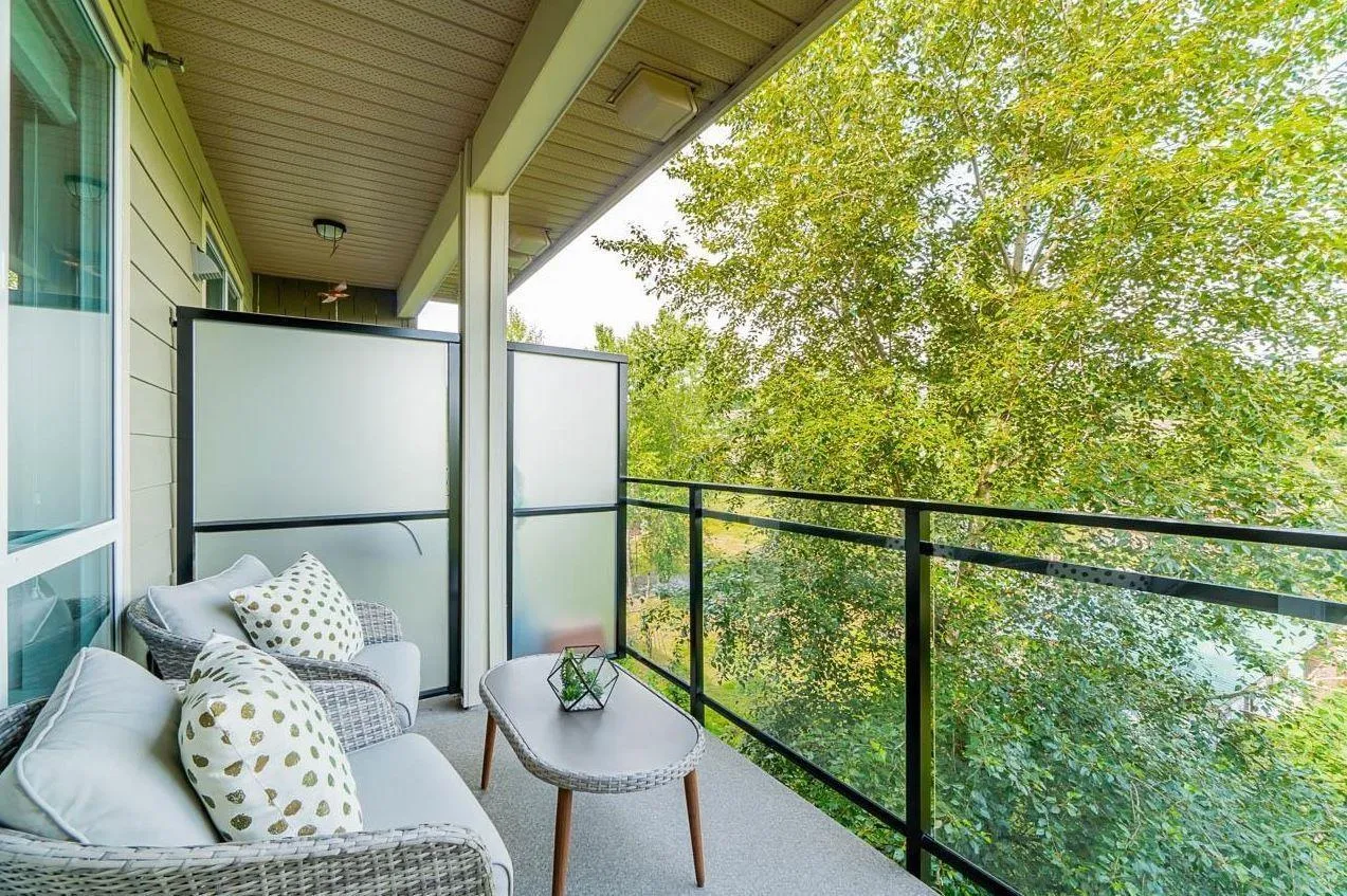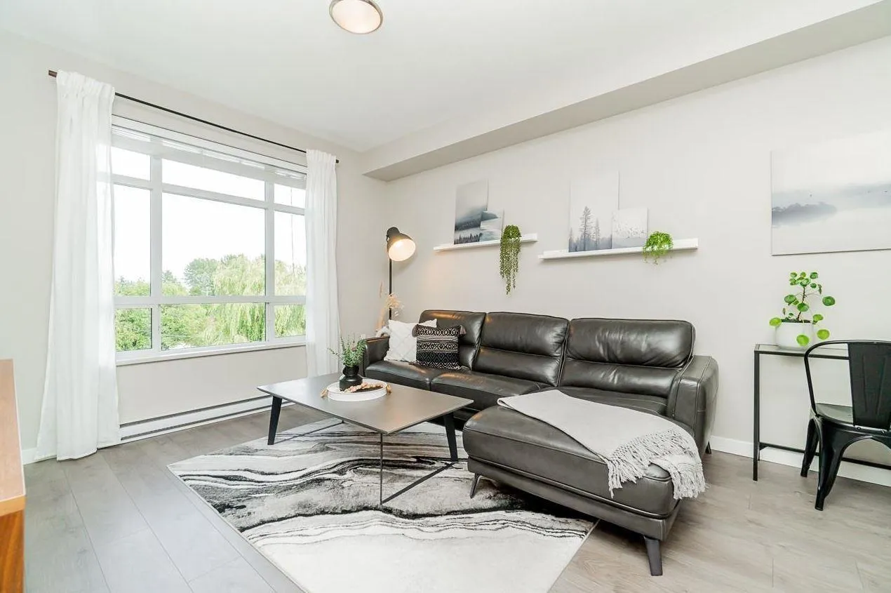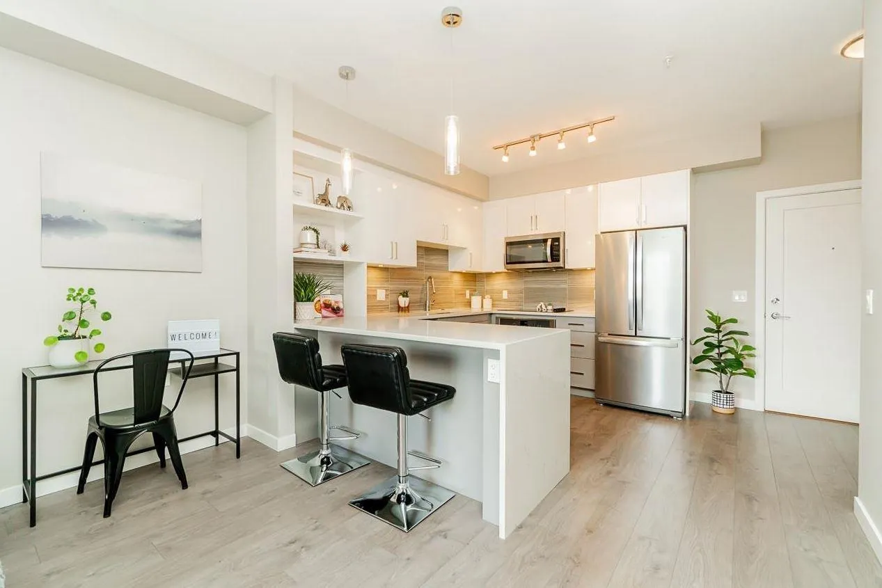 Welcome to Elements! Bright open-concept home with a chef's kitchen featuring s/s appliances, island bar & waterfall counters. Spacious living area opens to an east-facing balcony with private greenery views. Bedroom fits a king bed + oversized bathroom with lots of counter space. Includes double-wide storage on same floor & premium parking stall. Enjoy resort-style amenities at the Trilogy Club-gym, theatre, lounge & more. Steps to Smart Centres Langley (Walmart, Best Buy, Home Depot) with easy access to dining & entertainment (id:27476)