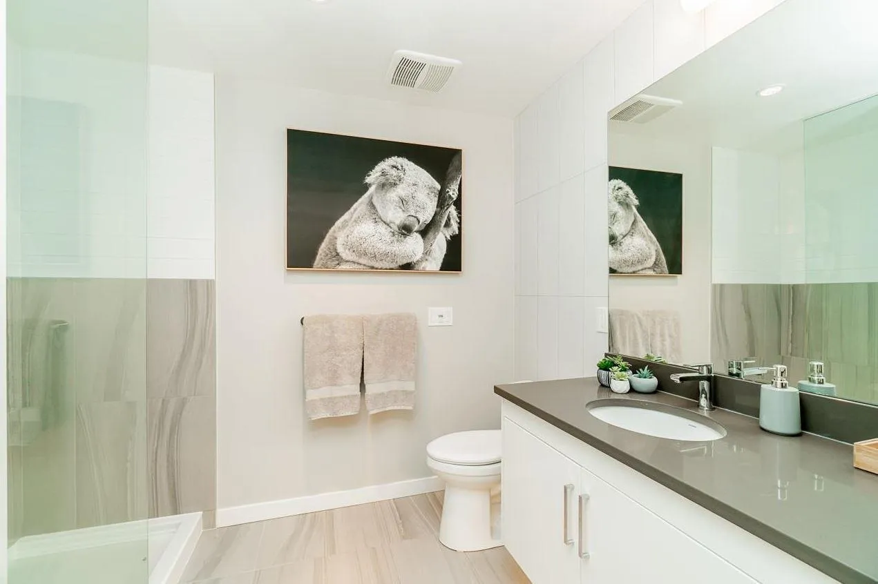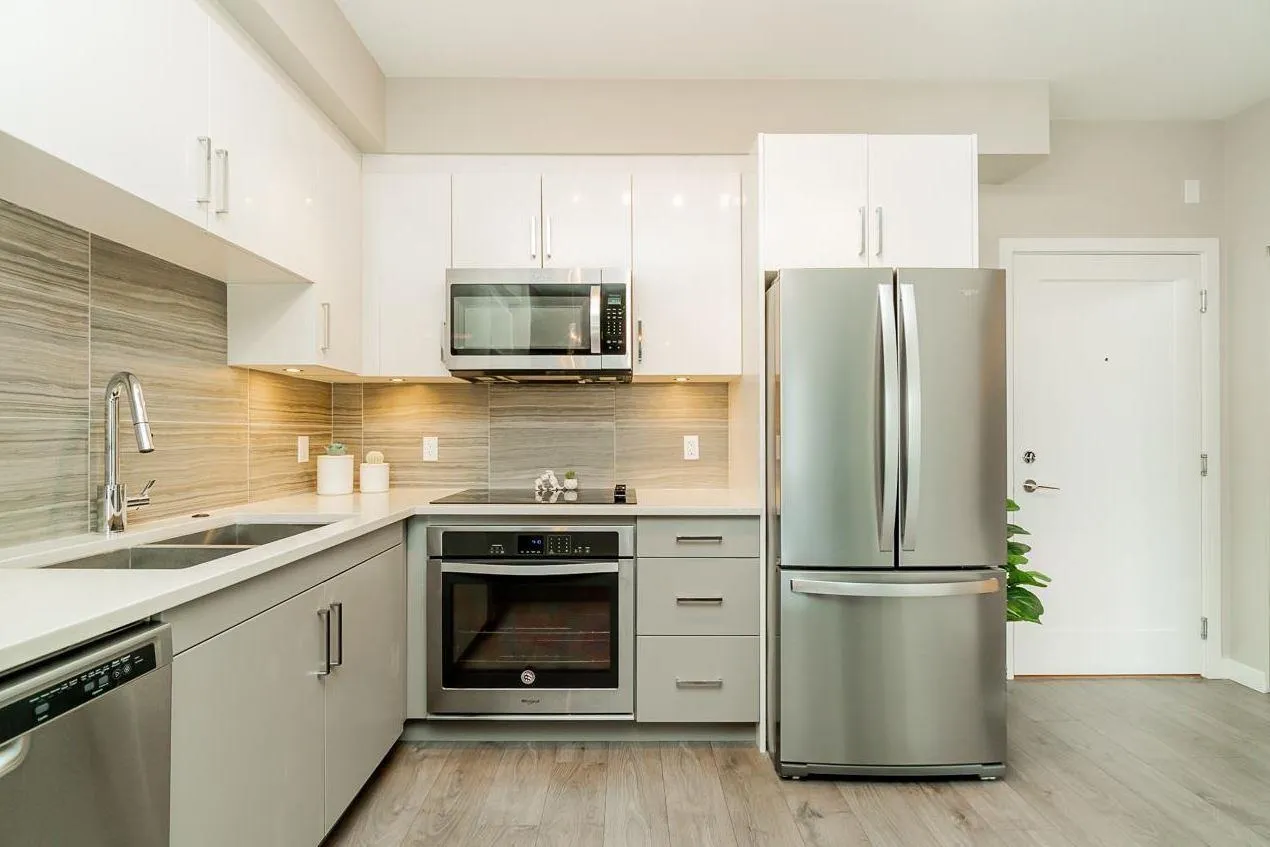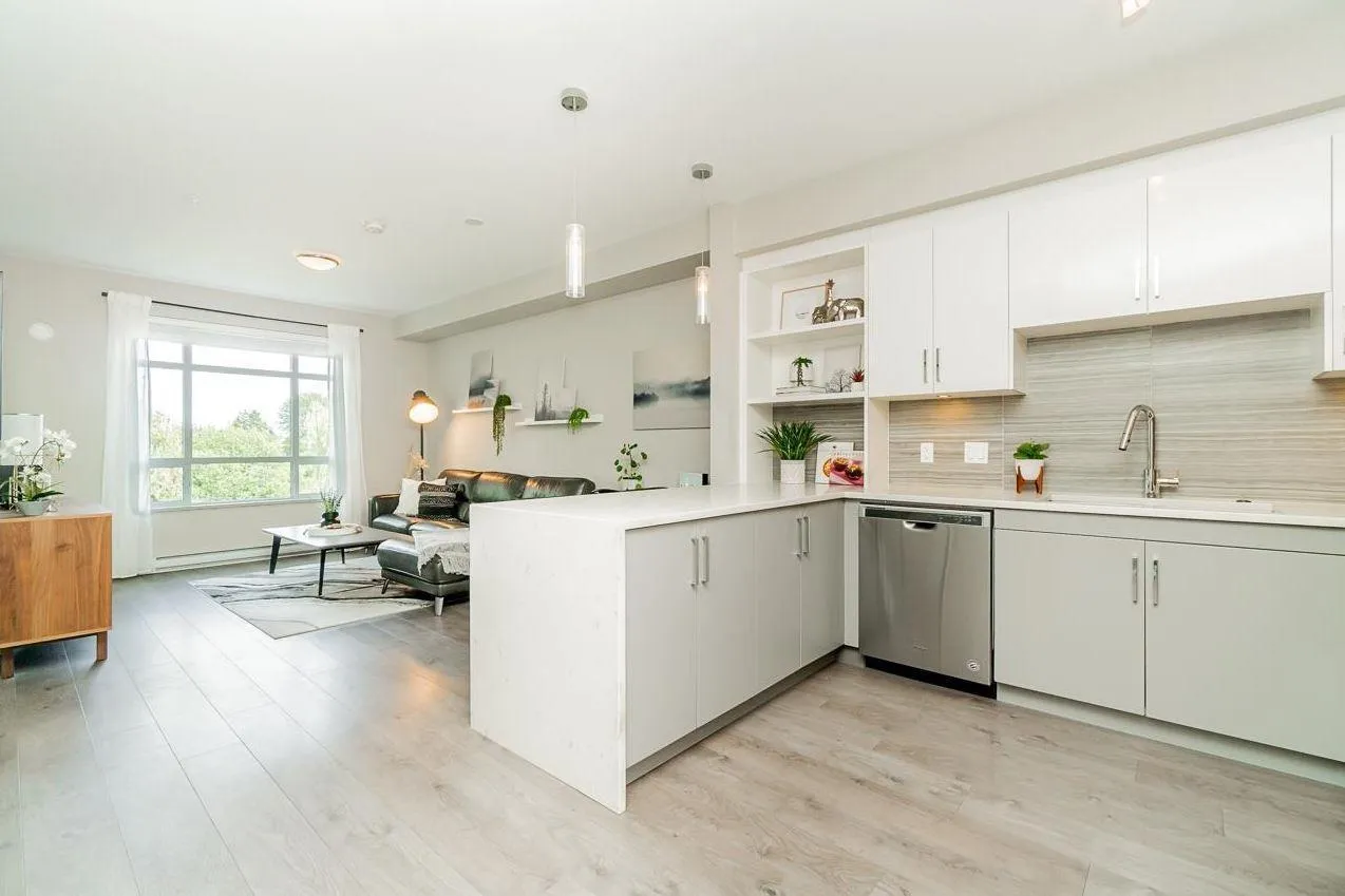 Welcome to Elements! Bright open-concept home with a chef's kitchen featuring s/s appliances, island bar & waterfall counters. Spacious living area opens to an east-facing balcony with private greenery views. Bedroom fits a king bed + oversized bathroom with lots of counter space. Includes double-wide storage on same floor & premium parking stall. Enjoy resort-style amenities at the Trilogy Club-gym, theatre, lounge & more. Steps to Smart Centres Langley (Walmart, Best Buy, Home Depot) with easy access to dining & entertainment (id:27476)