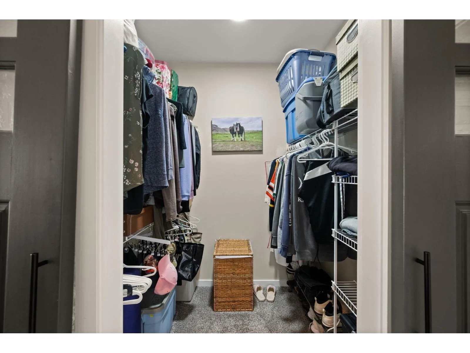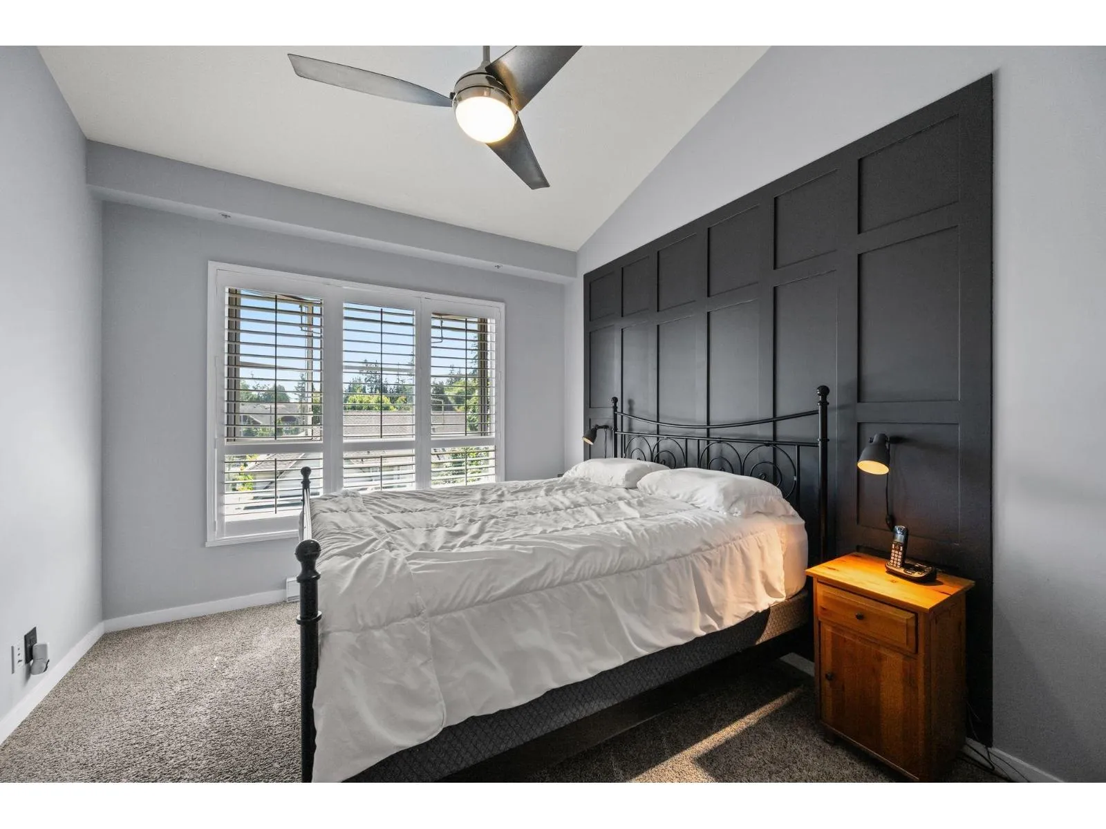 TOP FLOOR, VAULTED CEILINGS! Beautifully bright and sunny south exposure! Downsizer alert! This is the unit that you've been waiting for! Downsize in safety and comfort in this 2BDRM 2 BATH condo, with one occupant needing to be 55+ in age. Up to 13'ft vaulted ceilings! White kitchen cabinetry, S/S appliance package incl gas stove, granite counters. Heated ensuite tile floor in the master bath. 2nd Bdrm with cheater ensuite/main bath. Updated laminate floors and newer carpet in bdrm's. California shutters. Updated paint and lighting throughout. BONUS storage locker on the same floor and 2 side by side parking stalls. Secure bike storage, fitness room and clubhouse included!NEW Heatpump offering A/C! (id:27476)