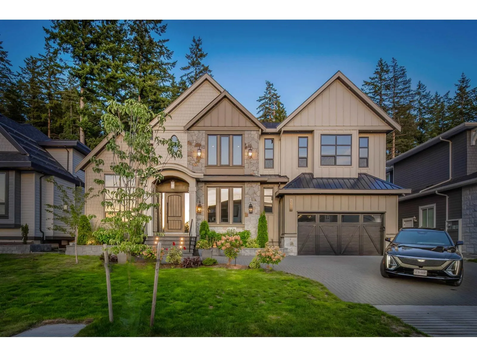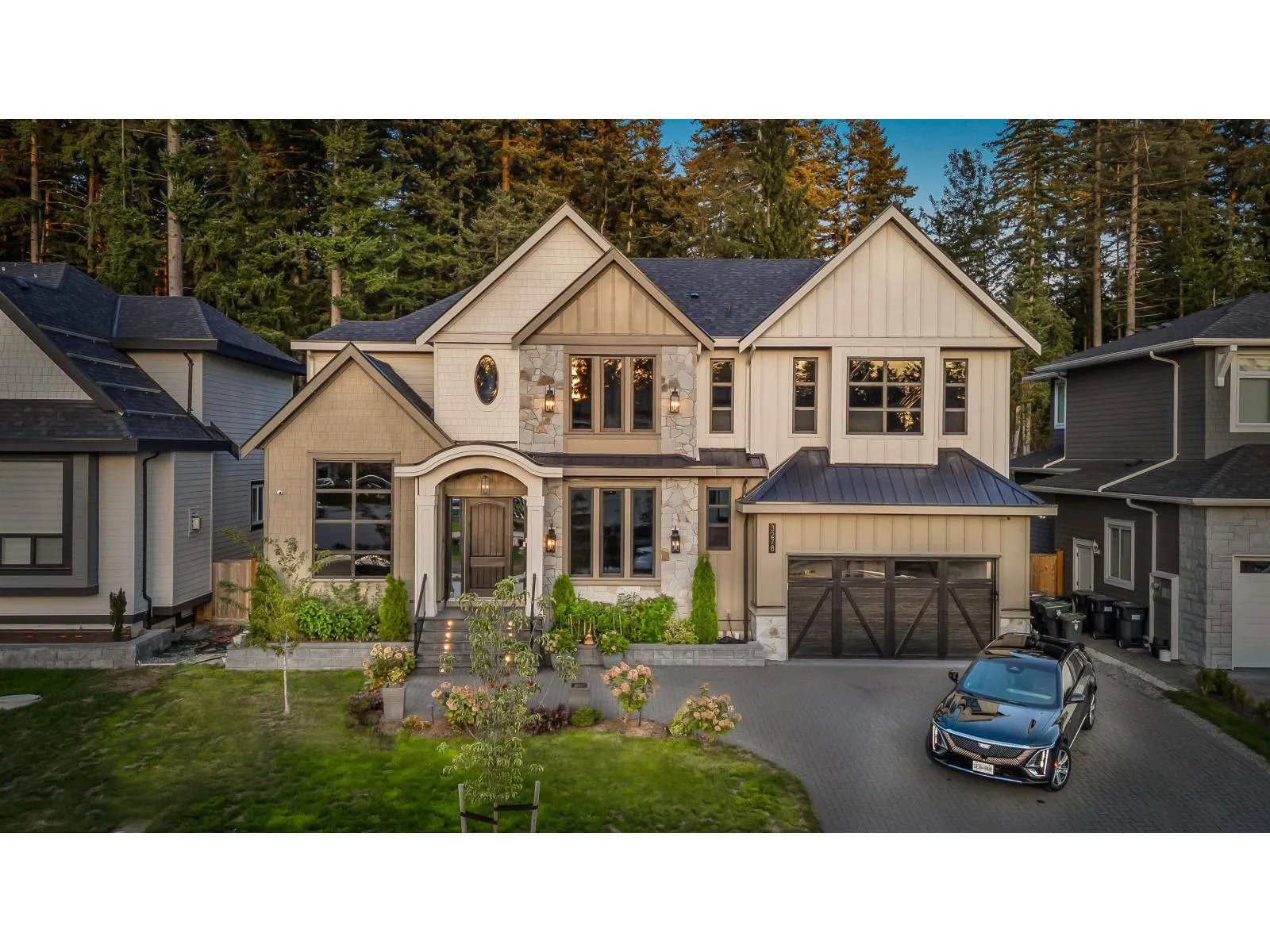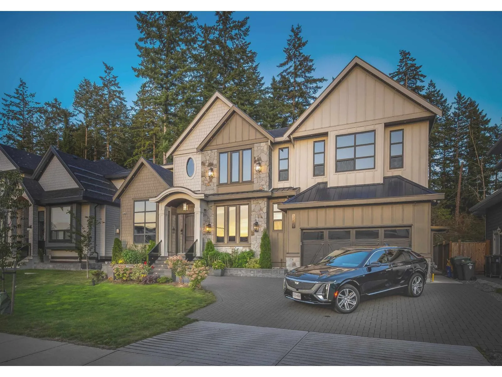 This captivating craftsman-style custom home is a true showpiece. Striking curb appeal, meticulously crafted exterior and 6,300-sf+ of thoughtfully curated interior living. Inside, experience designer features such as a hidden powder room, 3-way fireplace and glass-enclosed den with vaulted ceilings. The transitional interior is defined by soaring 20-ft ceilings, radiant heating, high-end millwork and finishings throughout. The modern kitchen is equipped with built-in F+P appliances incl. beverage maker, gas cooking, designer hardware, walk-in pantry and a secondary prep kitchen. The main floor layout includes a second living area lounge, a mudroom and a fully ensuited bedroom suite. Enjoy a quiet treed yard and expansive covered deck in beautiful Brookswood. (id:27476)