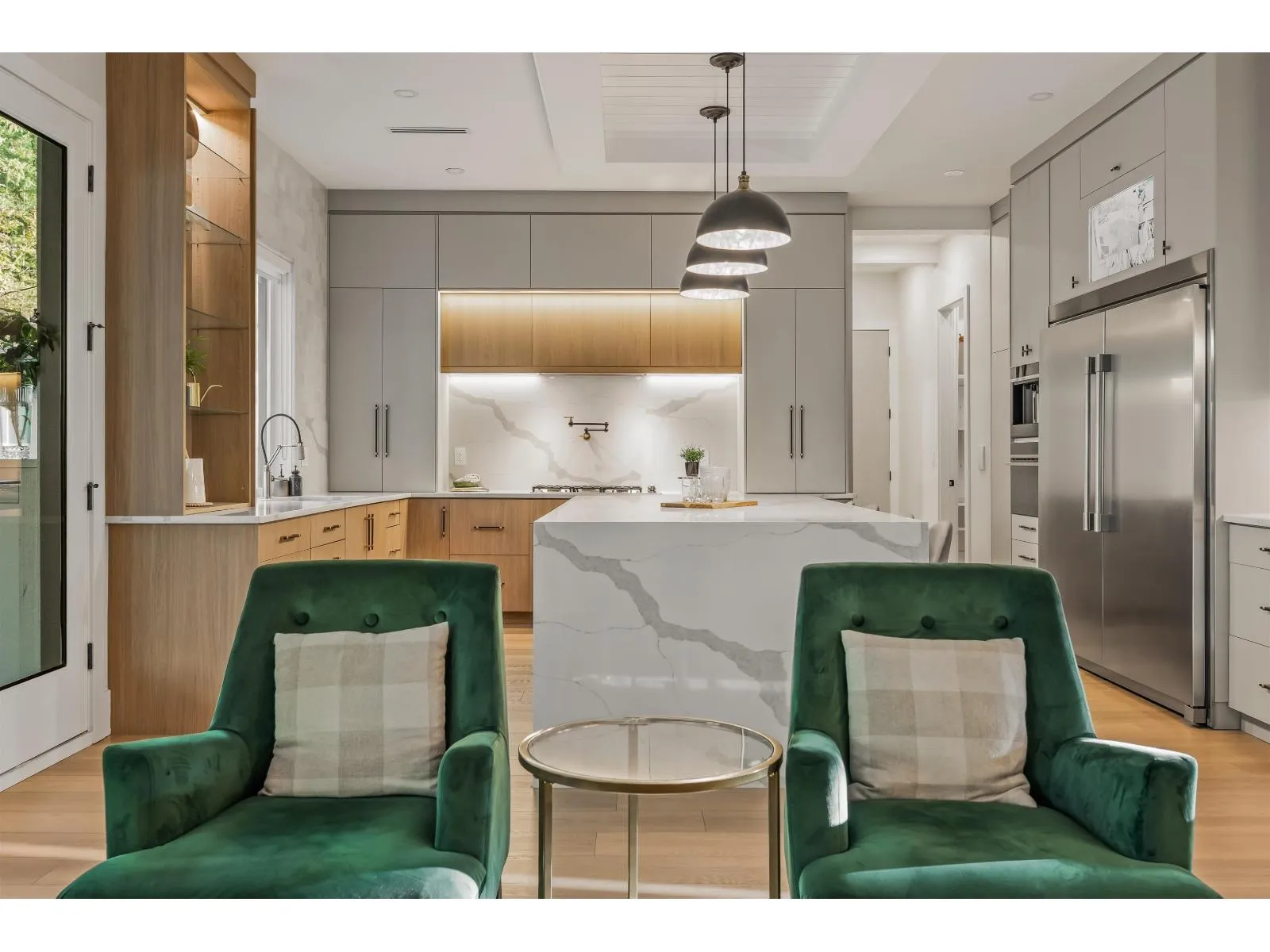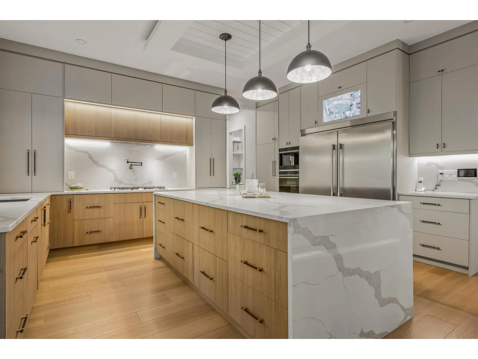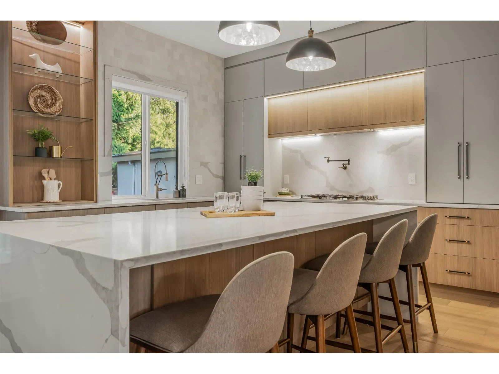 This captivating craftsman-style custom home is a true showpiece. Striking curb appeal, meticulously crafted exterior and 6,300-sf+ of thoughtfully curated interior living. Inside, experience designer features such as a hidden powder room, 3-way fireplace and glass-enclosed den with vaulted ceilings. The transitional interior is defined by soaring 20-ft ceilings, radiant heating, high-end millwork and finishings throughout. The modern kitchen is equipped with built-in F+P appliances incl. beverage maker, gas cooking, designer hardware, walk-in pantry and a secondary prep kitchen. The main floor layout includes a second living area lounge, a mudroom and a fully ensuited bedroom suite. Enjoy a quiet treed yard and expansive covered deck in beautiful Brookswood. (id:27476)