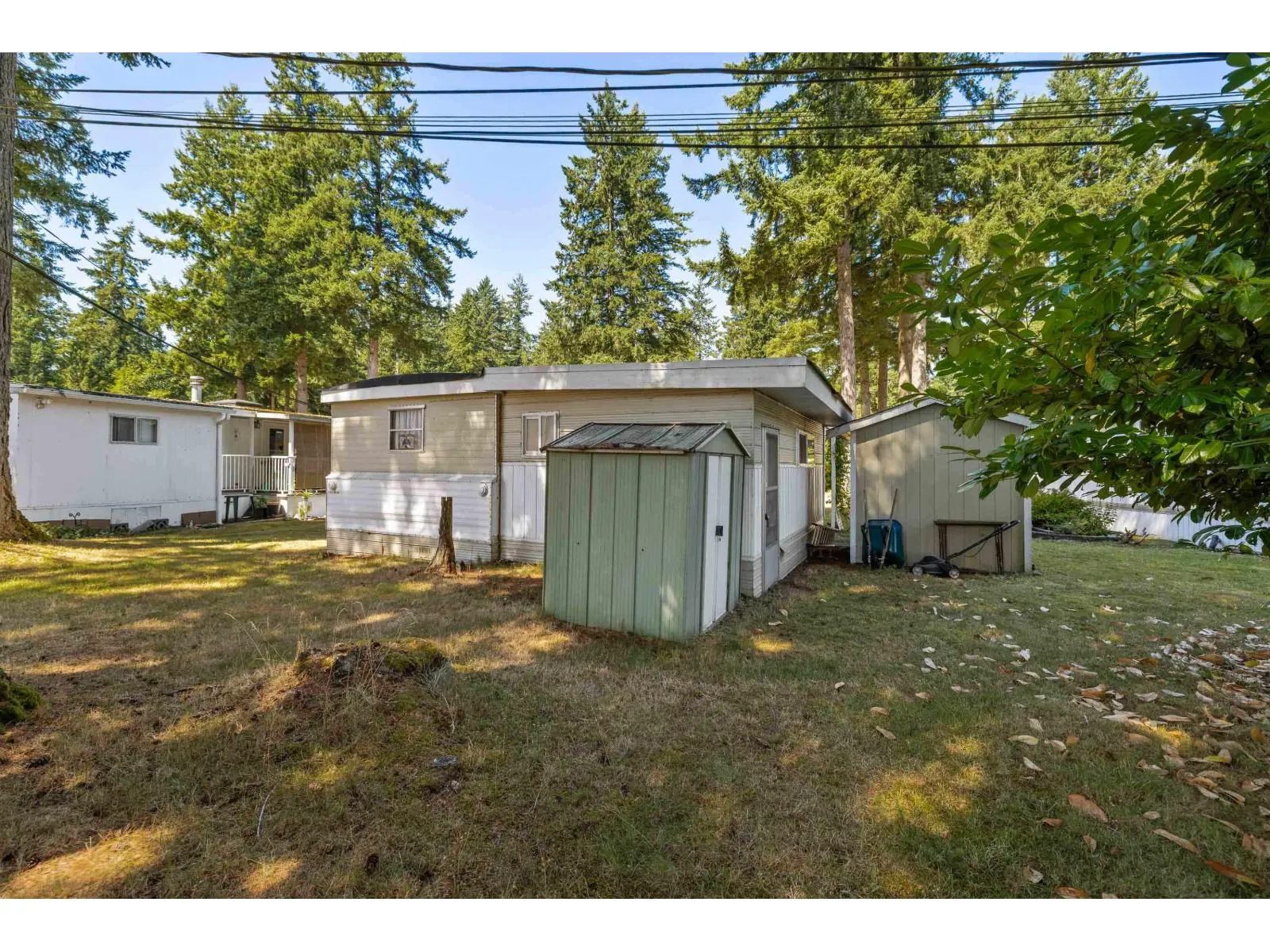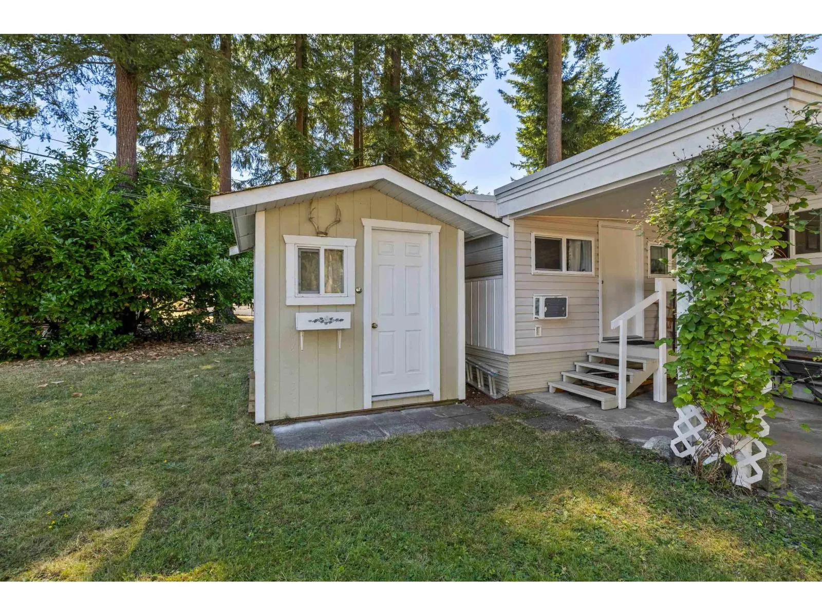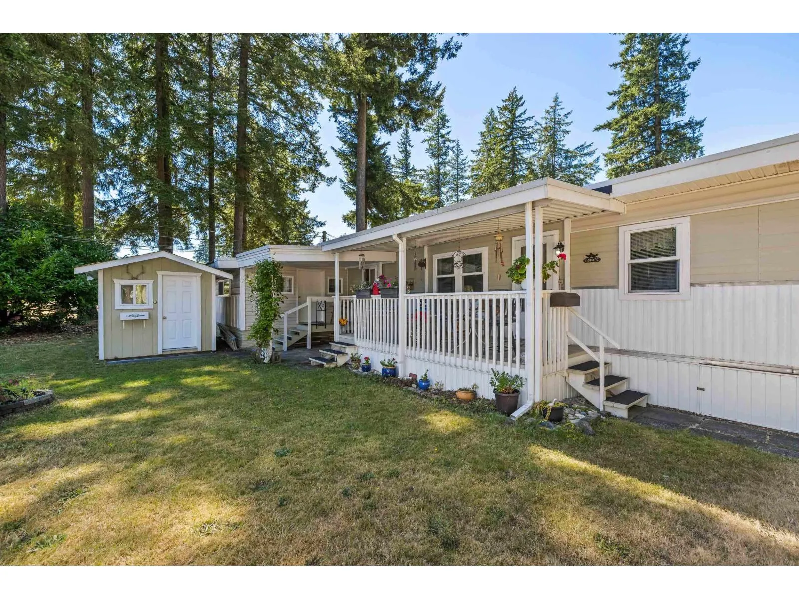 Discover affordable (pre)retirement living in Fernridge Park, a friendly, 55+ community in the heart of Brookswood! This 994 sq ft single-wide manufactured home features 2 bedrooms, 1 bathroom (no tub), a dedicated laundry room plus a storage room! Includes updated flooring, tile work and a white kitchen filled with natural light! Outside boasts a cozy sundeck, 2 sheds and open parking (RV parking possible at an extra fee). The park itself features a clubhouse and a tranquil atmosphere, all situated close to shopping with IGA right on the corner along with the Artful Dodger Pub and transit as well! Pets and rentals are NOT permitted and park manager approval is required. Call your realtor to book a private showing! (id:27476)