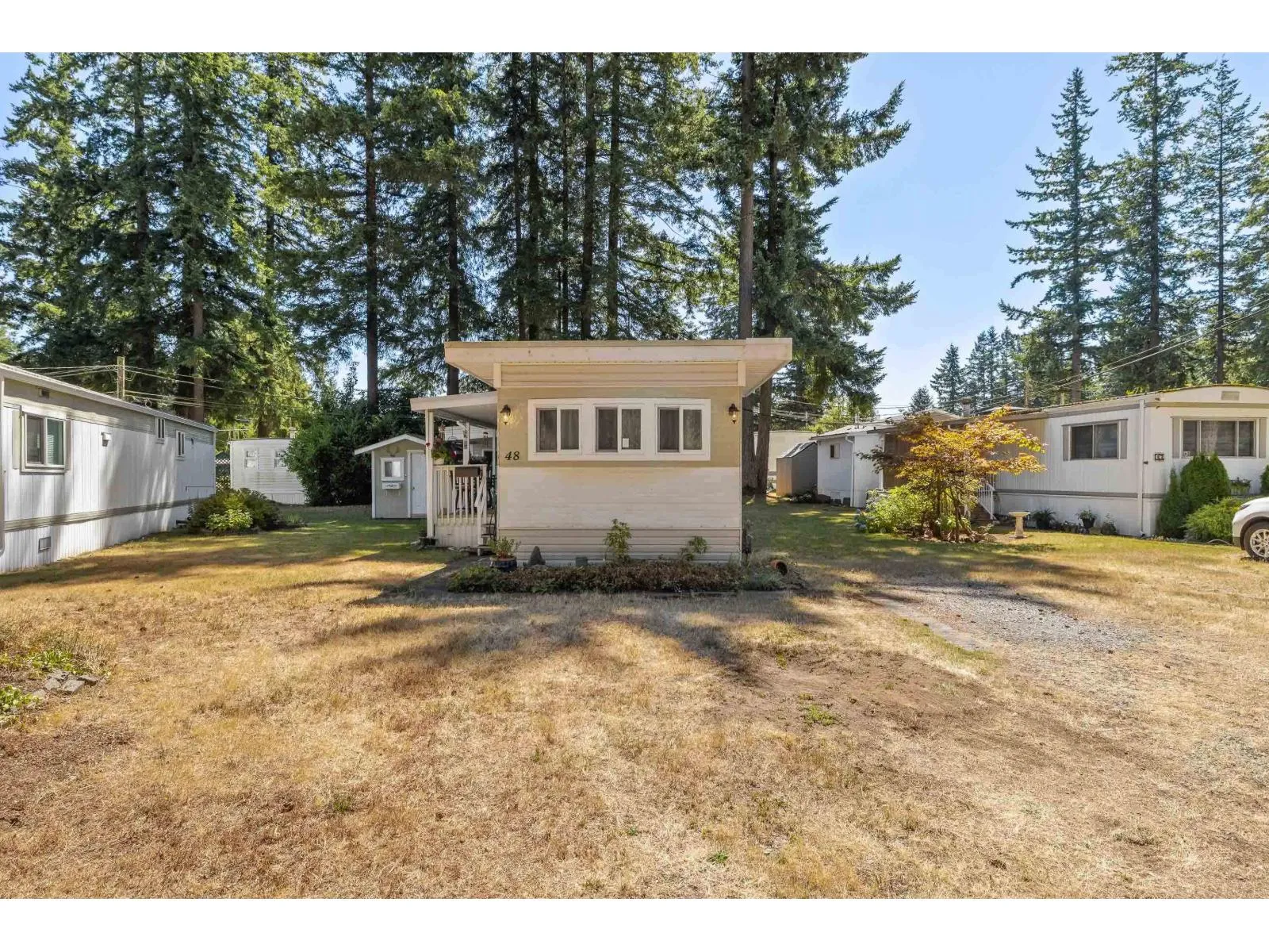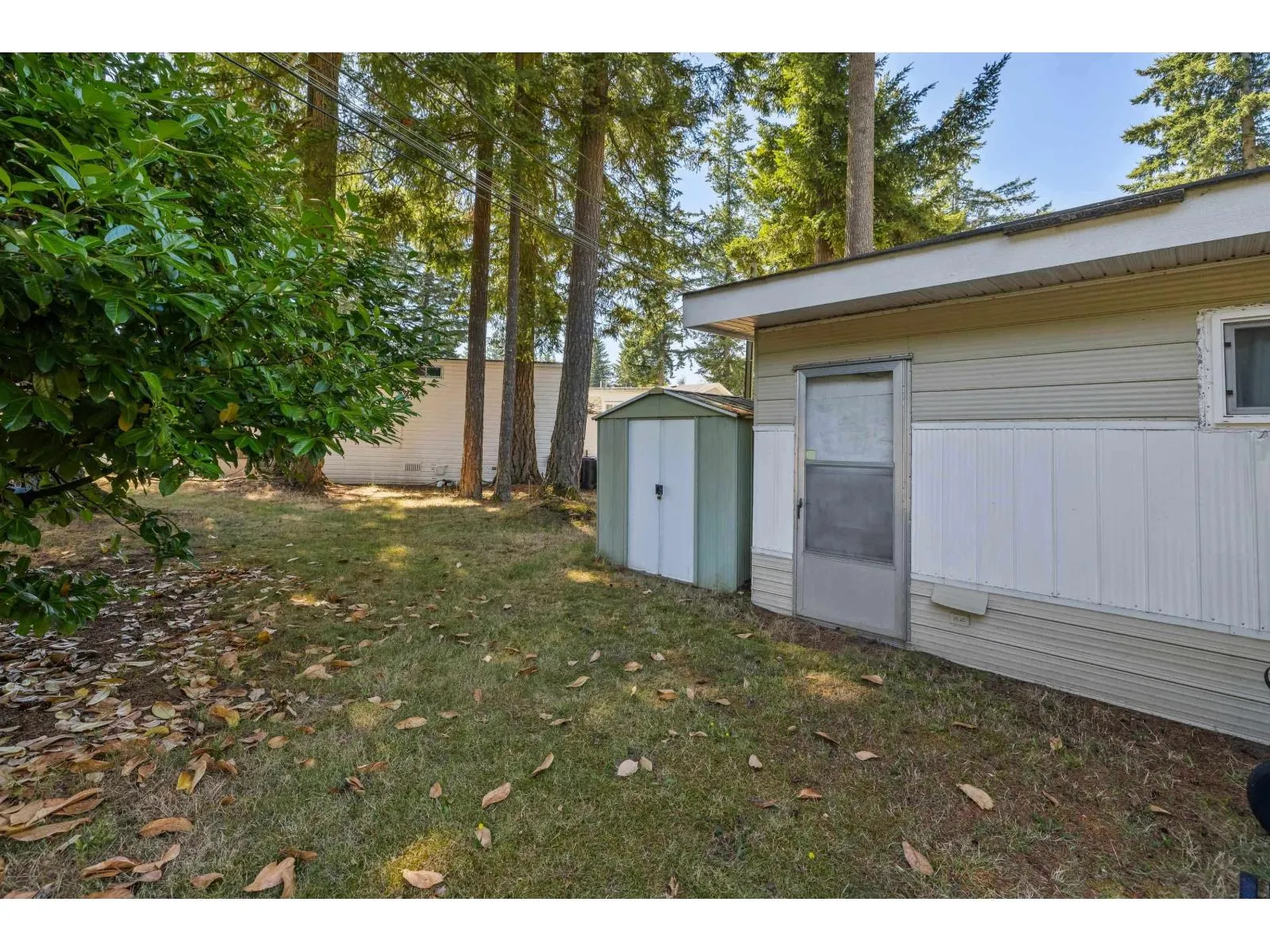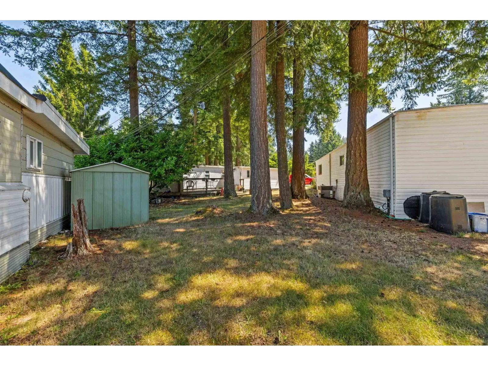 Discover affordable (pre)retirement living in Fernridge Park, a friendly, 55+ community in the heart of Brookswood! This 994 sq ft single-wide manufactured home features 2 bedrooms, 1 bathroom (no tub), a dedicated laundry room plus a storage room! Includes updated flooring, tile work and a white kitchen filled with natural light! Outside boasts a cozy sundeck, 2 sheds and open parking (RV parking possible at an extra fee). The park itself features a clubhouse and a tranquil atmosphere, all situated close to shopping with IGA right on the corner along with the Artful Dodger Pub and transit as well! Pets and rentals are NOT permitted and park manager approval is required. Call your realtor to book a private showing! (id:27476)
