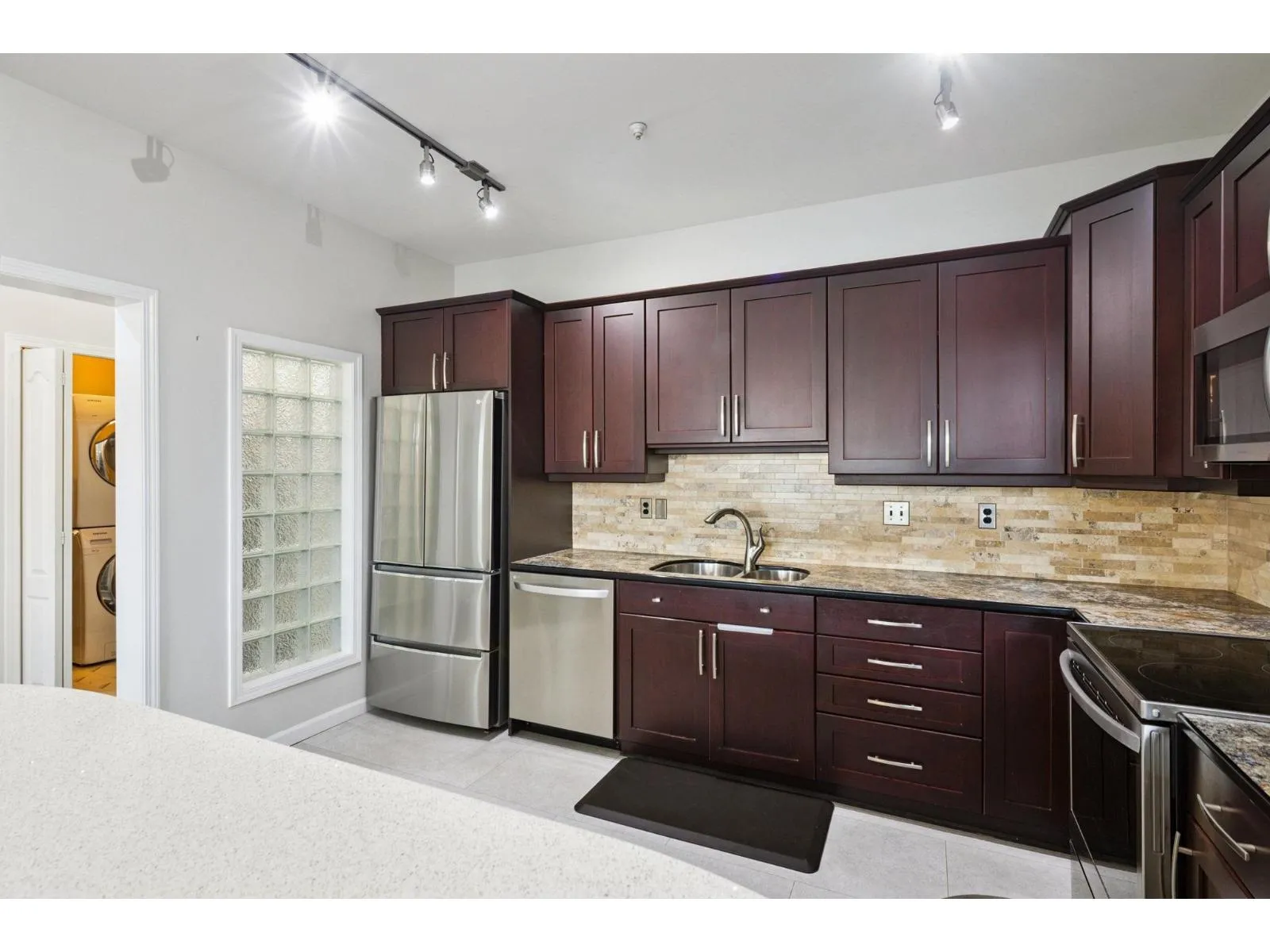 New Price! Welcome to Ivy Lea in the heart of Langley City. Centrally located and close to shopping, dining, parks, and transit, this home offers both comfort and convenience. This well-maintained, south-facing, 2 bedroom, 2 bathroom corner unit offers 1,234 sq. ft. of functional living space with an additional 120 sq. ft. balcony. The home features a bright and open floor plan with large windows, a spacious living and dining area, and a kitchen complete with stainless steal appliances, double sink and ample cabinetry. The primary bedroom includes a large walk-in closet and a 4-piece ensuite. Additional highlights include in-suite laundry, generous storage, and the privacy of a corner unit layout. Clean and Vacant, ready to move in! Open House Nov 15th SAT 2-4pm! (id:27476)