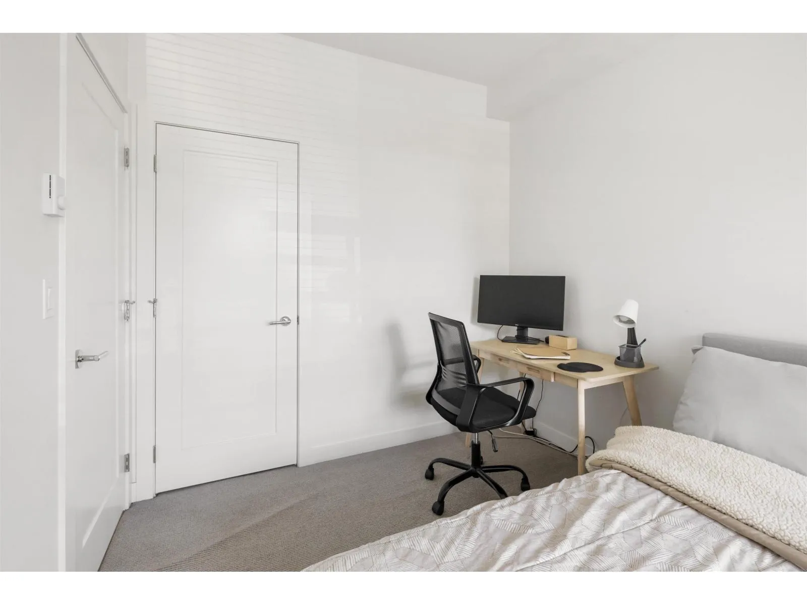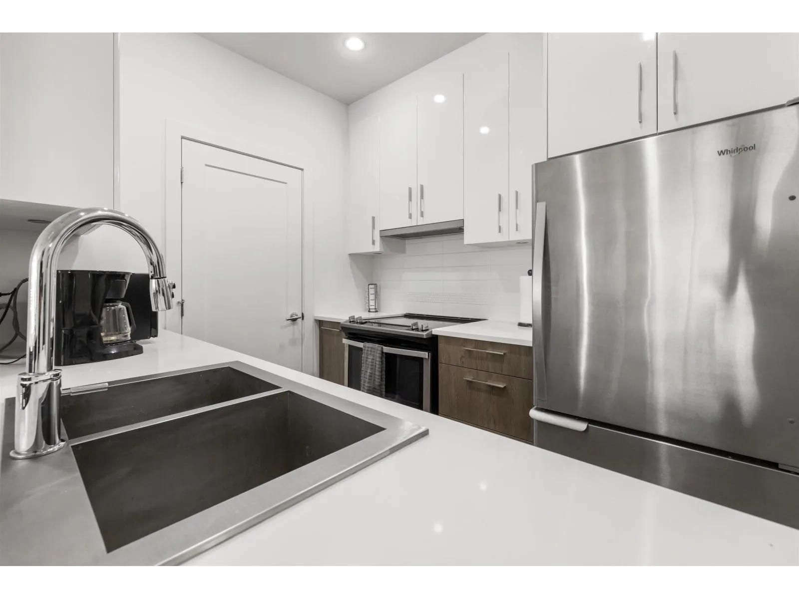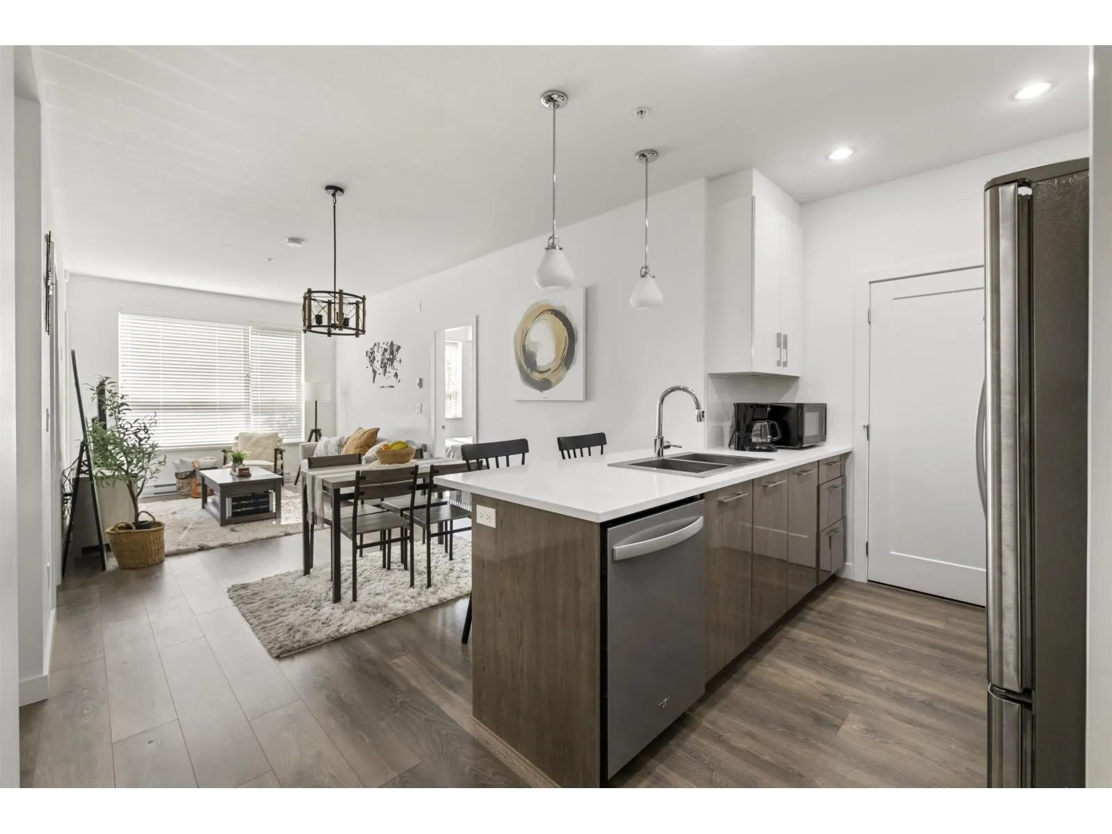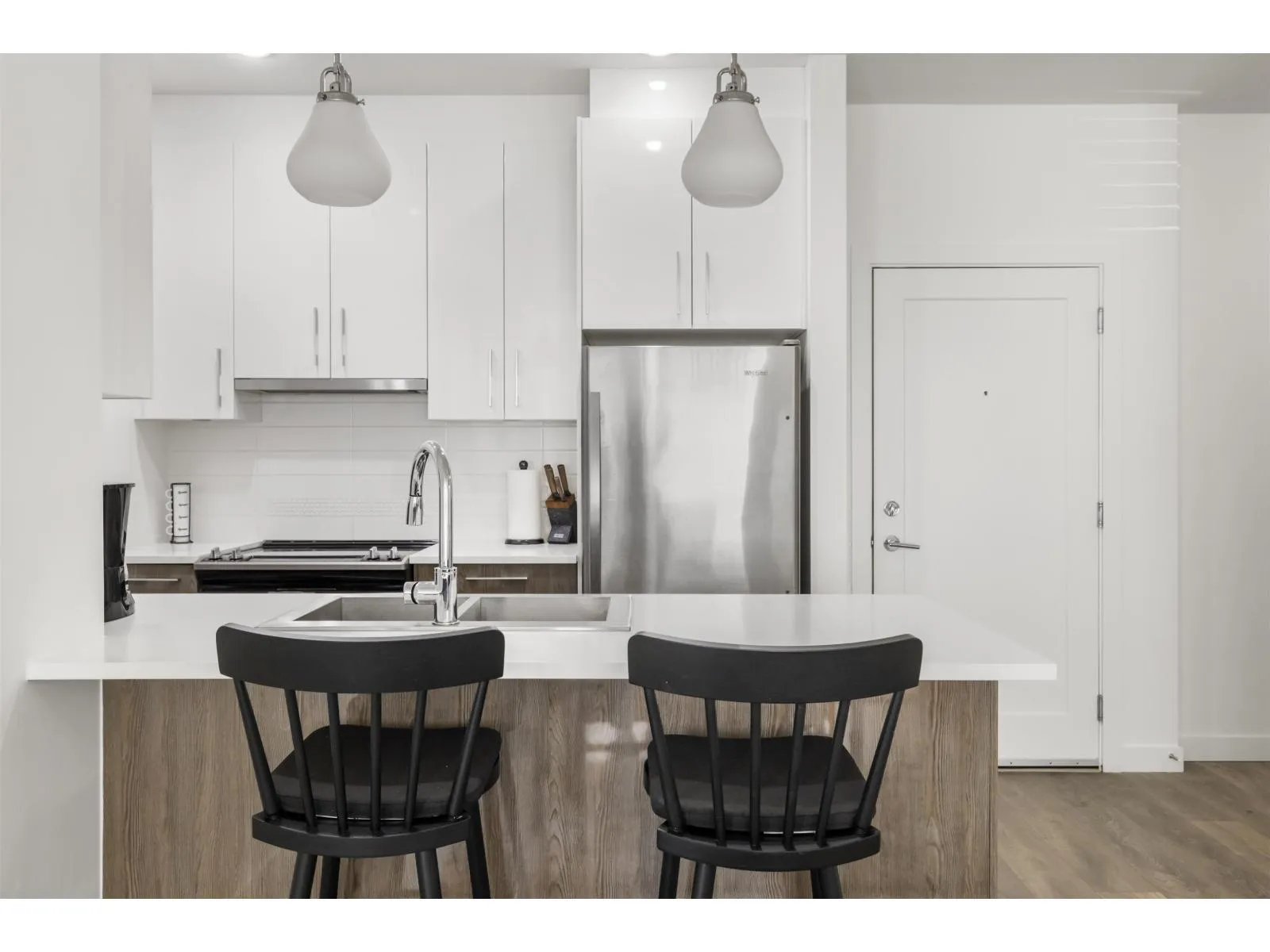 Immaculately kept, this 2 bed 2 bath condo with a den is located in the heart of Willoughby. Offering a bright, open concept living space, the kitchen features stainless steel appliances and a breakfast bar. The primary bedroom comes with an ensuite, the second bedroom is perfect for guests or a home office. The den offers flexibility for work or leisure. Situated in a quiet, private setting facing the courtyard, this condo is just steps away from Willoughby Town Centre, offering shopping, restaurants, and grocery stores. Plus, you're less than 10 minutes to Highway 1, making commuting a breeze. Its in an unbeatable location don't miss your chance! Contact us for a private showing. (id:27476)