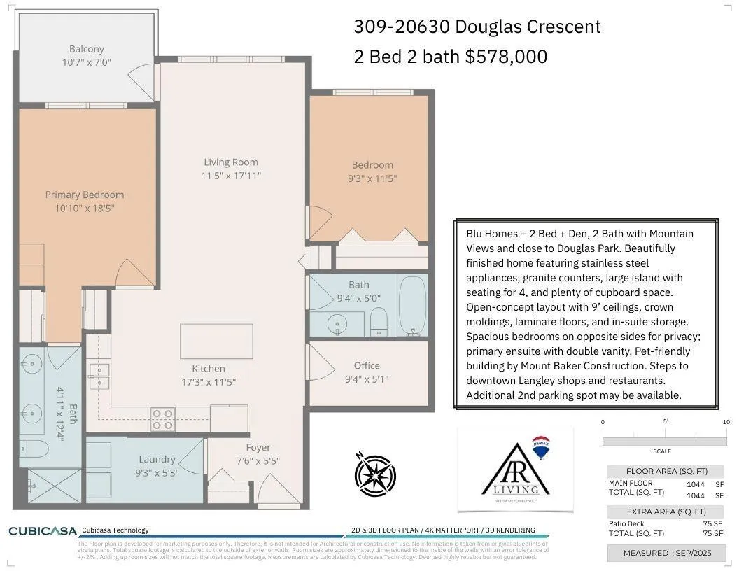 Blu Homes - 2 Bed + Den, 2 Bath with Mountain Views and close to Douglas Park. Beautifully finished home featuring stainless steel appliances, granite counters, large island with seating for 4, and plenty of cupboard space. Open-concept layout with 9' ceilings, crown moldings, laminate floors, and in-suite storage. Spacious bedrooms on opposite sides for privacy; primary ensuite with double vanity. Pet-friendly building by Mount Baker Construction. Steps to downtown Langley shops and restaurants. Additional 2nd parking spot currently renting for $25 and may be available to continue at that rate. Please confirm with Agent. (id:27476)