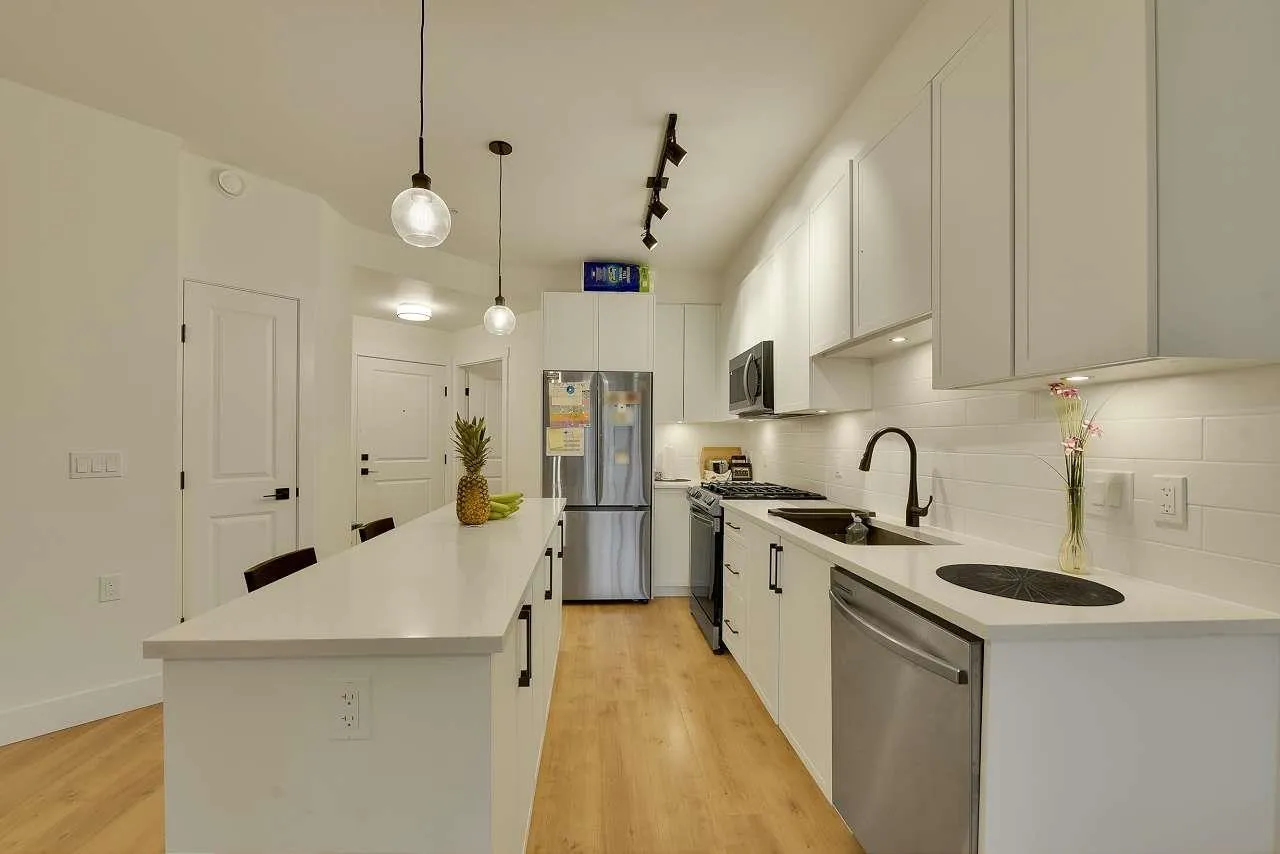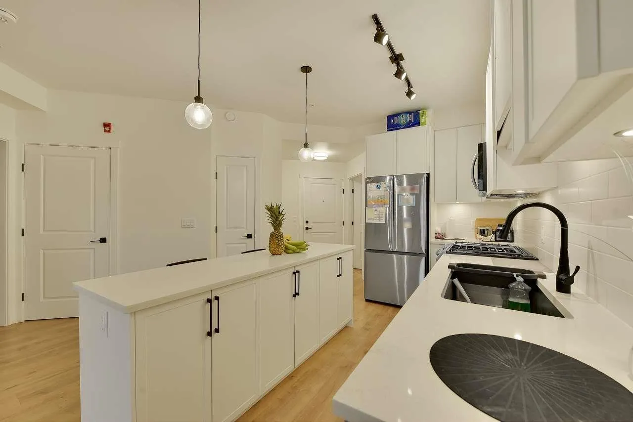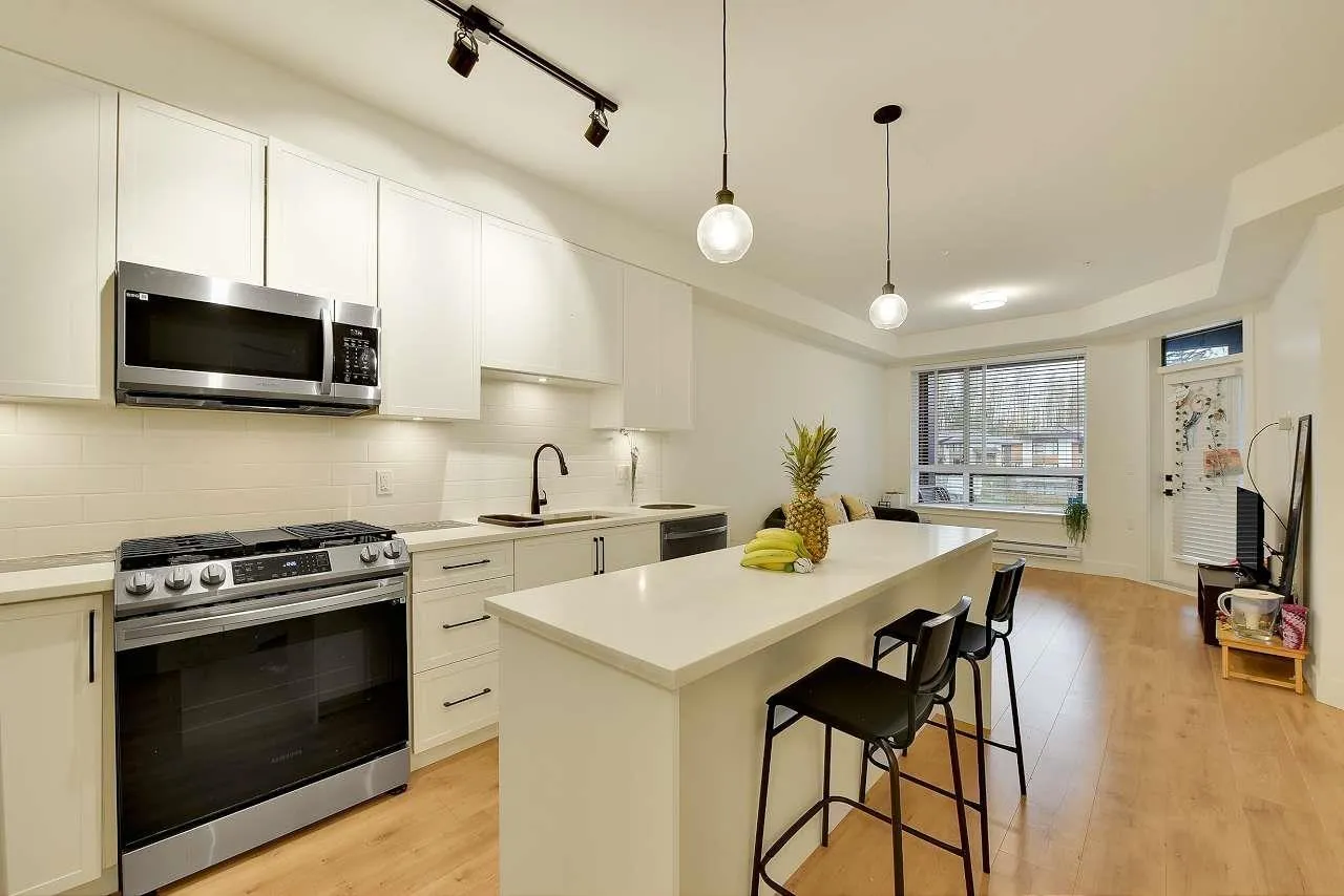 Welcome to Windsor, built by award winning developer Zenterra. Very functional layout 2 Bedroom 1 washroom. Spacious living room & kitchen with a perfectly designed island with eating bar with set of stainless steel appliances.Spacious bedroom which can fit in a king size bed easily. Spacious deck which face the courtyard and play area. Comes with 1 parking lot and 1 storage locker. Great location with recreational facilities, shopping, resturants nearby and Schools. Close to Hwy1 (id:27476)