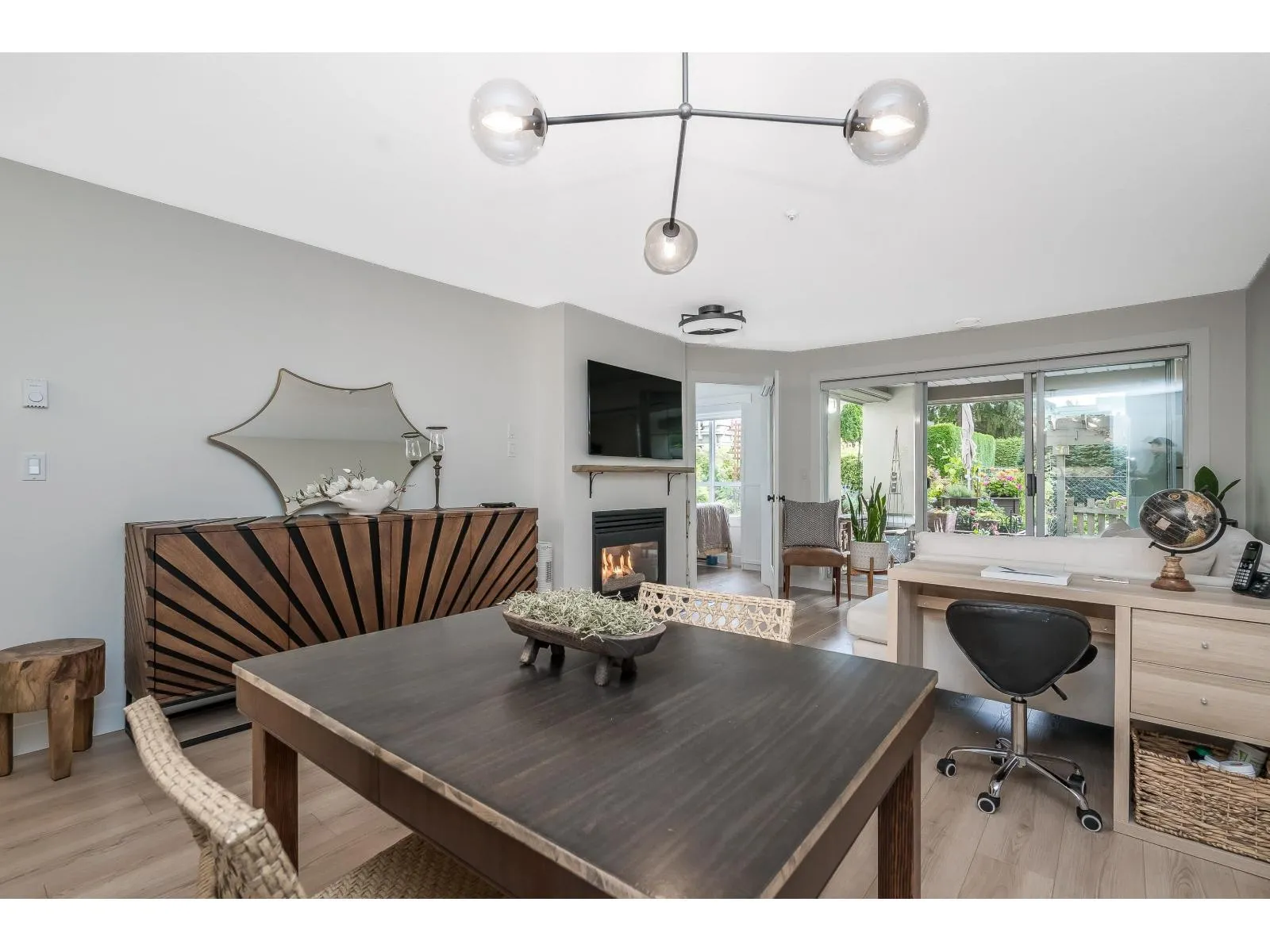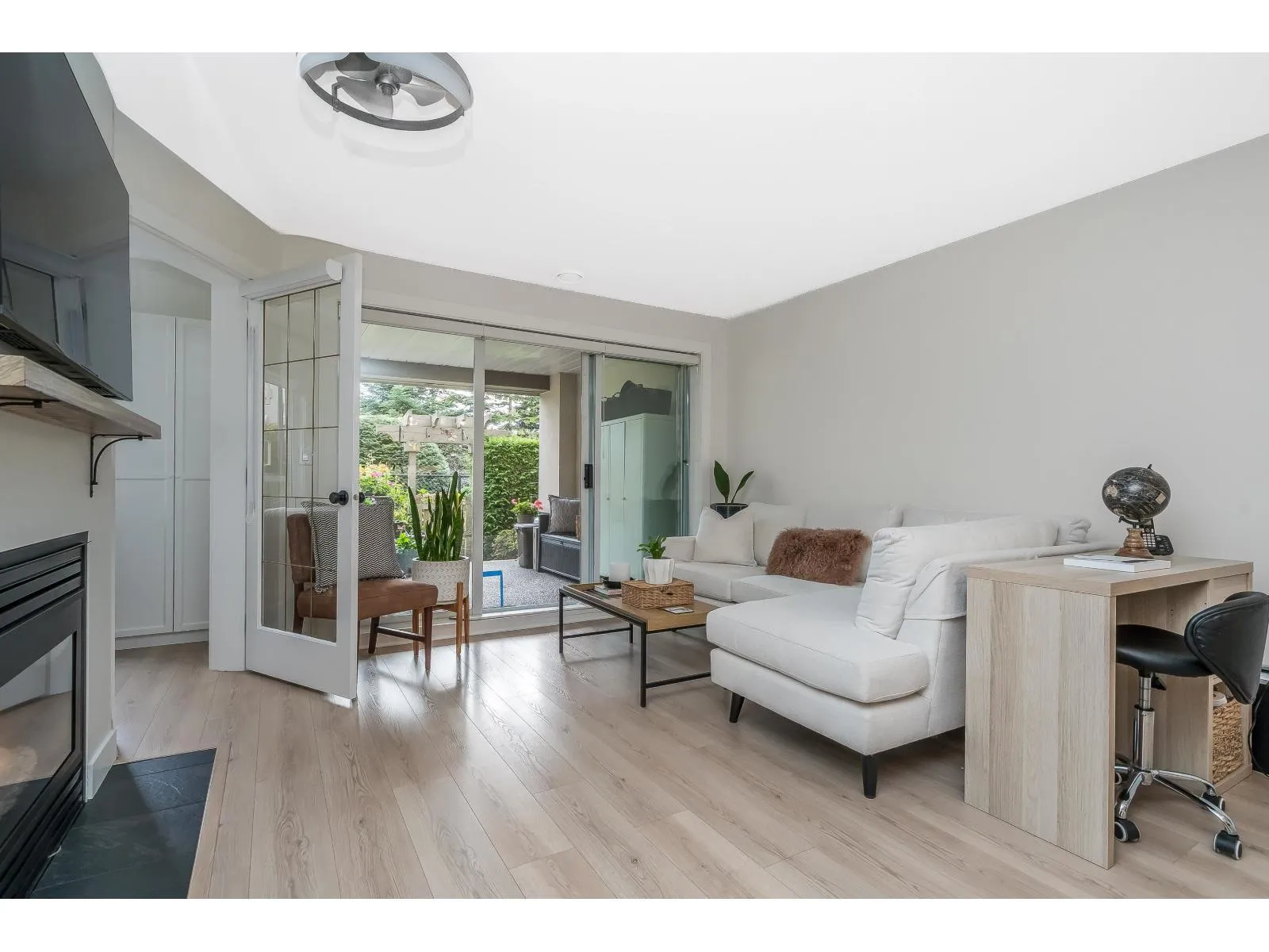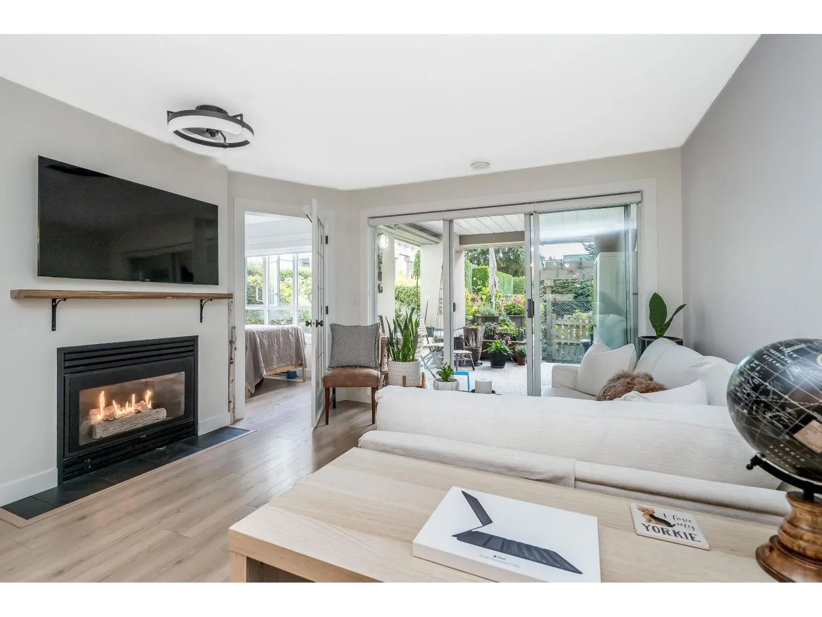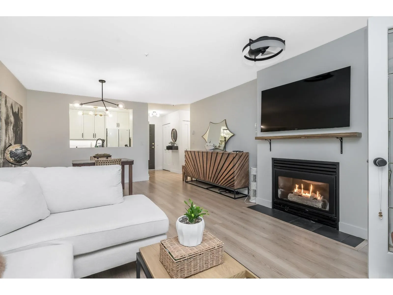 James Court - Ground-level luxury with no stairs from the lobby. This 2-bedroom garden walk-out home showcases $50K in high-end professional renovations. Garden view from both bedrooms. The kitchen features white maple shaker cabinets, under lighting, black quartz counters, undermount sink, custom tile backsplash, and upgraded lighting. Spa-inspired bath with maple vanity, quartz counter, ledging, new tub, fixtures, and full custom tile. High-end waterproof laminate, fresh neutral paint, 3-panel Silhouette shades on patio slider, and Silhouette blackout blinds to both bedrooms. No holes in walls-move-in ready. Cozy gas fireplace, secure parking, pet-friendly (1 cat/dog, 16"). Steps to Douglas Park community events and amenities. Decadent condo living-this may be your heart's desire. (id:27476)
