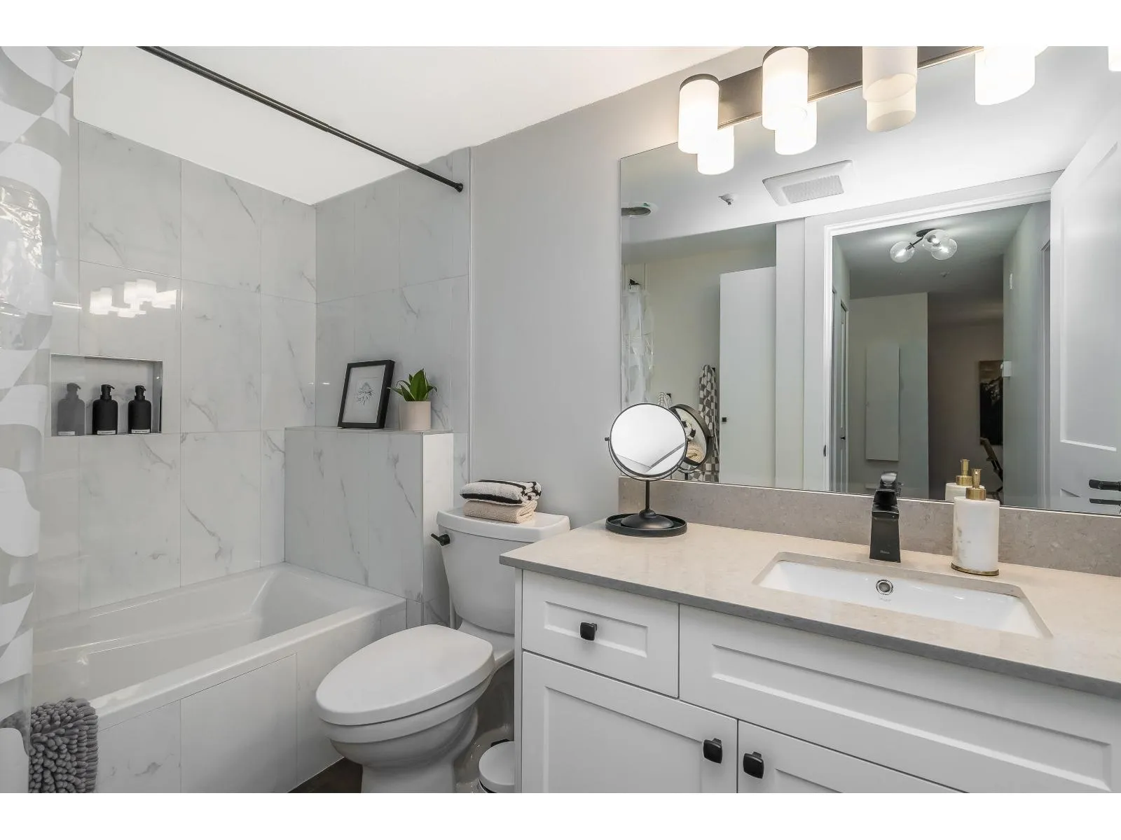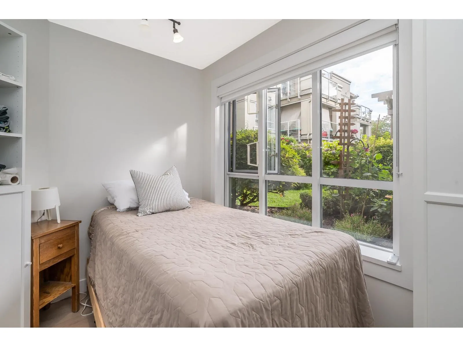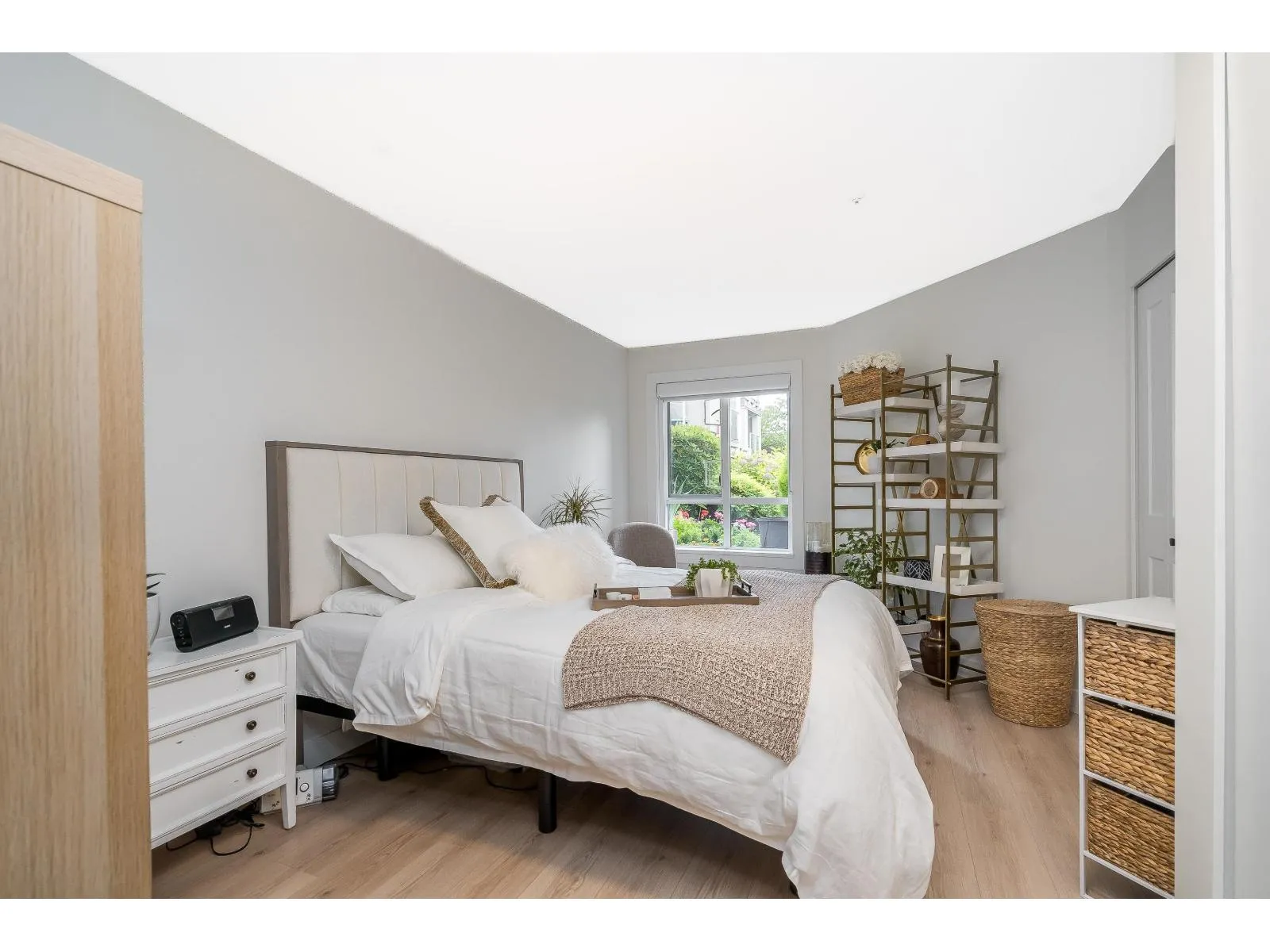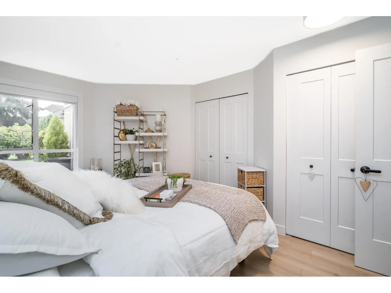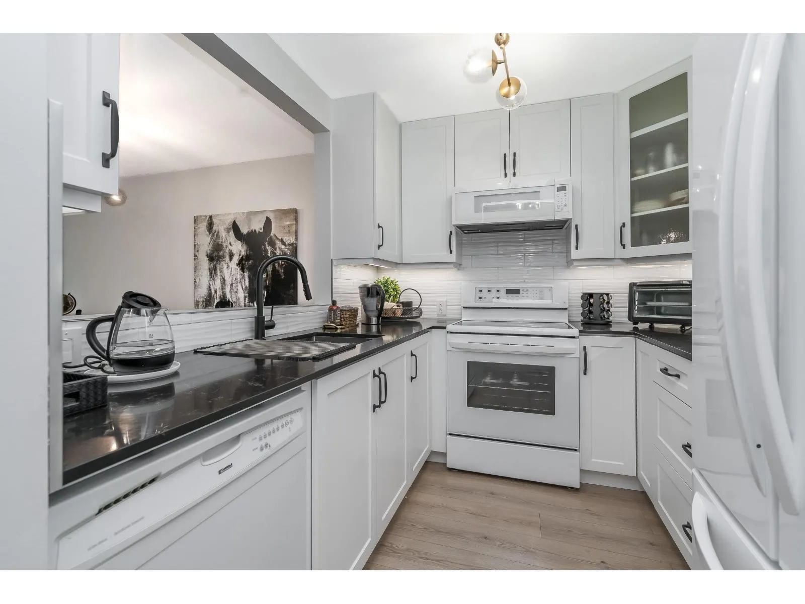 James Court - Ground-level luxury with no stairs from the lobby. This 2-bedroom garden walk-out home showcases $50K in high-end professional renovations. Garden view from both bedrooms. The kitchen features white maple shaker cabinets, under lighting, black quartz counters, undermount sink, custom tile backsplash, and upgraded lighting. Spa-inspired bath with maple vanity, quartz counter, ledging, new tub, fixtures, and full custom tile. High-end waterproof laminate, fresh neutral paint, 3-panel Silhouette shades on patio slider, and Silhouette blackout blinds to both bedrooms. No holes in walls-move-in ready. Cozy gas fireplace, secure parking, pet-friendly (1 cat/dog, 16"). Steps to Douglas Park community events and amenities. Decadent condo living-this may be your heart's desire. (id:27476)