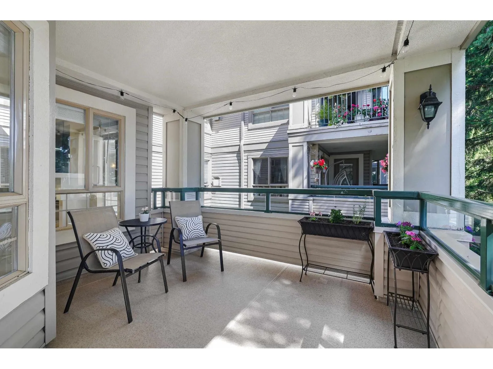 Welcome to Autumn Ridge in Murrayville-one of the area's most desirable complexes! This spacious 1 bed + den corner unit features updated stainless steel appliances, easy-care laminate flooring, a cozy gas fireplace, large walk-in closet, and cheater ensuite with relaxing soaker tub. Step outside to a generous covered deck on the quiet side of the building, perfect for year-round enjoyment. A well-maintained complex in a prime Murrayville location, just minutes from schools, shopping, and parks. (id:27476)