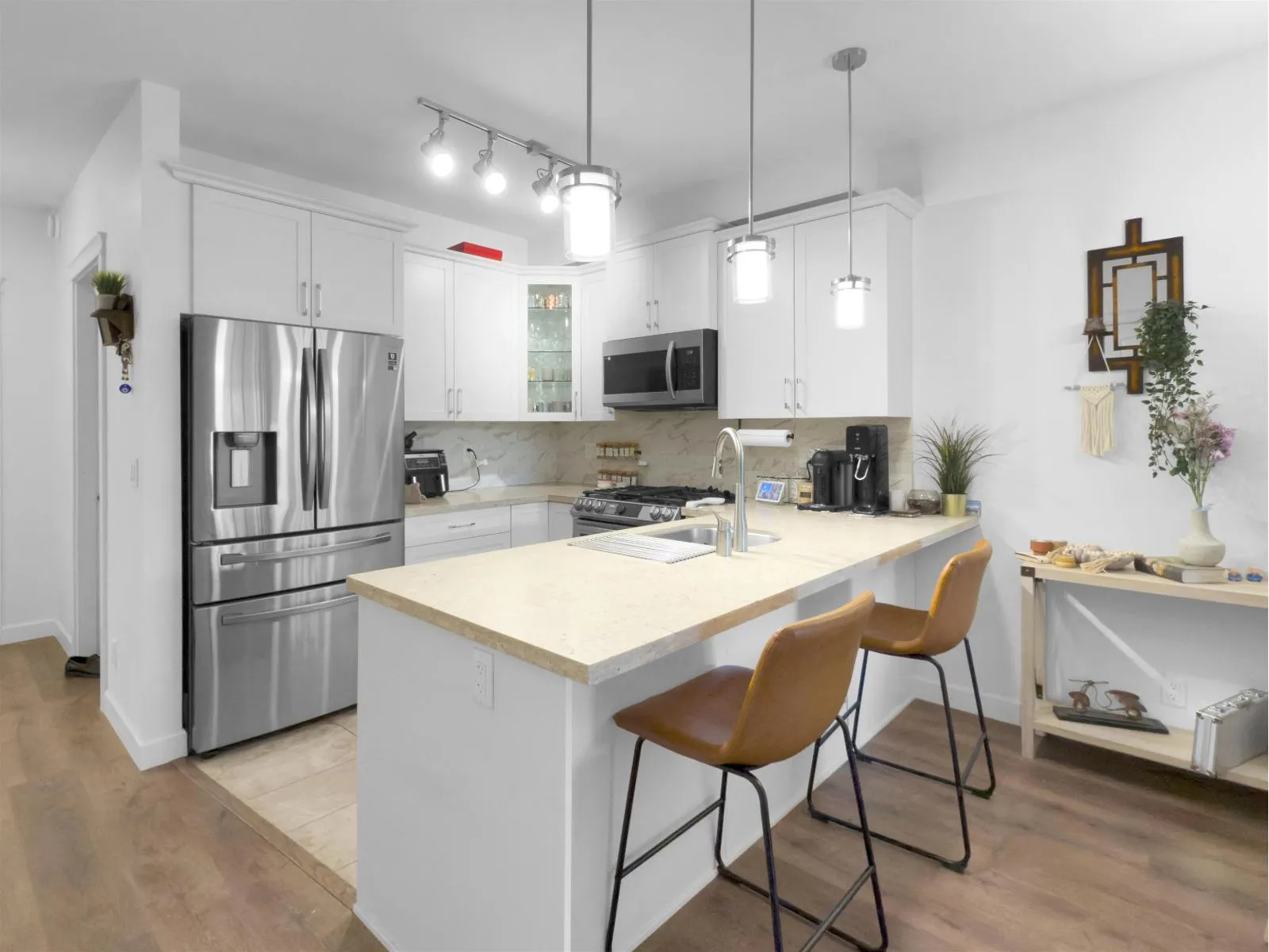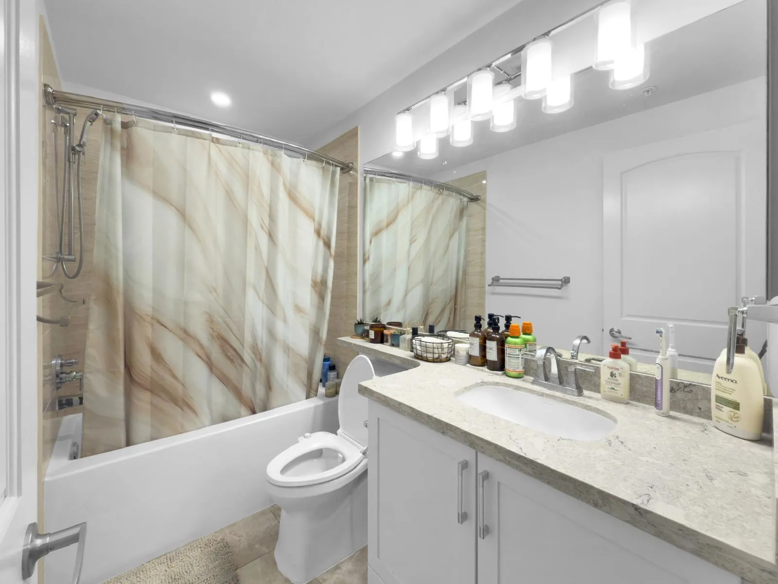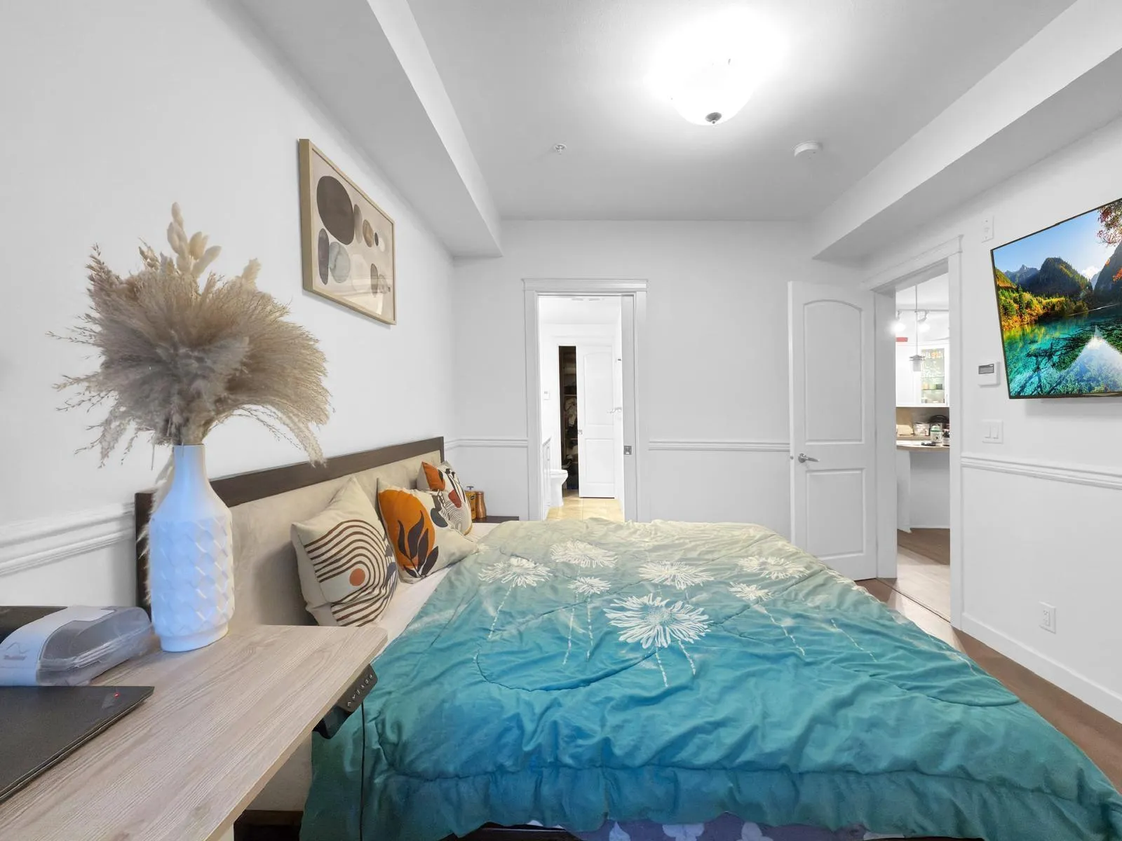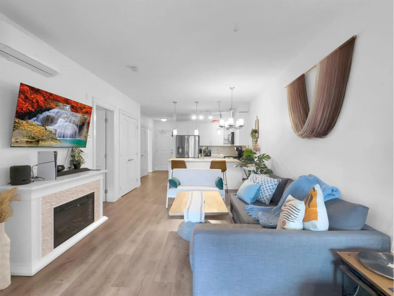 Welcome to Yorkson Park by Quadra Homes! This spacious 2 Bed + Flex + 2 Bath unit offers 890 sq. ft. of modern living plus an 83 sq. ft. enclosed solarium for year-round enjoyment. The large flex room can be used as an office, storage, or even an extra bedroom. Features include high-end stainless steel appliances, quartz countertops, energy-efficient heat pump with A/C, laminate flooring, and a built-in wall safe. Comes with 2 underground parking stalls. Ideally located across from Carvolth Park & Ride - perfect for commuters and families alike.Don't miss this opportunity to own in one of Langley's most sought-after developments. Call now for more details! (id:27476)