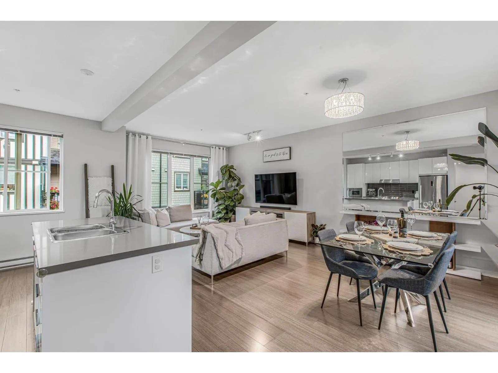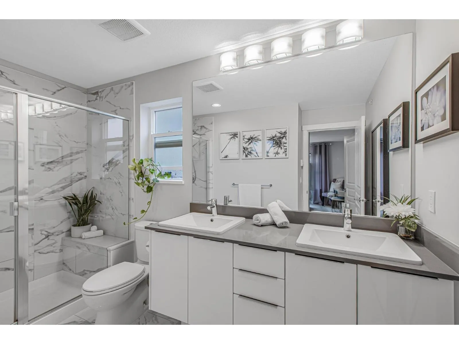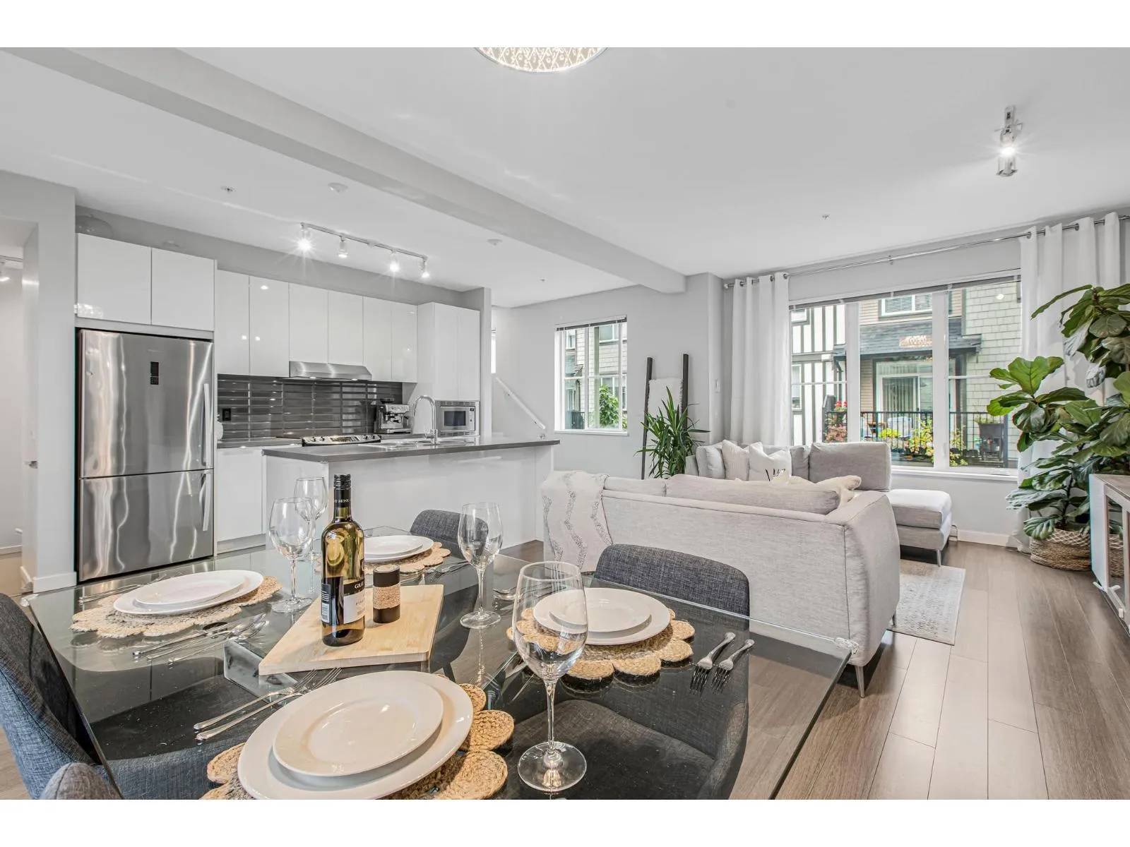 Welcome to Ashbury & Oak South by Polygon! This 2 BED + 2.5 BATH townhome features a bright, open layout with 9' ceilings, powder room on the main, and a spacious kitchen perfect for entertaining. Upgrades include a dining room mirror and new light fixtures. Upstairs offers 2 large bedrooms, including a primary with custom walk-in closet and an ensuite with double sinks. A private side-by-side 2-car garage adds convenience and storage. Residents enjoy access to Kinfolk House, an 8,000+ sqft clubhouse with resort-style amenities including pool, hot tub, gym, guest suites, and more. Ideally located close to schools, parks, shopping, and transit in a sought-after family-friendly community. (id:27476)