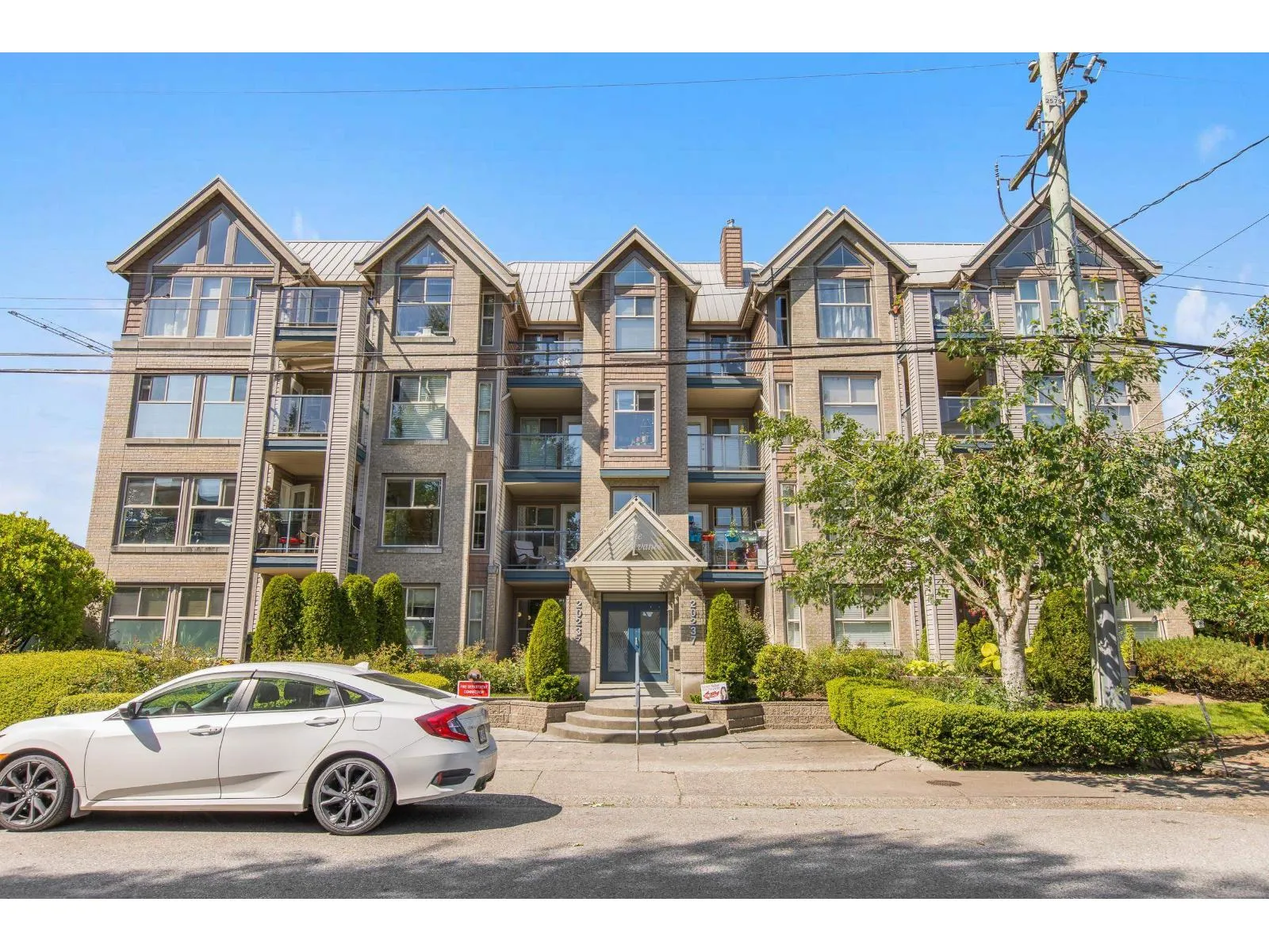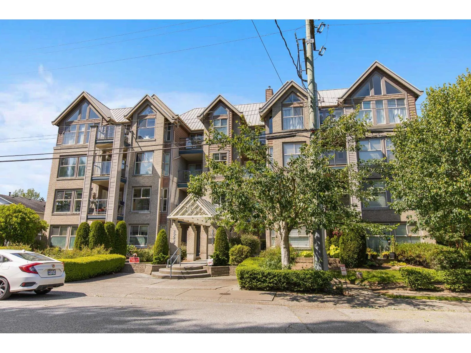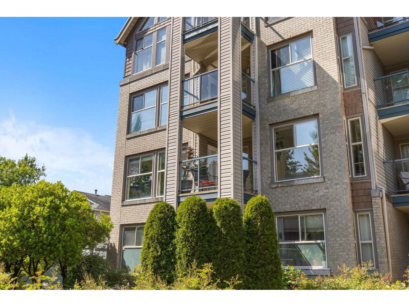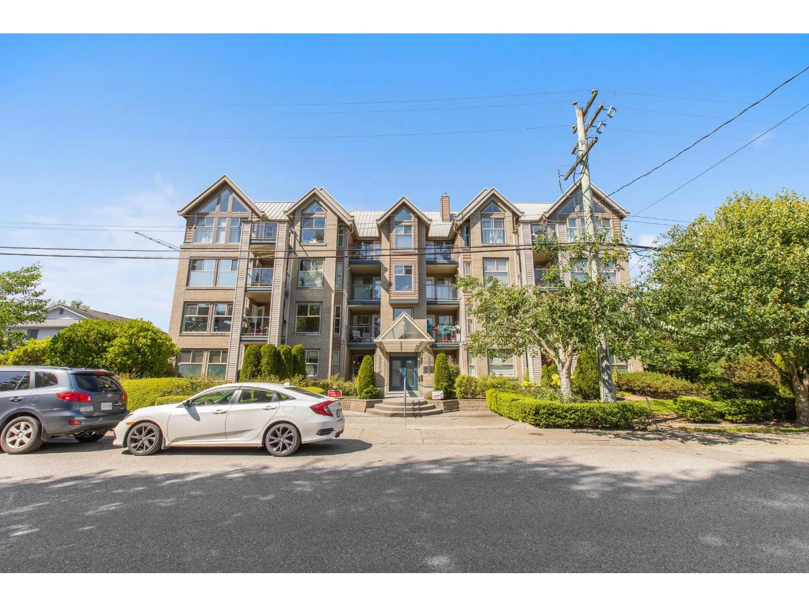 Welcome to The Avante in Langley City! You will enjoy this bright and open CORNER condo with southern exposure. Nearly 1000 square feet with two bedrooms and two full bathrooms. Move-in ready with several updates throughout including bathrooms, flooring, paint, smart oven, refreshed kitchen and window coverings. Great layout with bedrooms on opposite sides and open kitchen with island. Other features: covered balcony, gas fireplace, insuite laundry and a large storage room on same floor! Comes with one secure park stall plus open street parking. Well maintained and managed strata welcoming TWO domestic PETS of ANY SIZE! Fantastic location with high walk score being close to most amenities including upcoming 203rd sky train station. Clean, maintained, bright and now available for you! (id:27476)