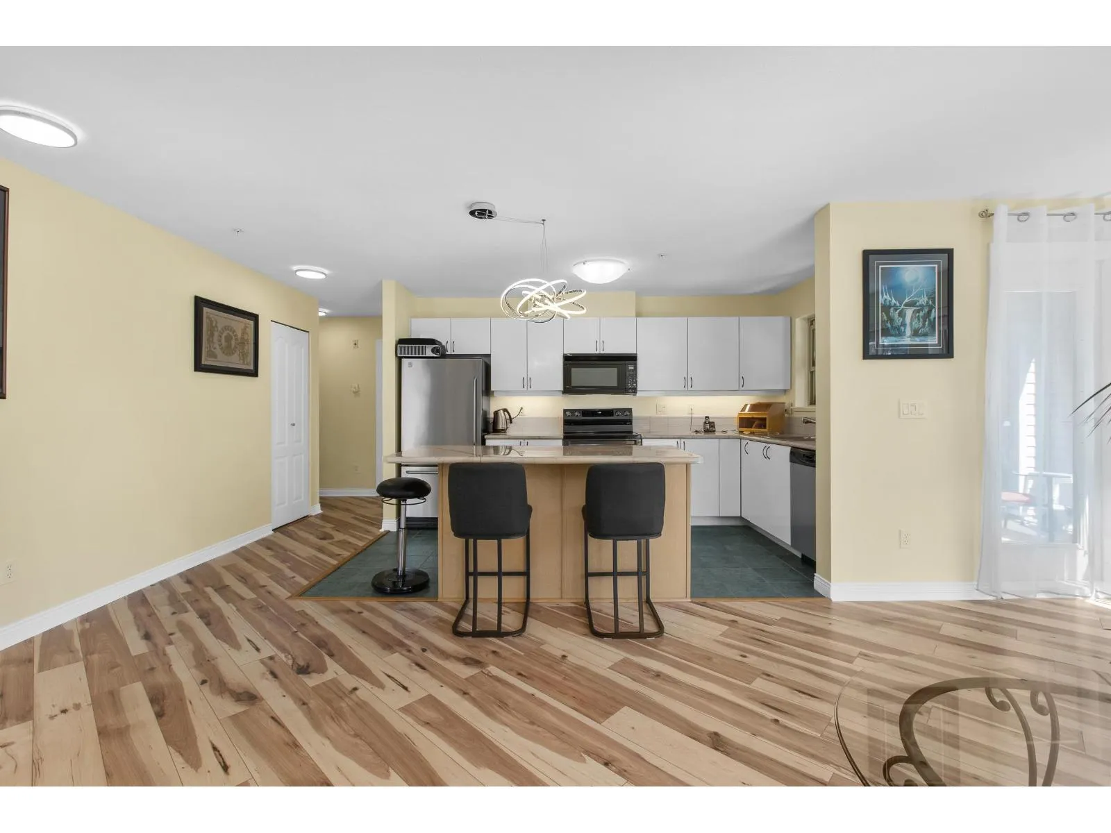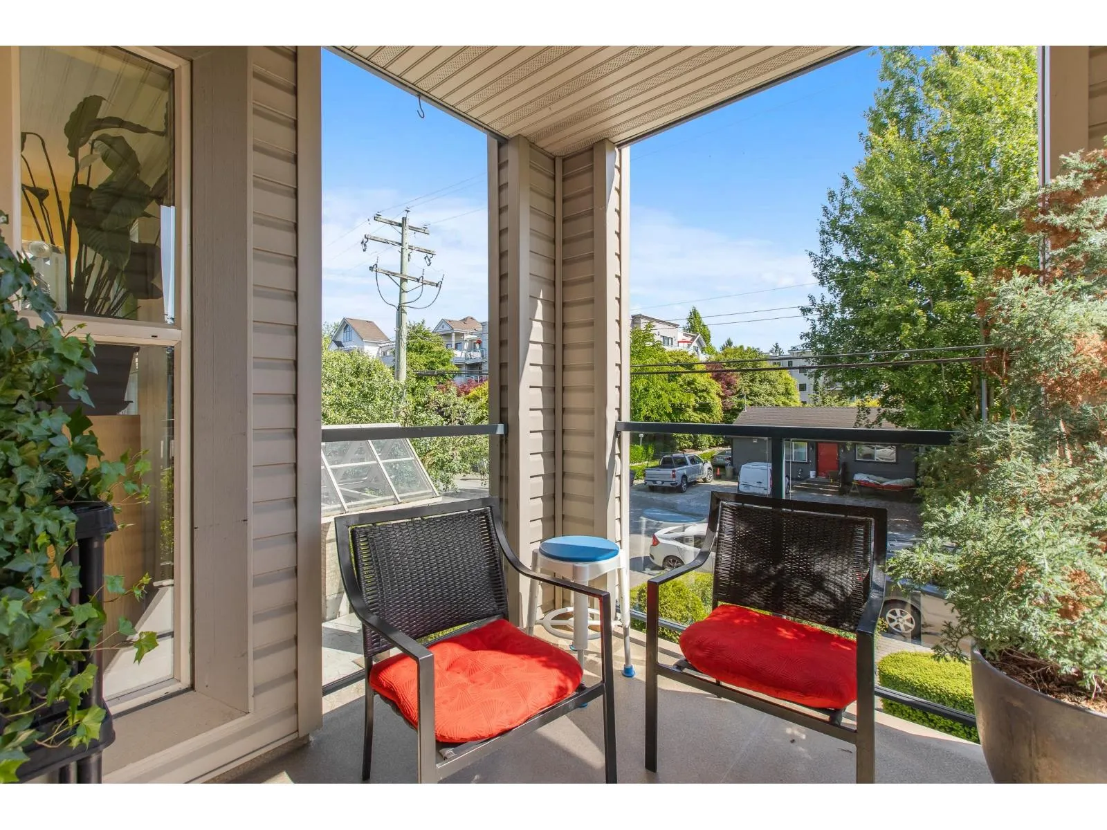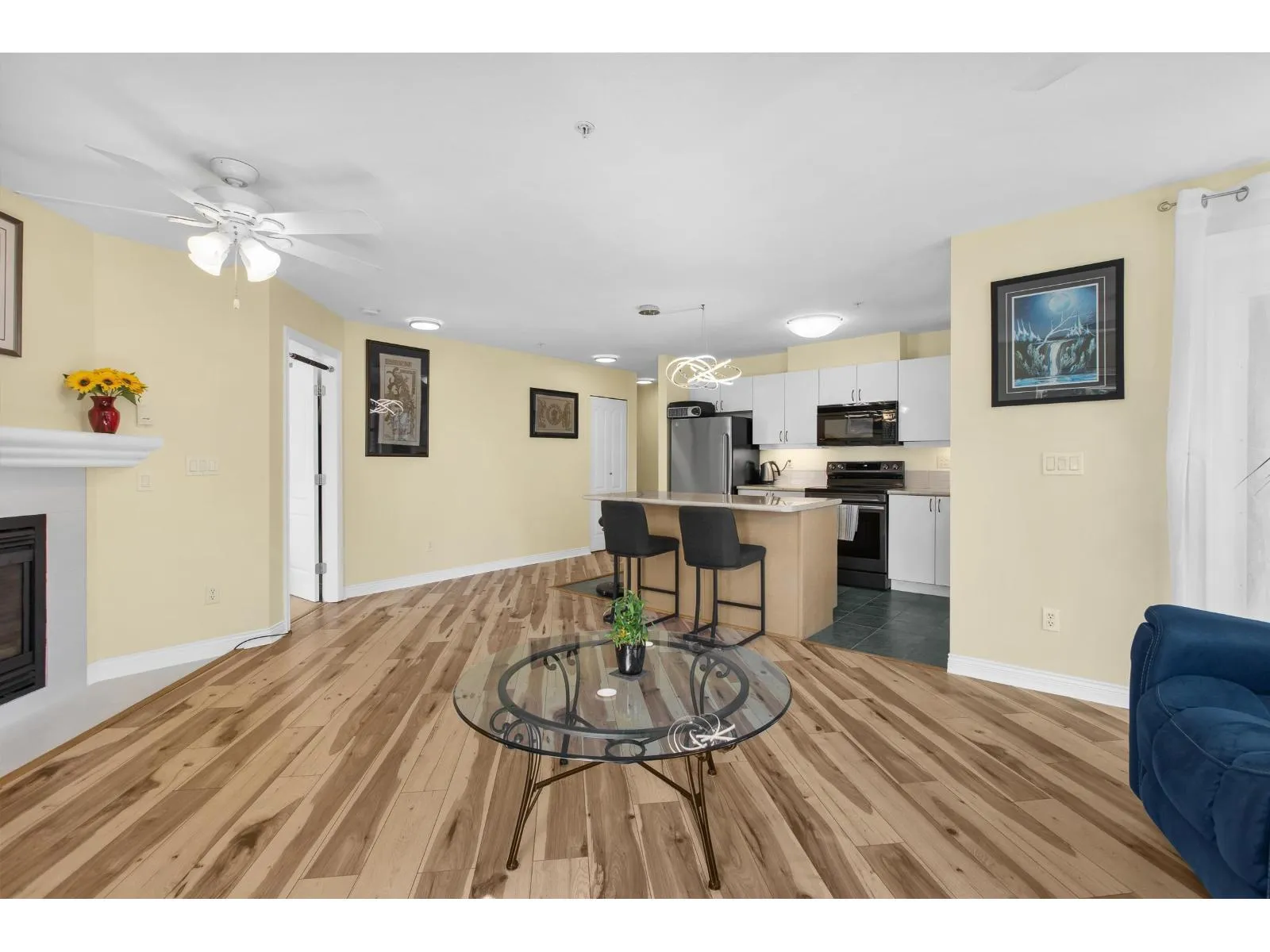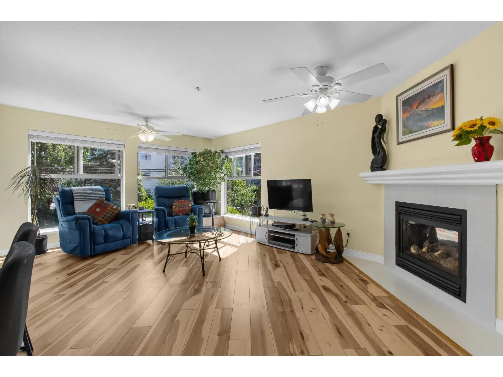 Welcome to The Avante in Langley City! You will enjoy this bright and open CORNER condo with southern exposure. Nearly 1000 square feet with two bedrooms and two full bathrooms. Move-in ready with several updates throughout including bathrooms, flooring, paint, smart oven, refreshed kitchen and window coverings. Great layout with bedrooms on opposite sides and open kitchen with island. Other features: covered balcony, gas fireplace, insuite laundry and a large storage room on same floor! Comes with one secure park stall plus open street parking. Well maintained and managed strata welcoming TWO domestic PETS of ANY SIZE! Fantastic location with high walk score being close to most amenities including upcoming 203rd sky train station. Clean, maintained, bright and now available for you! (id:27476)
