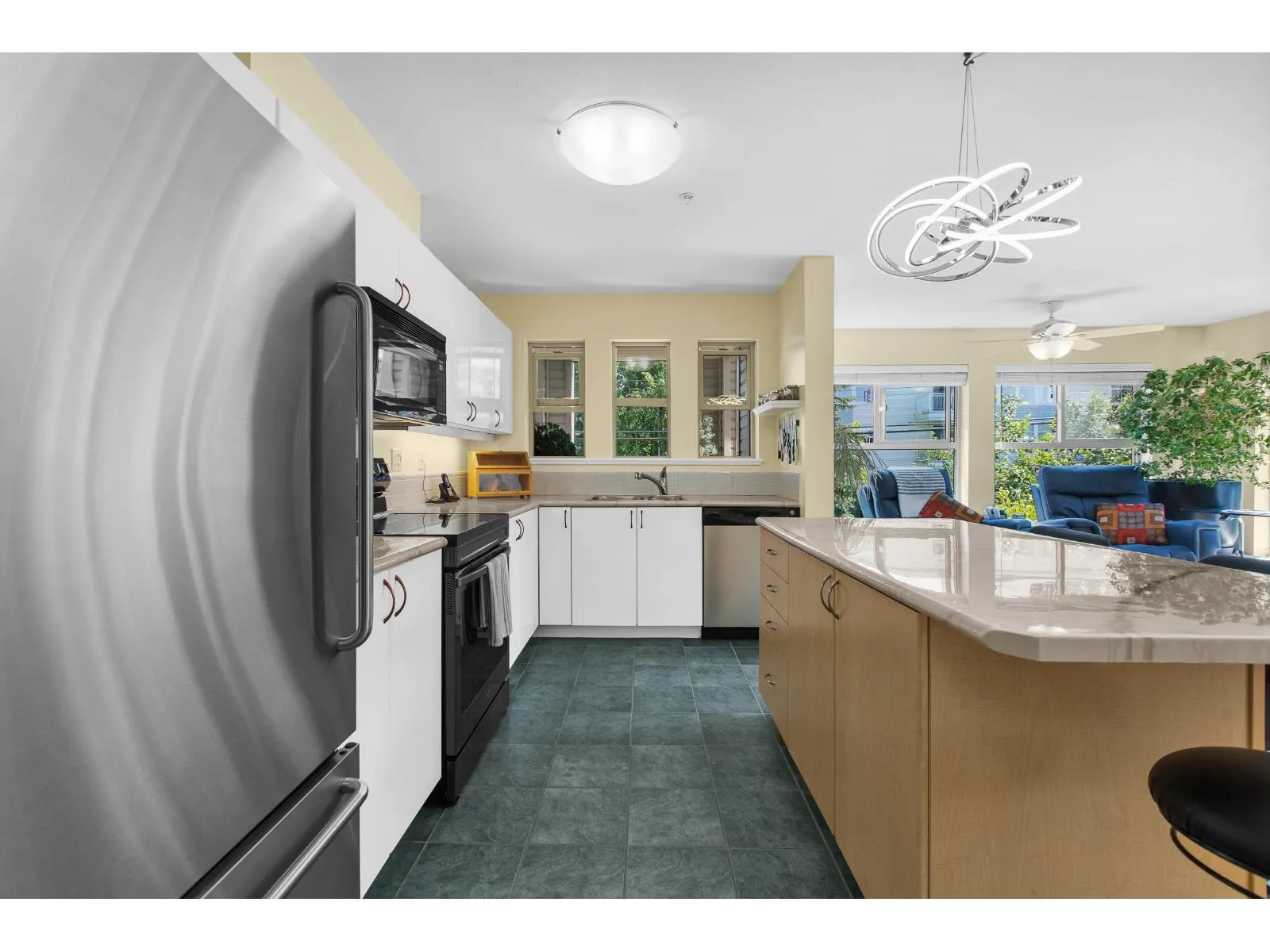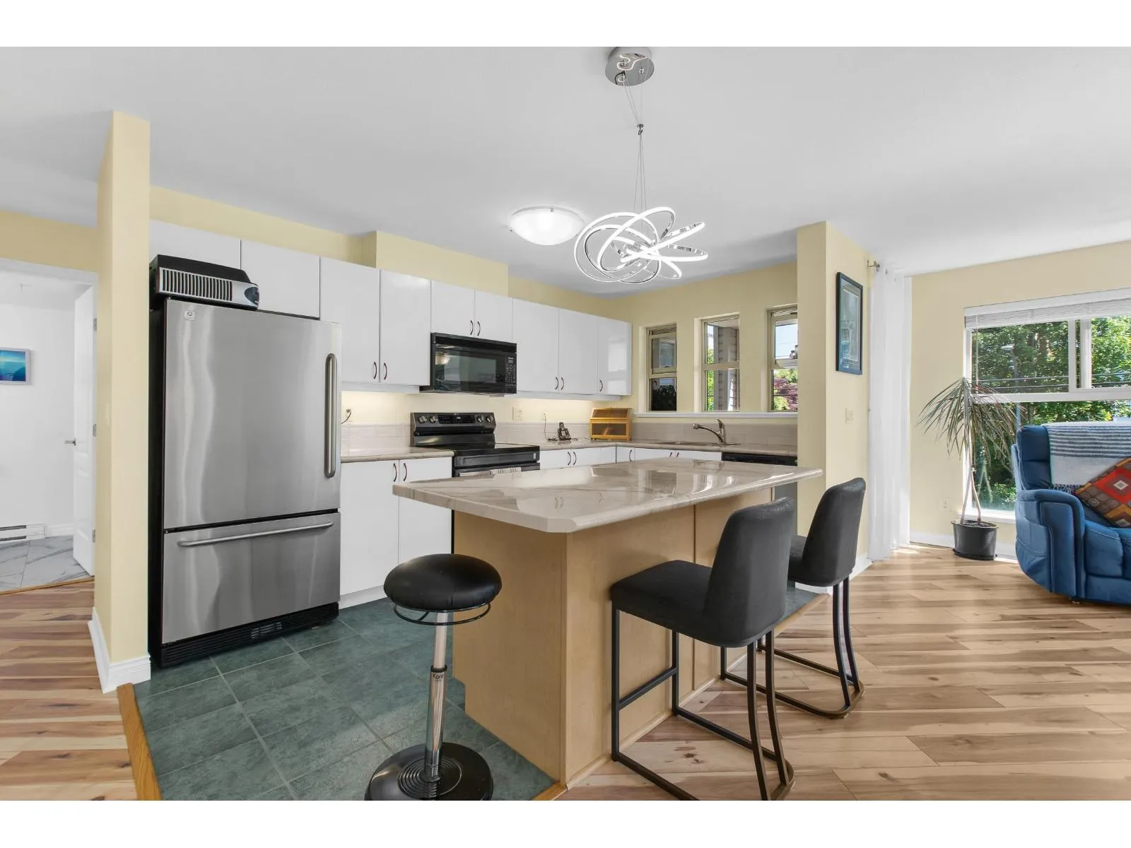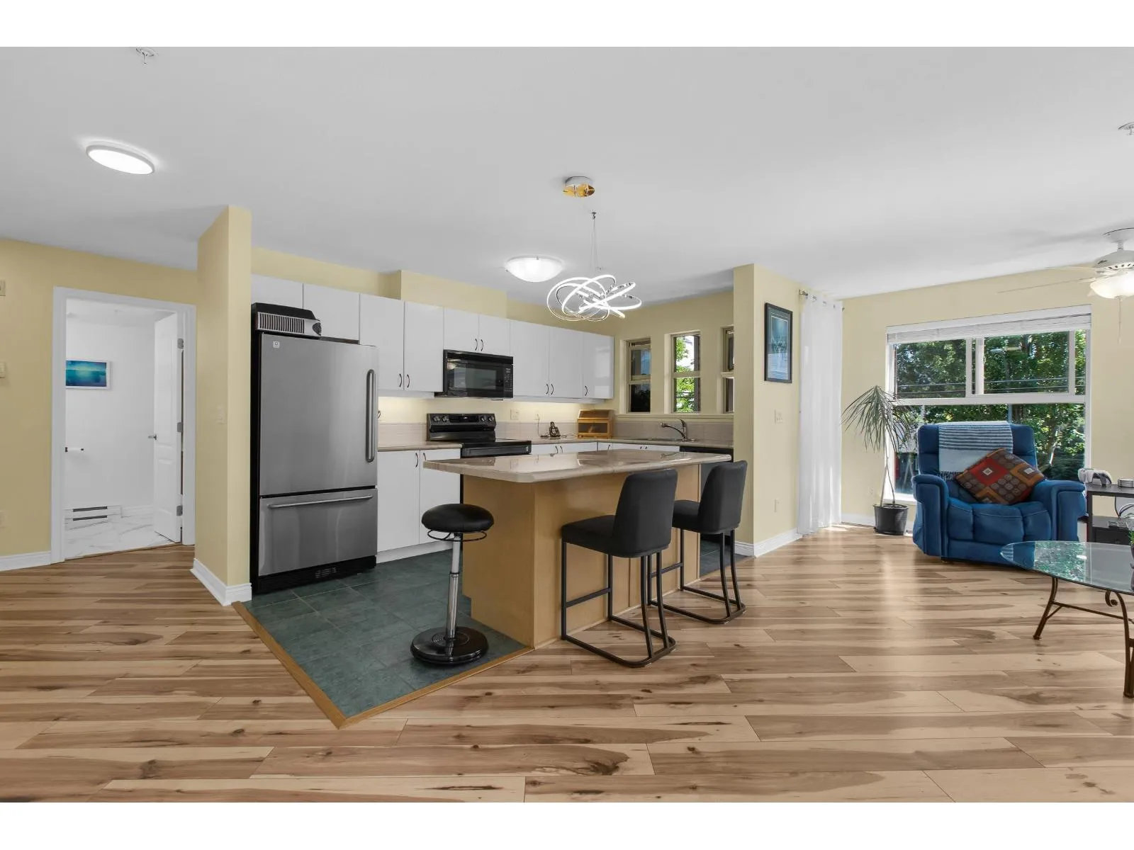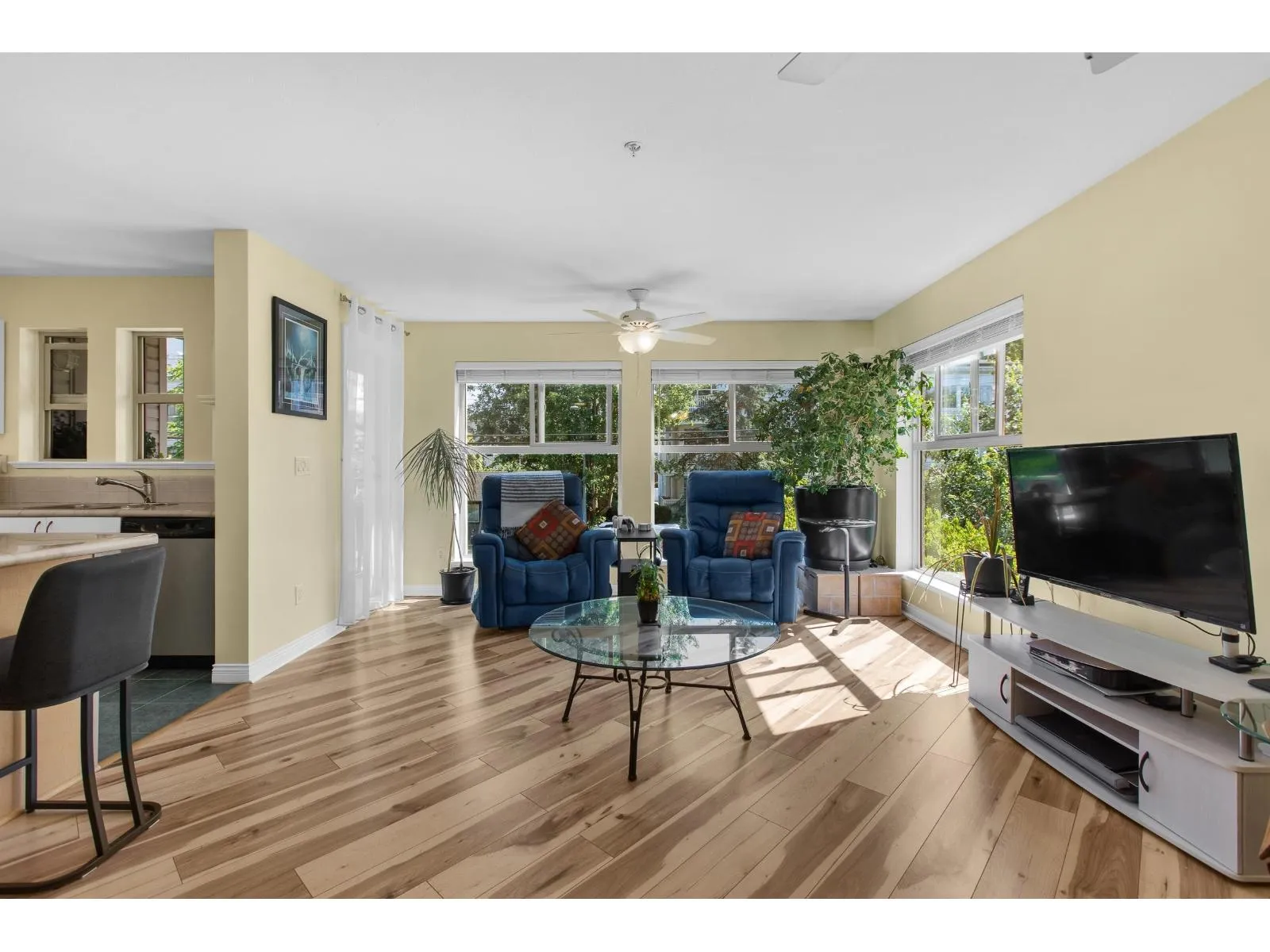Welcome to The Avante in Langley City! You will enjoy this bright and open CORNER condo with southern exposure. Nearly 1000 square feet with two bedrooms and two full bathrooms. Move-in ready with several updates throughout including bathrooms, flooring, paint, smart oven, refreshed kitchen and window coverings. Great layout with bedrooms on opposite sides and open kitchen with island. Other features: covered balcony, gas fireplace, insuite laundry and a large storage room on same floor! Comes with one secure park stall plus open street parking. Well maintained and managed strata welcoming TWO domestic PETS of ANY SIZE! Fantastic location with high walk score being close to most amenities including upcoming 203rd sky train station. Clean, maintained, bright and now available for you! (id:27476)
