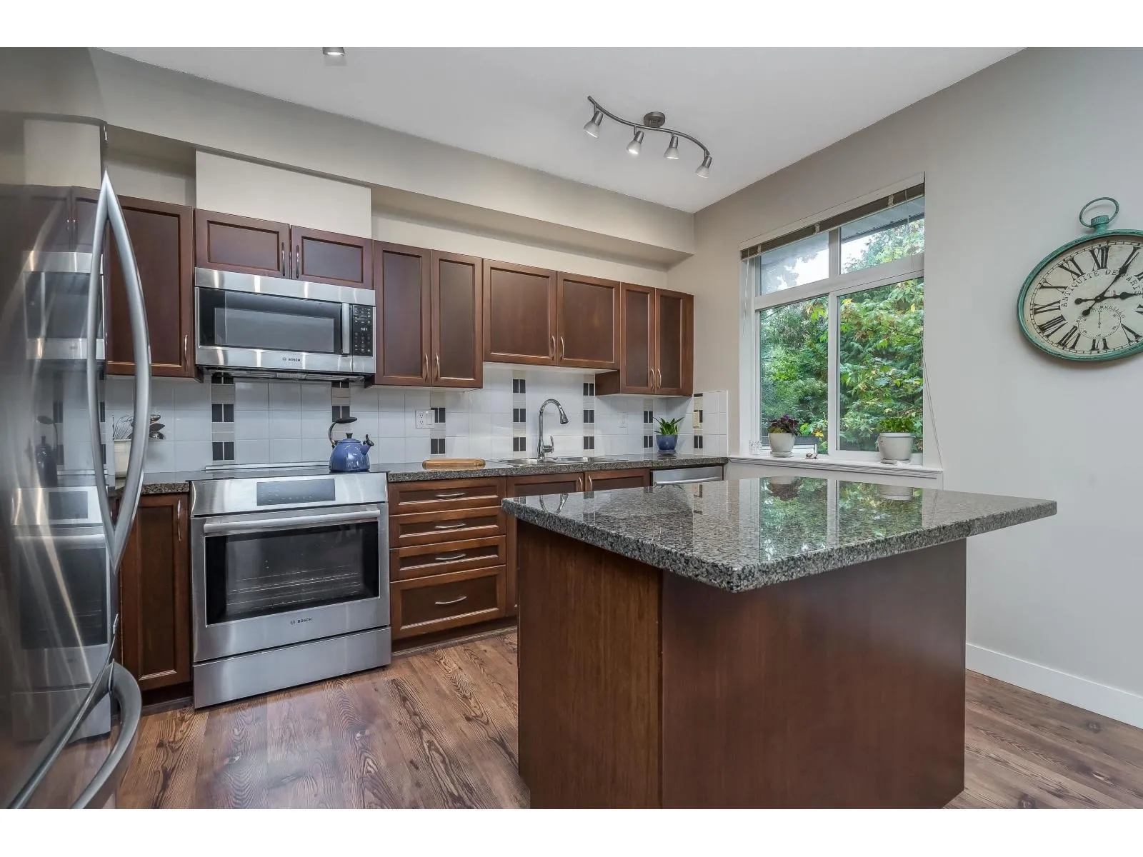 Beautiful and impeccably maintained 3 level end unit townhome featuring 9' ceilings and a bright & spacious floor plan. You'll love the ambience of abundant large windows, gourmet kitchen with rich granite countertops, cherry shaker cabinets with pro pull outs, recently upgraded high-end appliances including induction stove, breakfast island and 2 fireplaces! Painted in restful Benjamin Moore colours, the primary bedroom features a vaulted ceiling, large walk in closet, double windows for quiet comfort. Lower level boasts a HUGE rec room that could easily be set up as a 4th bedroom for older kids or inlaws, with french doors leading to a private patio. Double side by side garage and fenced rear yard. This fabulous townhome feels like a house! A true '10' that can't be missed. Call today! (id:27476)